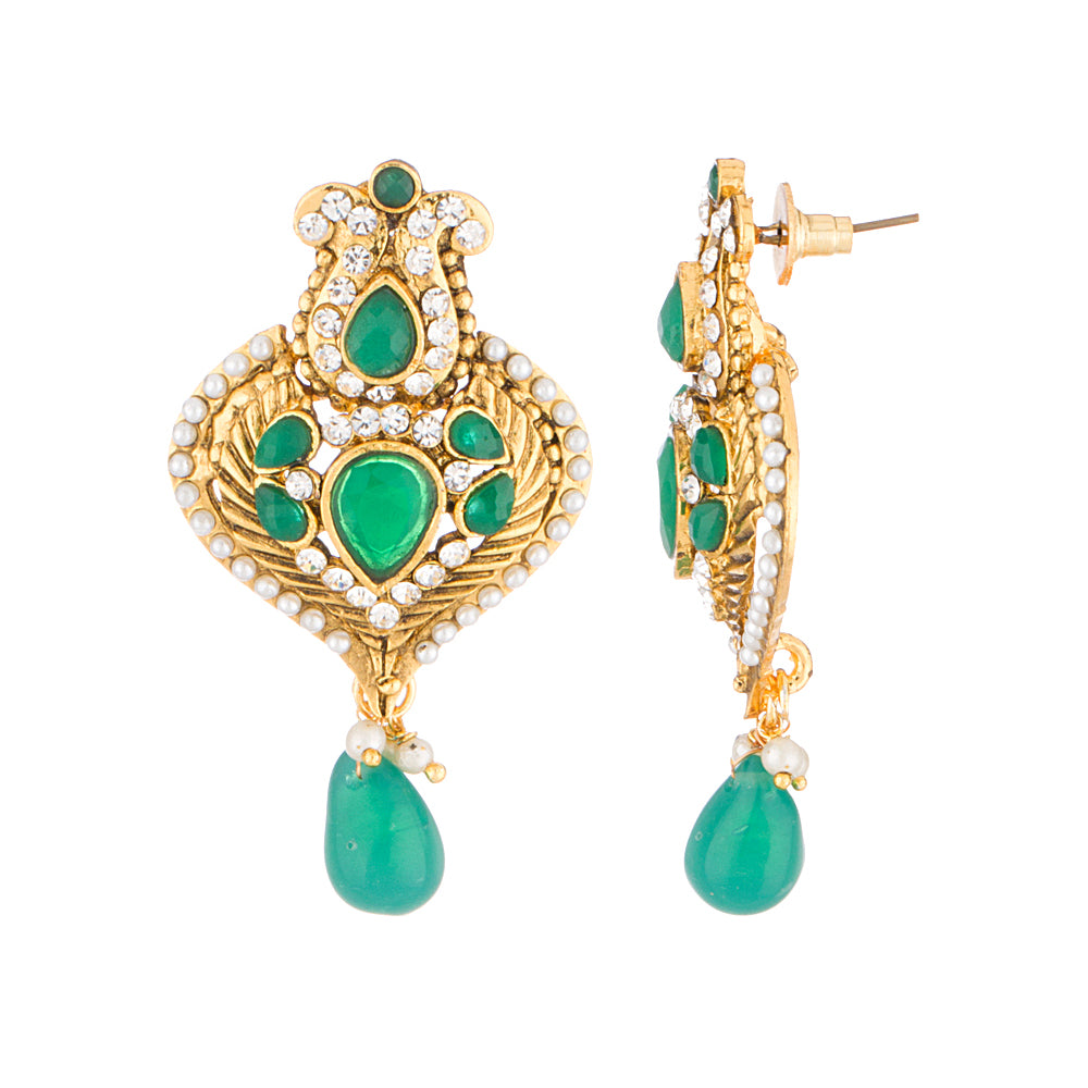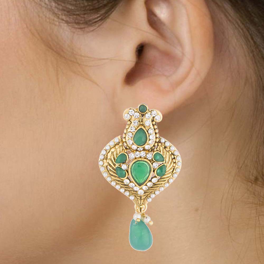 This piece is so classy & elegant. These pair of dangler earrings are perfect for this festive season. These gold tone danglers is brass made . Add this to your collection now for a gorgeous look.