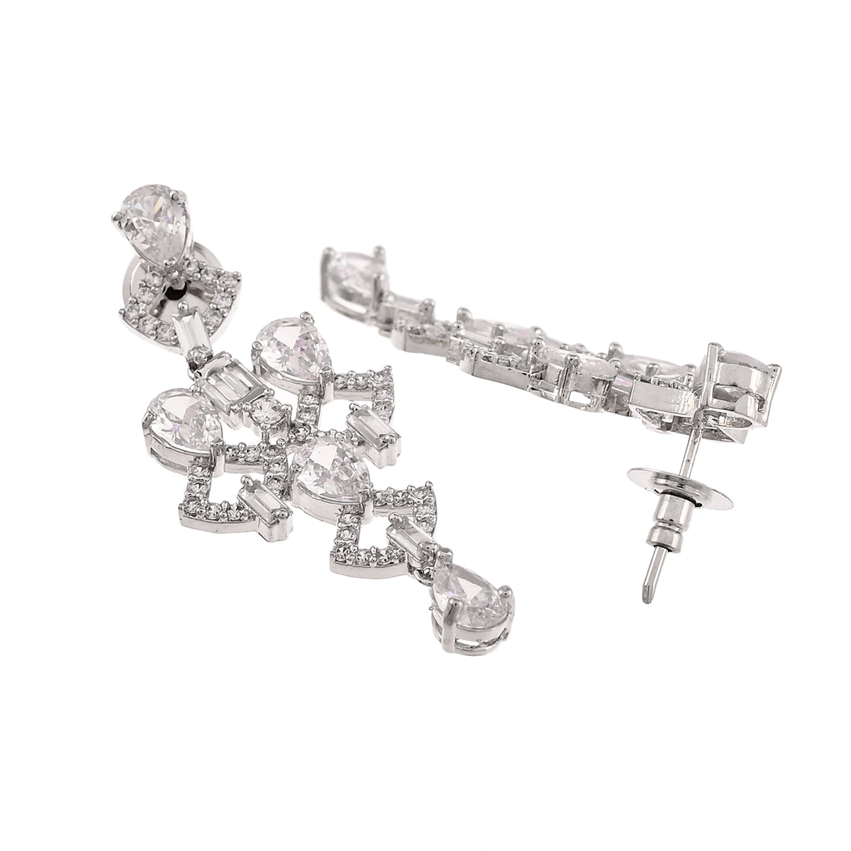 Silver Plated Brass Jewellery Set with Teardrop CZ Adornment