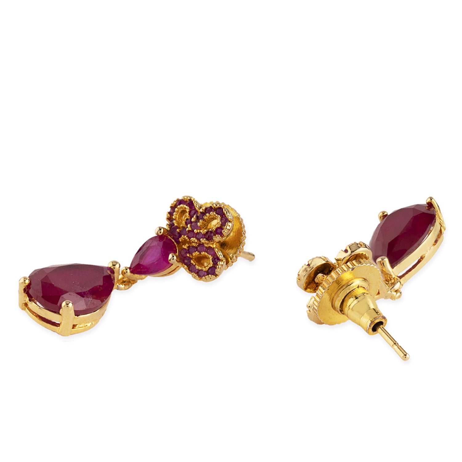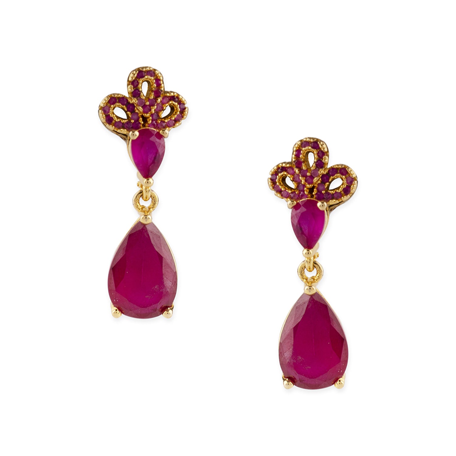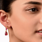 Looking for something traditional? Then these earrings are for you. This jewelry is effortless in design and yet it makes for elegant wear for any occasion. The pink faux stone studded jewelry is light on your ears, making it comfortable to wear throughout the day.