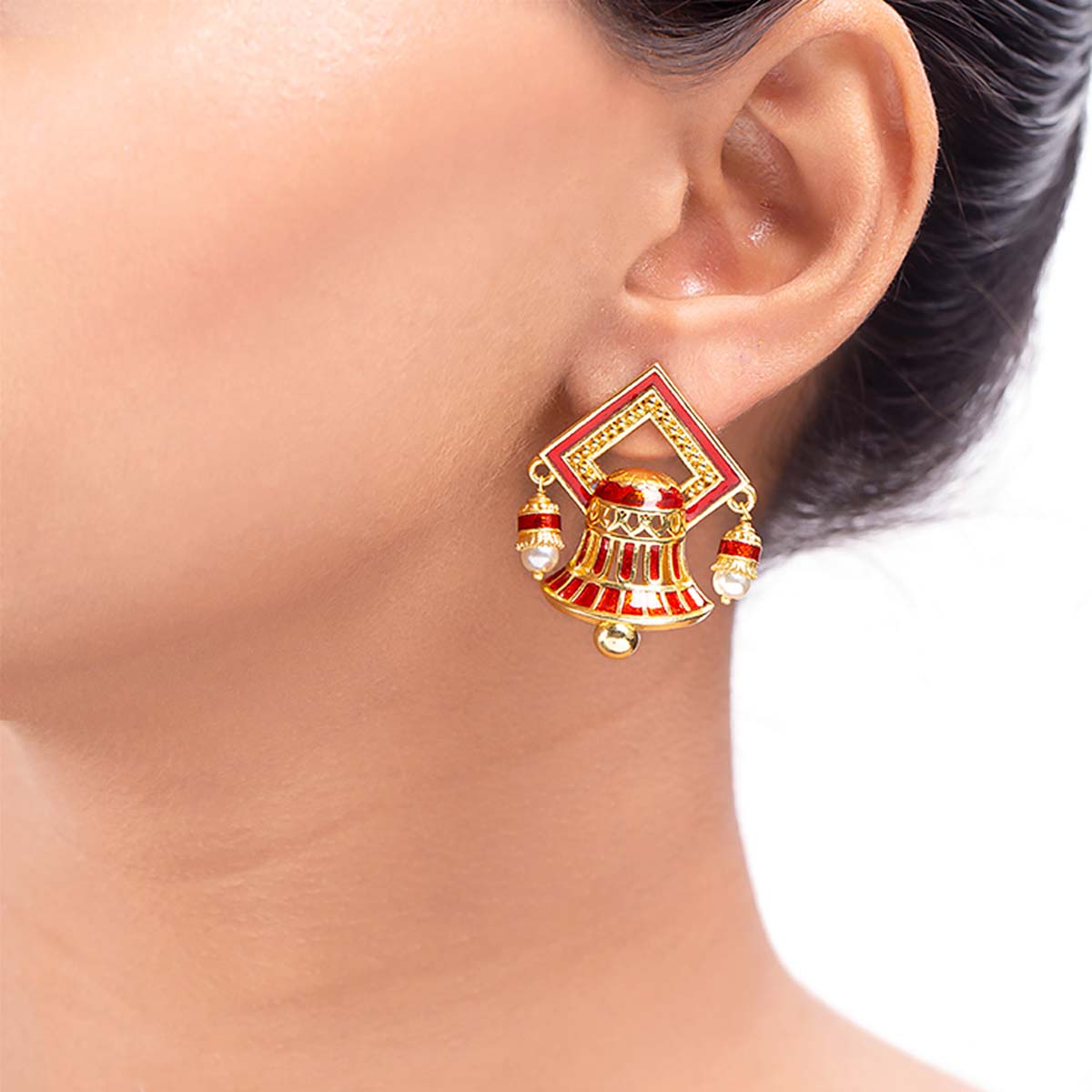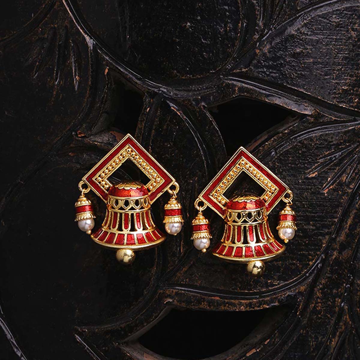Temple Bell Enamel Embellished Earrings