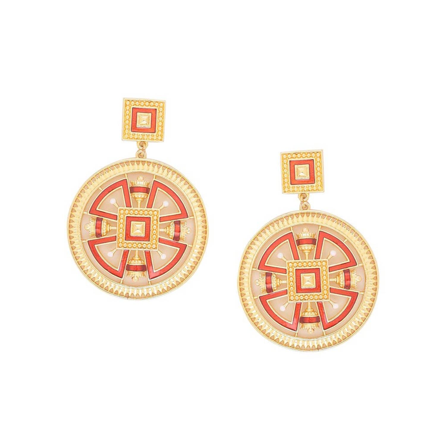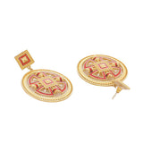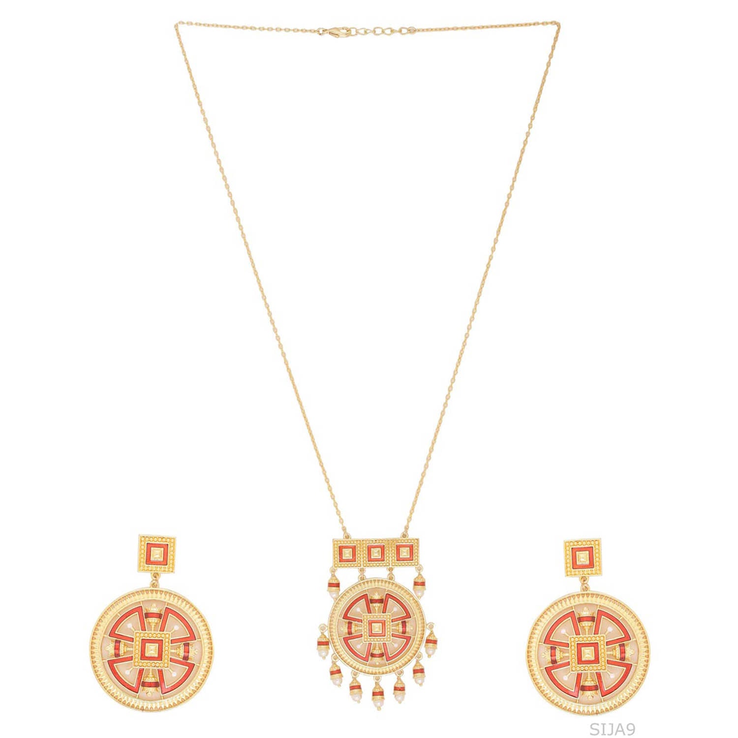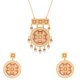 Rangoli patterns inspired brass necklace set. Embellished and yellow gold plated. Wear with ethnic attire.