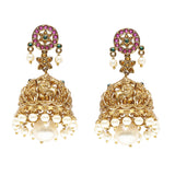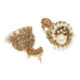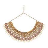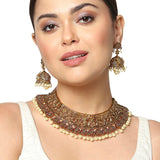 Temple Inspired Faux Pearls and CZ Gems Brass Gold Plated Jewellery Set