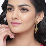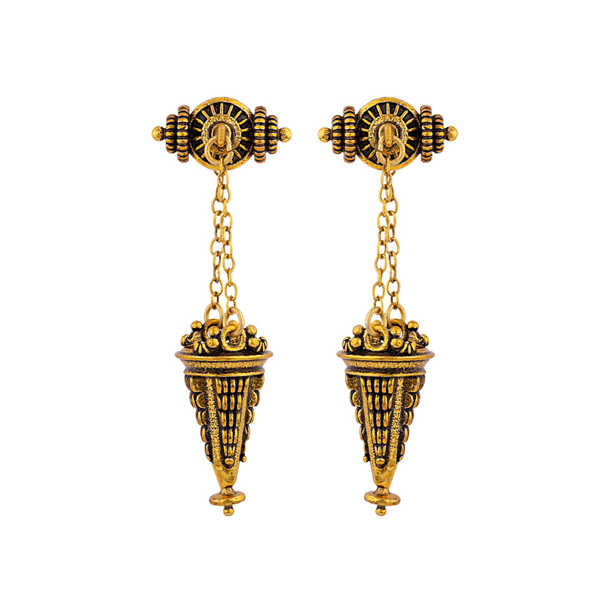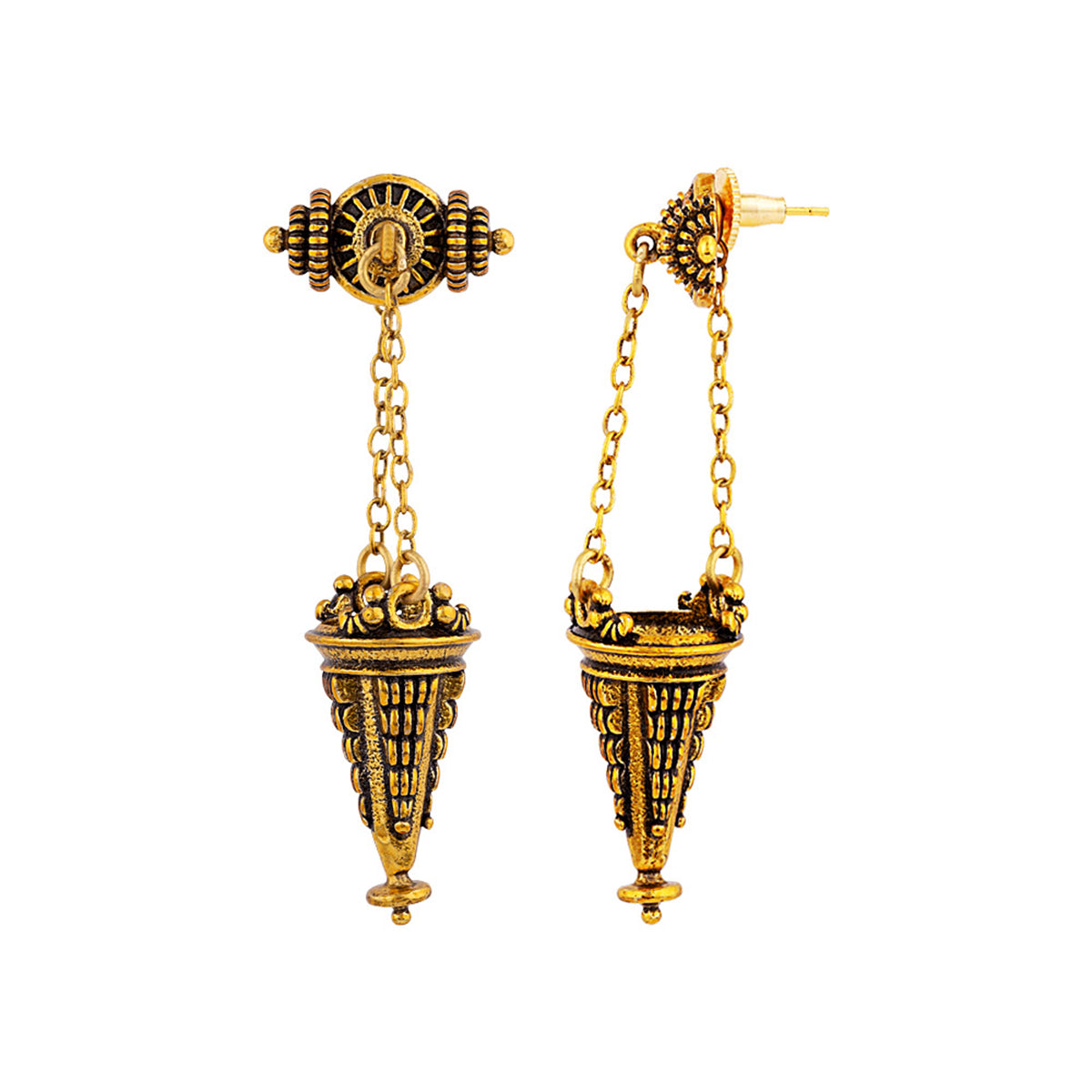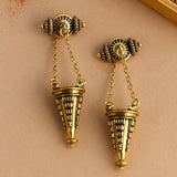Brass drop style earrings with antique gold plating. Pair with Indian attire.