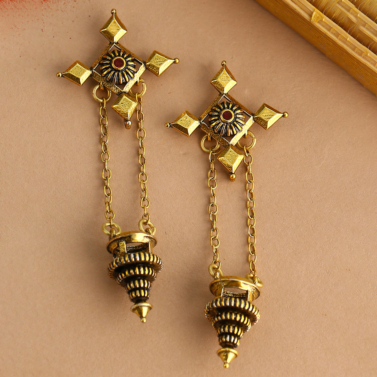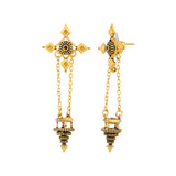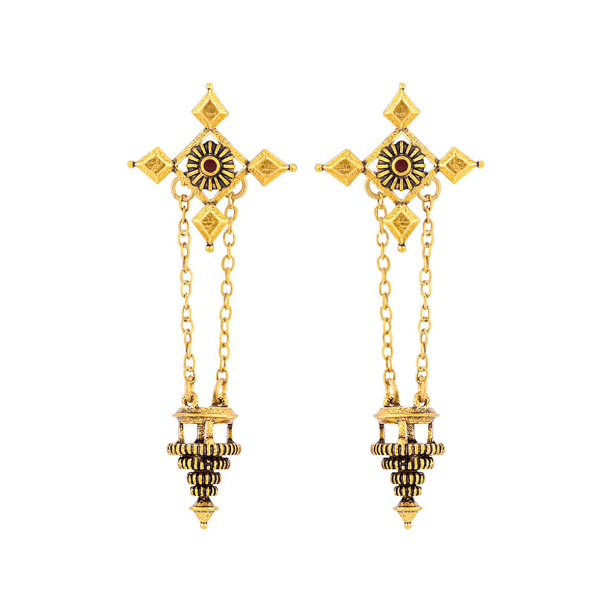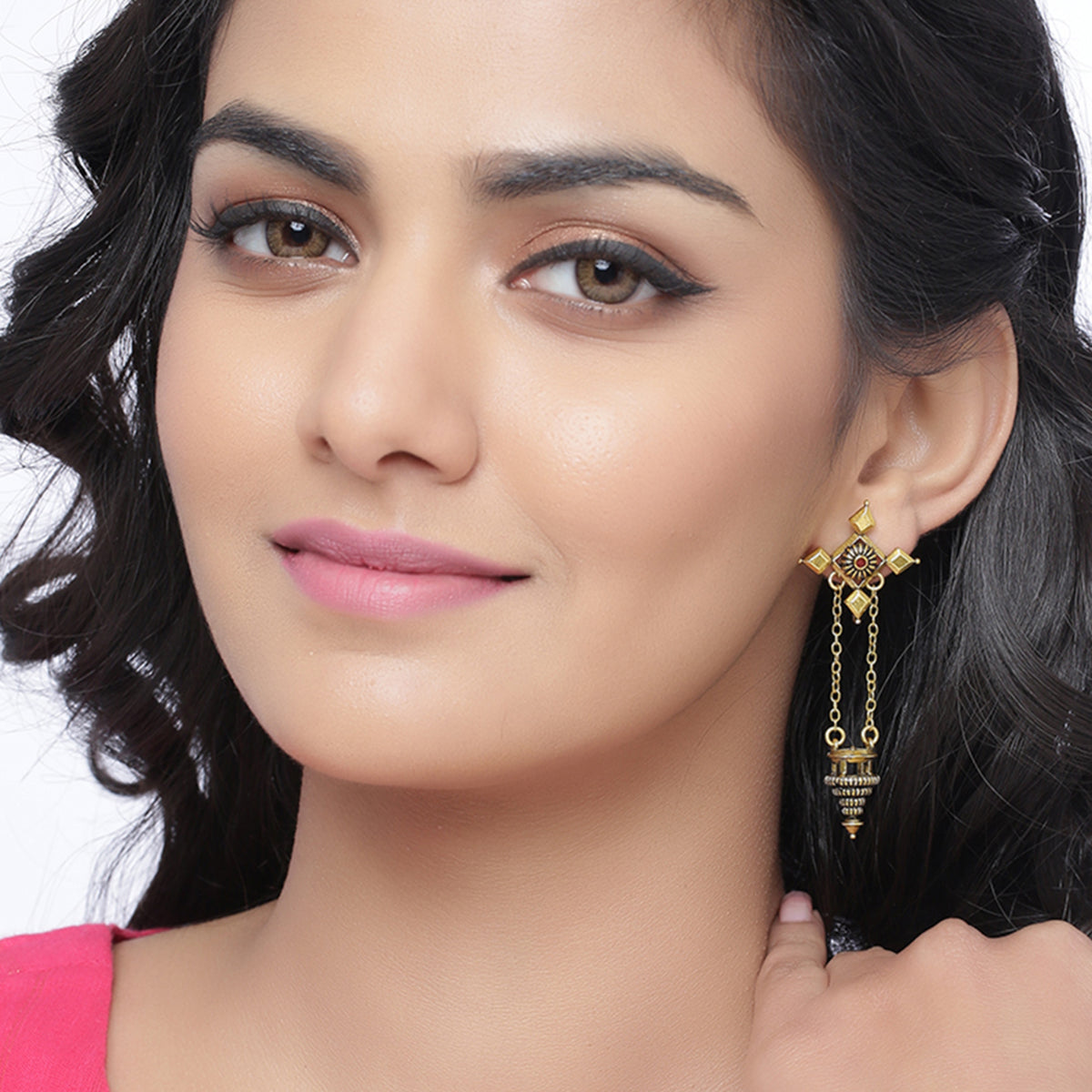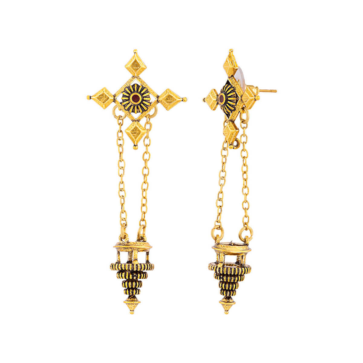 Light lamp motifs drop earrings. Fashioned out of brass and antique gold plated. Wear with ethnic looks.