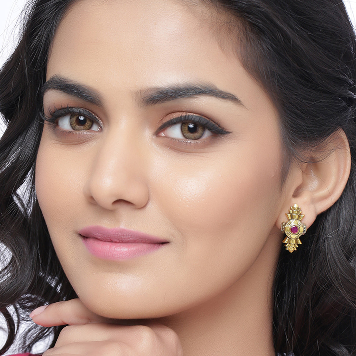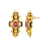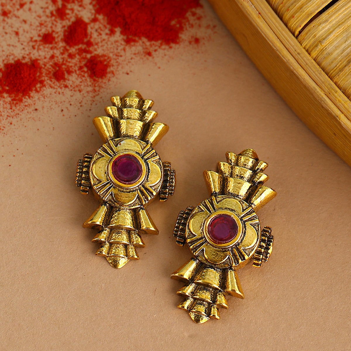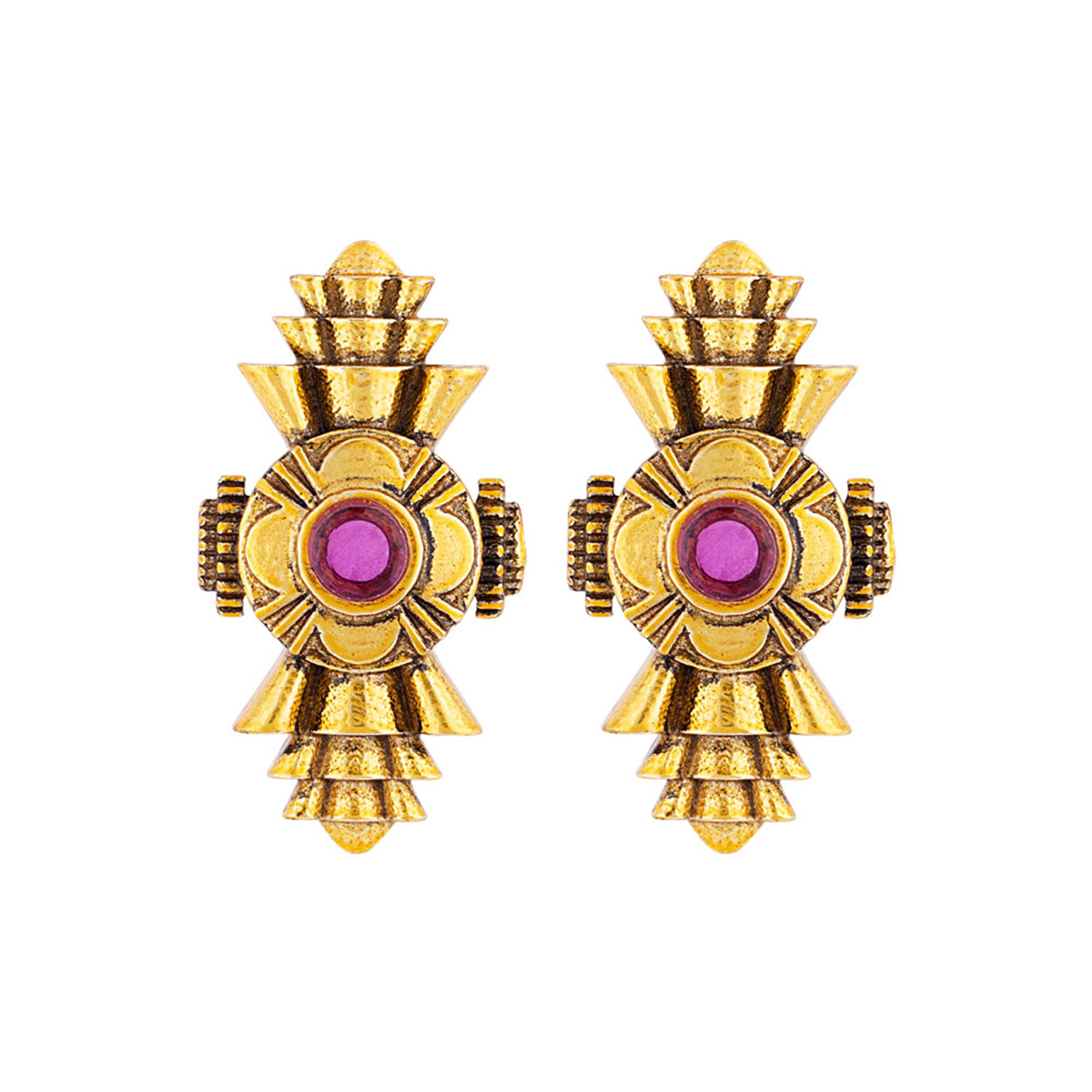 Classic tribal motif stud style earrings made from brass. Antique gold plated and lightly embellished. Good for casual wear.