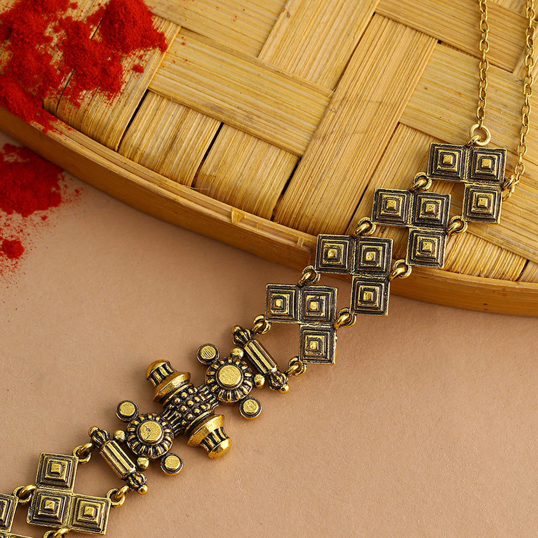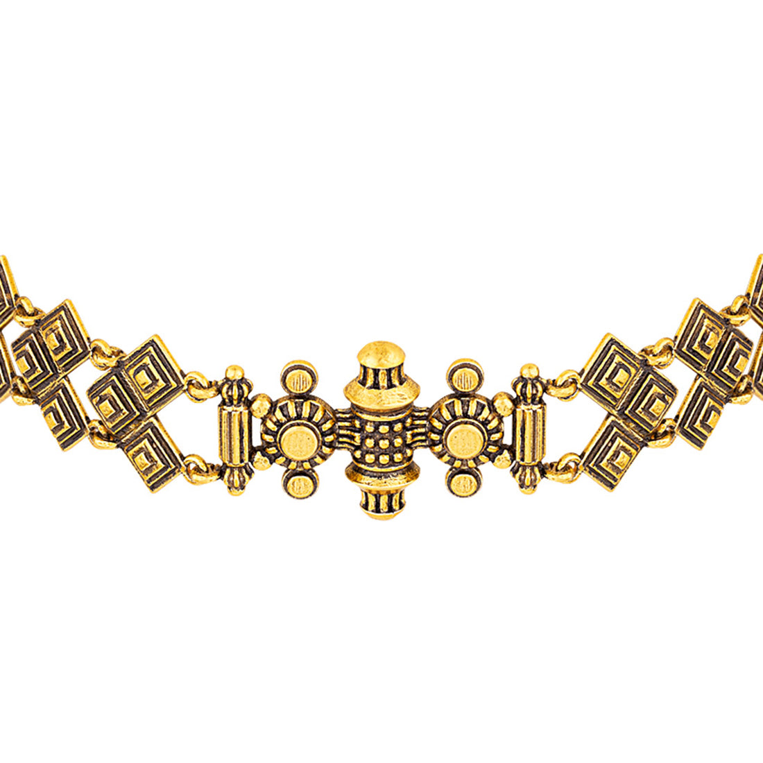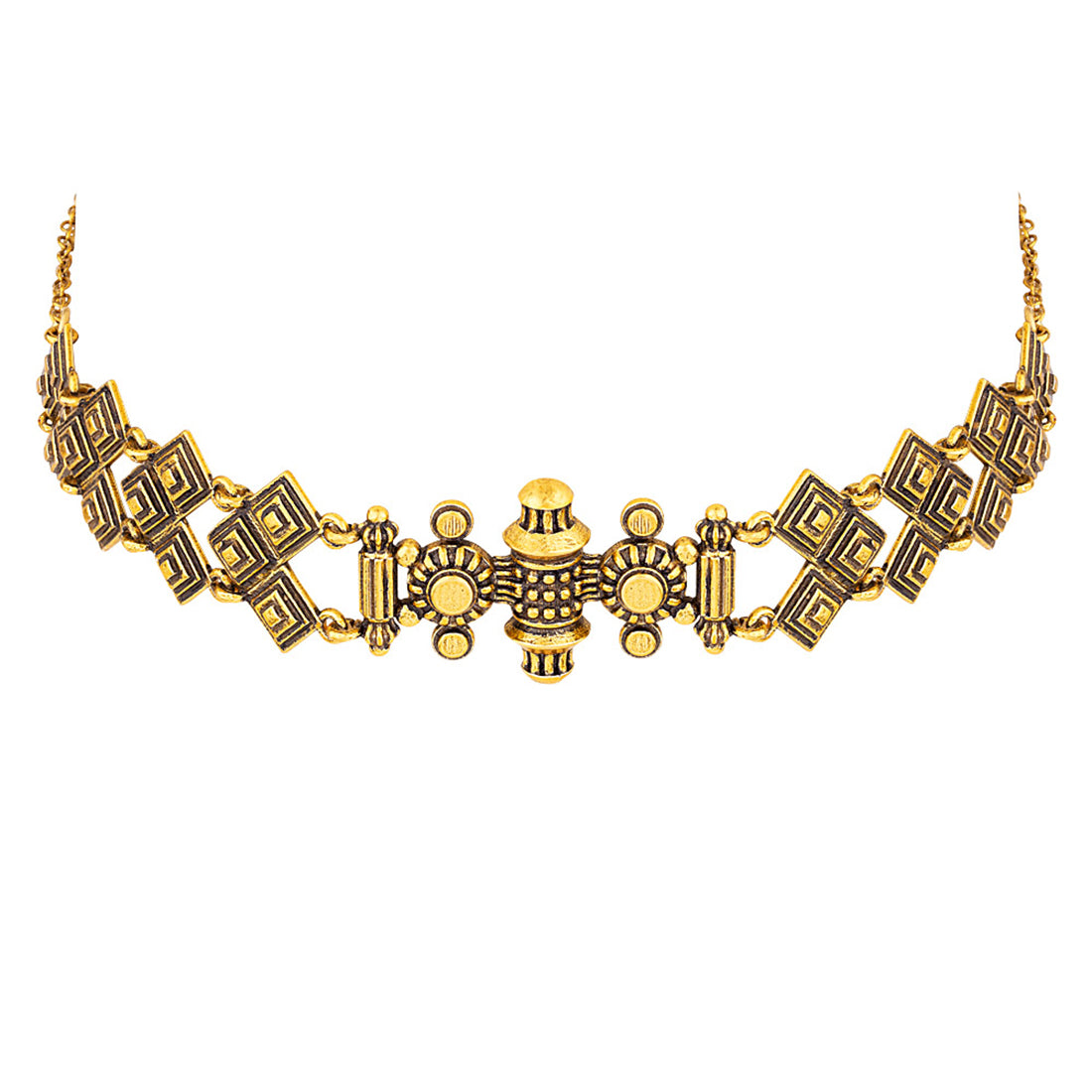 Lattice design choker necklace. Made from brass and antique gold plated. Pair with Indo-Western looks. This piece of jewelry comes with the Voylla assurance of quality and durability.