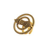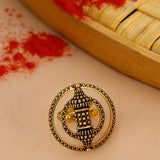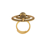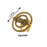 Sacred scroll motif statement ring featuring a textured surface. Made from brass and oxidized yellow gold plated. Pair with ethnic and Indo-Western attire.