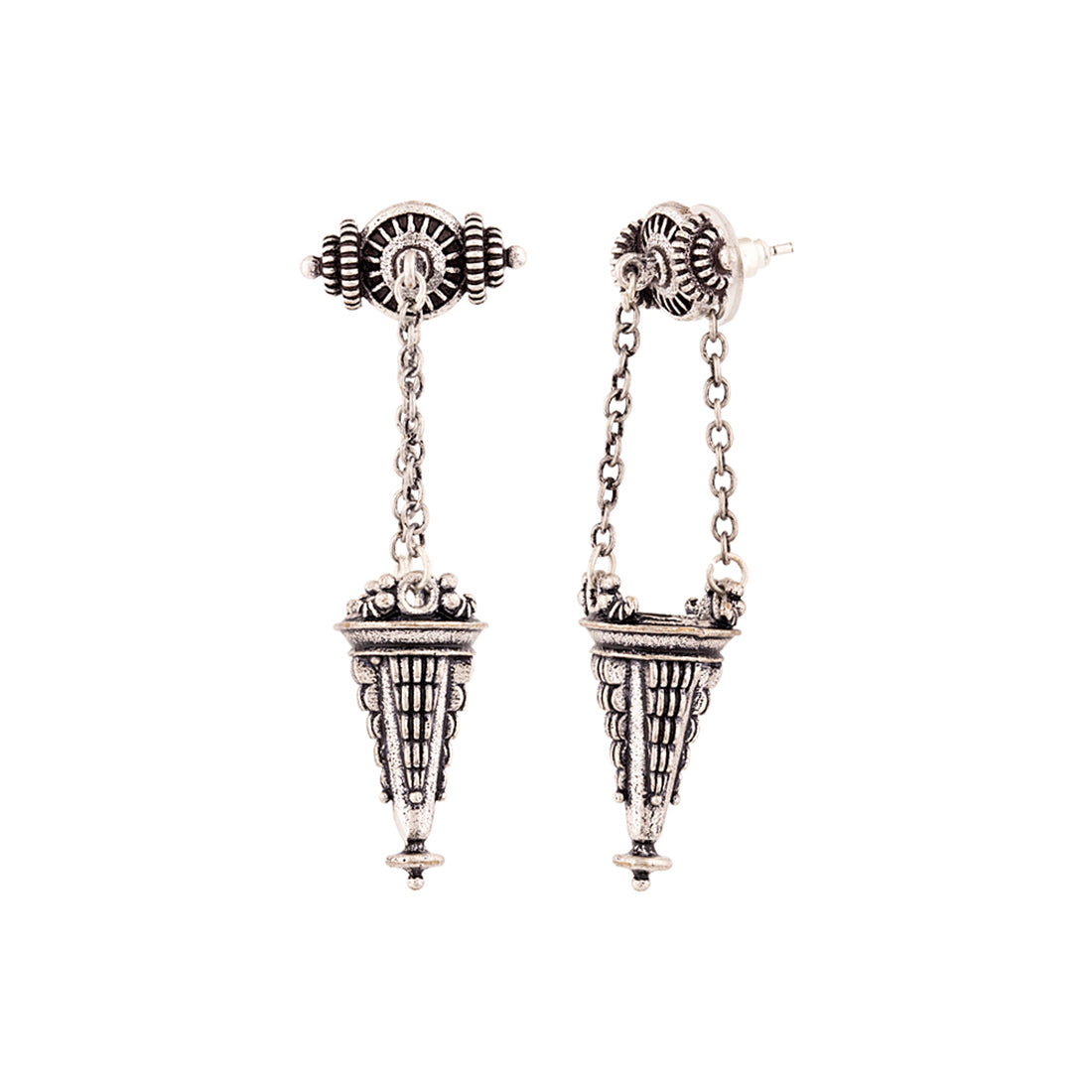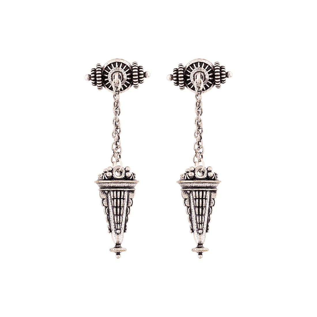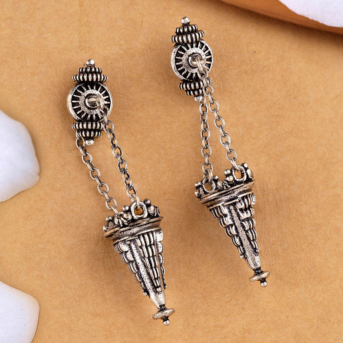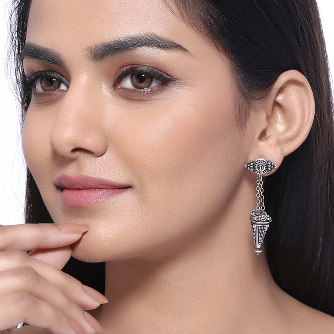 Tribal inspired drop earrings made from brass. Oxidised silver plated and good for casual wear.