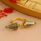 Tribal motif open style ring. Made from brass and antique gold plated. Good for formal looks.