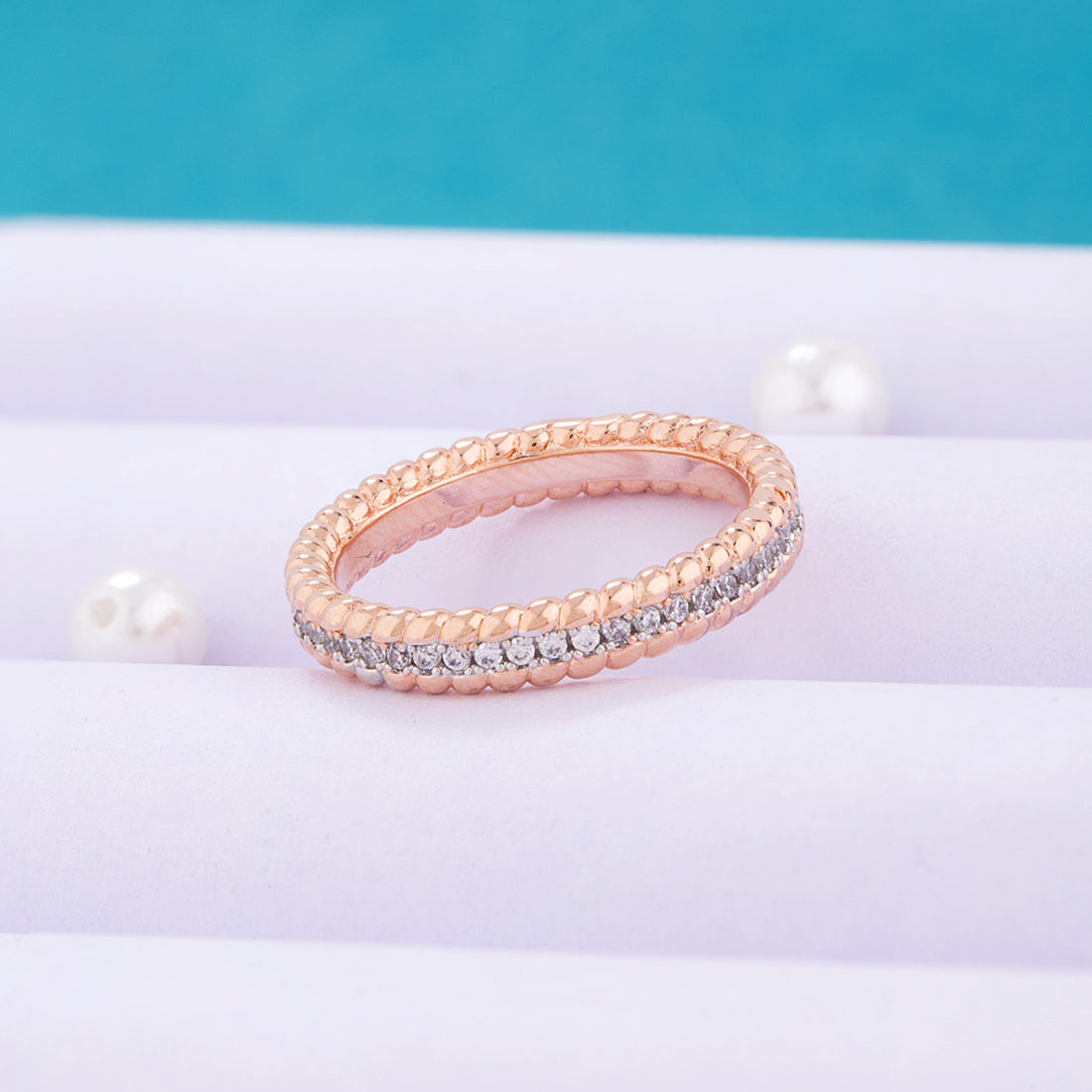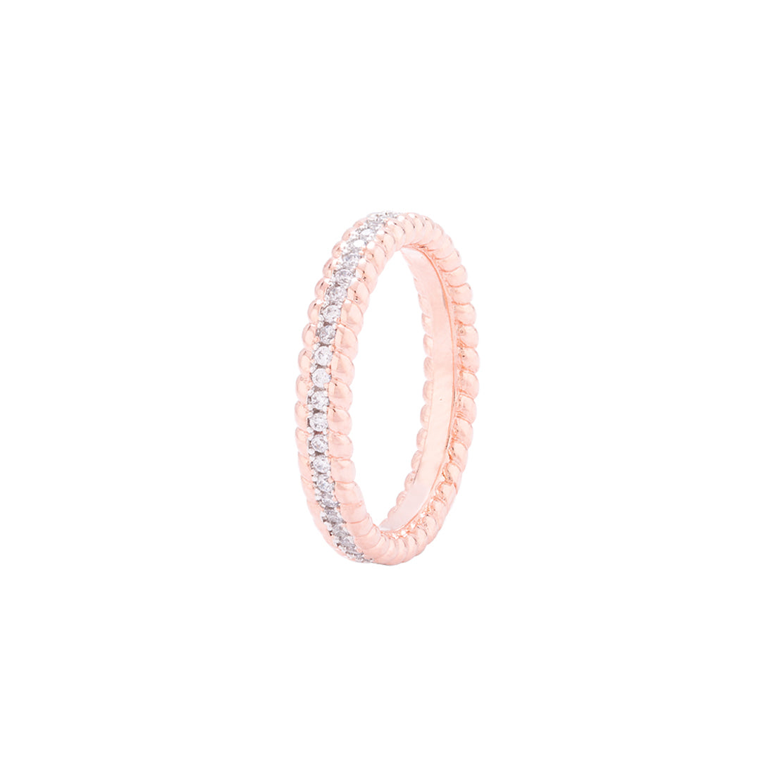 Brass band style ring with a textured surface. Lightly embellished and CZ gems adorned. Pair with formal and casual looks.