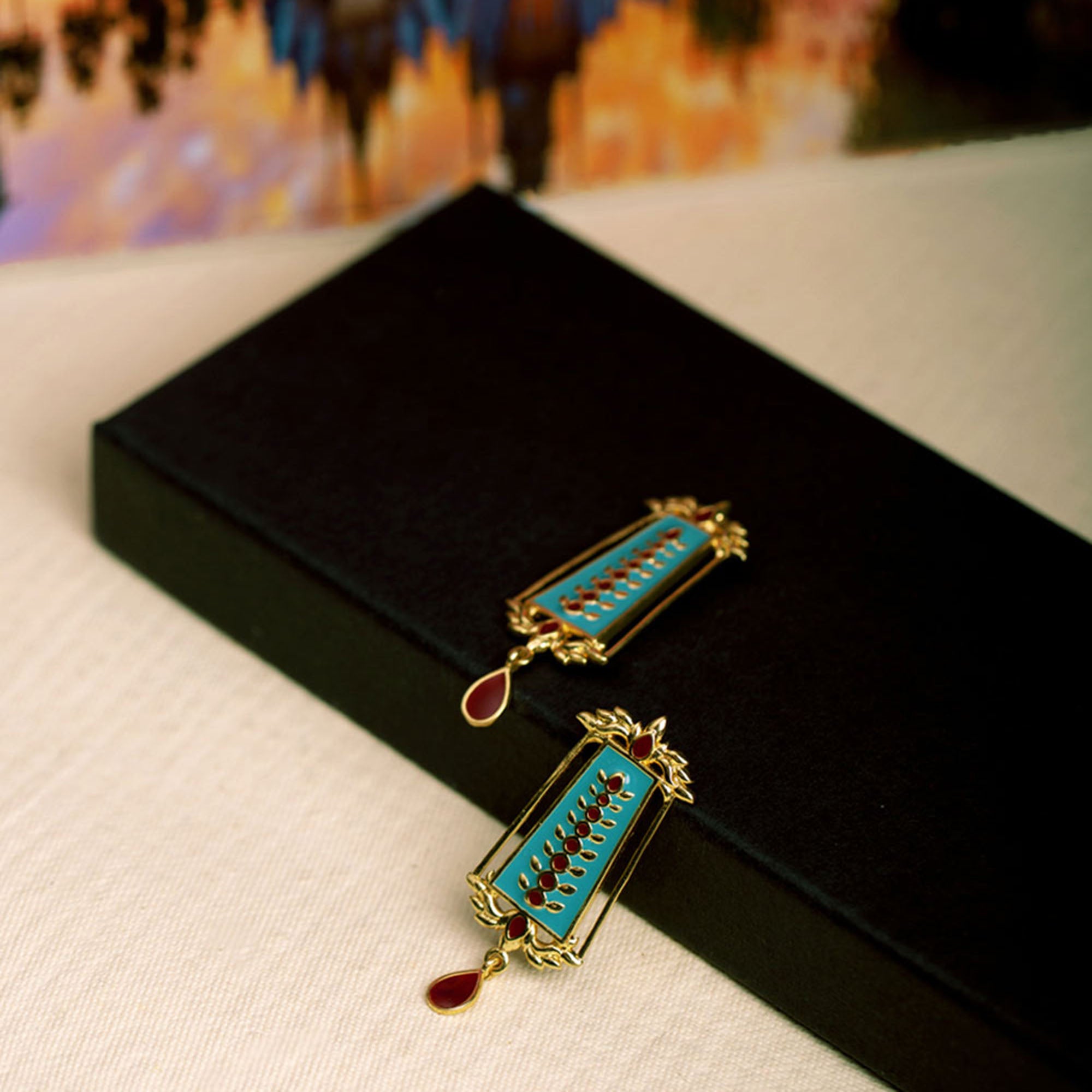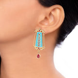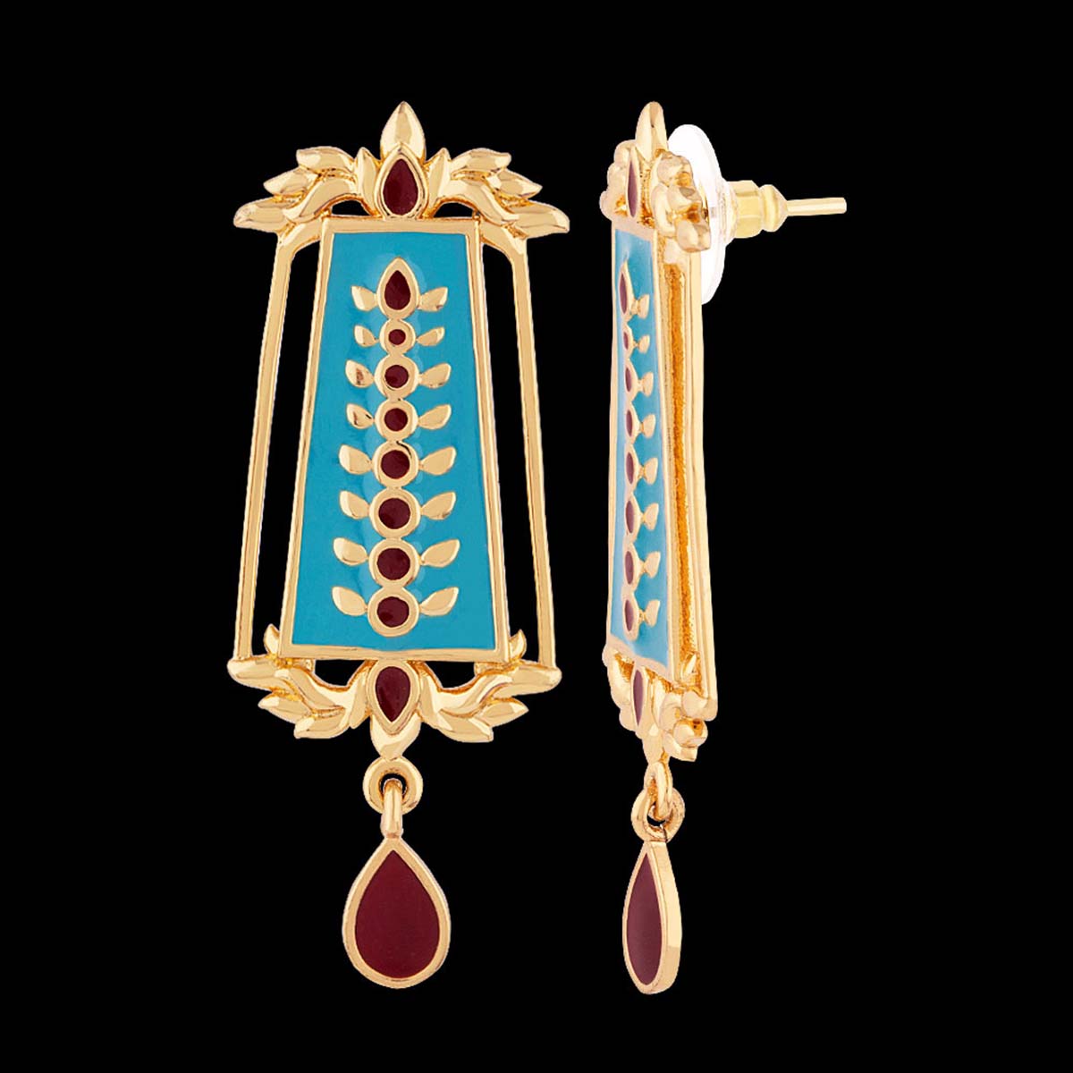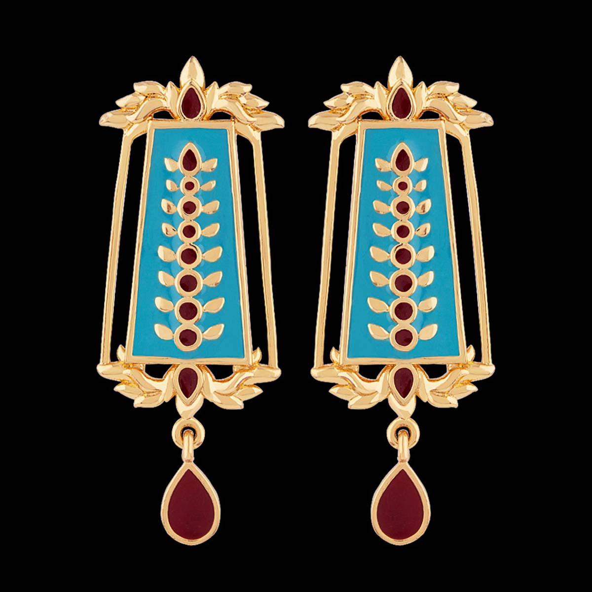 Thailand's tribal crafts and designs have inspired these earrings, which have been fashioned out of brass and adorned with gems. Yellow gold plated and perfect for everyday wear.