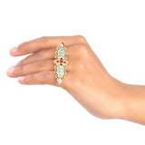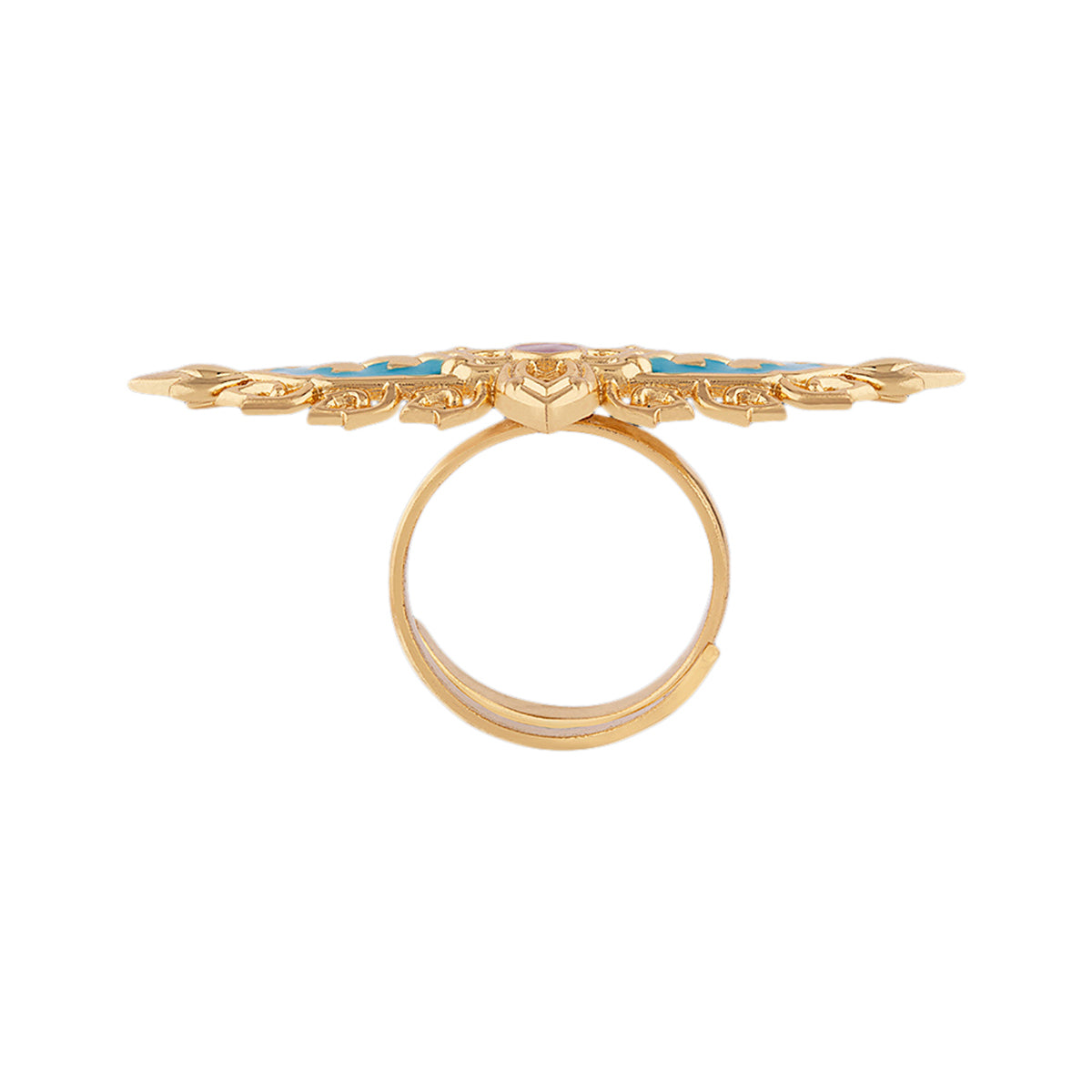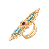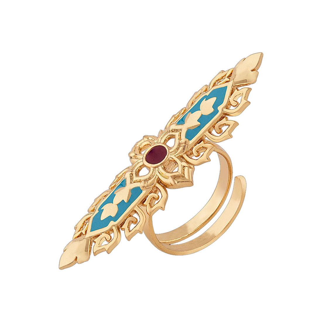 Thailand's wild flora life is the inspiration behind this finger ring, which bears floral and leaf motifs. Yellow gold plated and made from brass. Match with all looks and outfits.