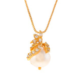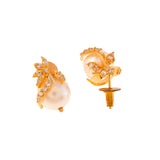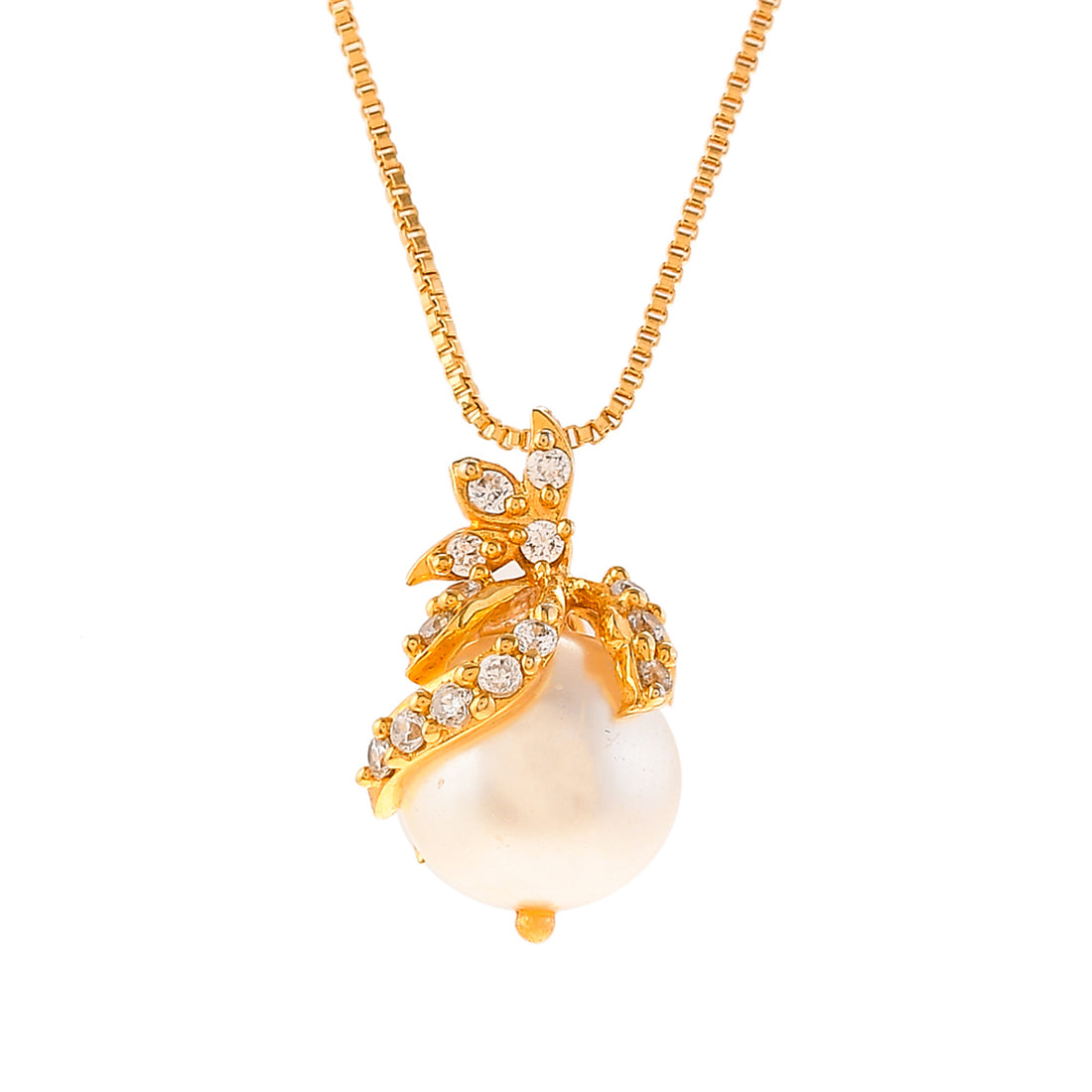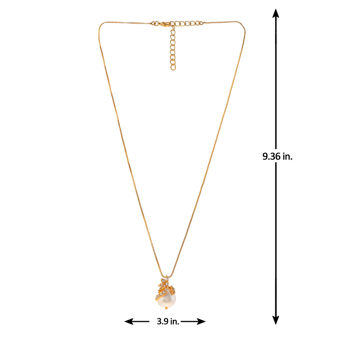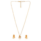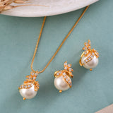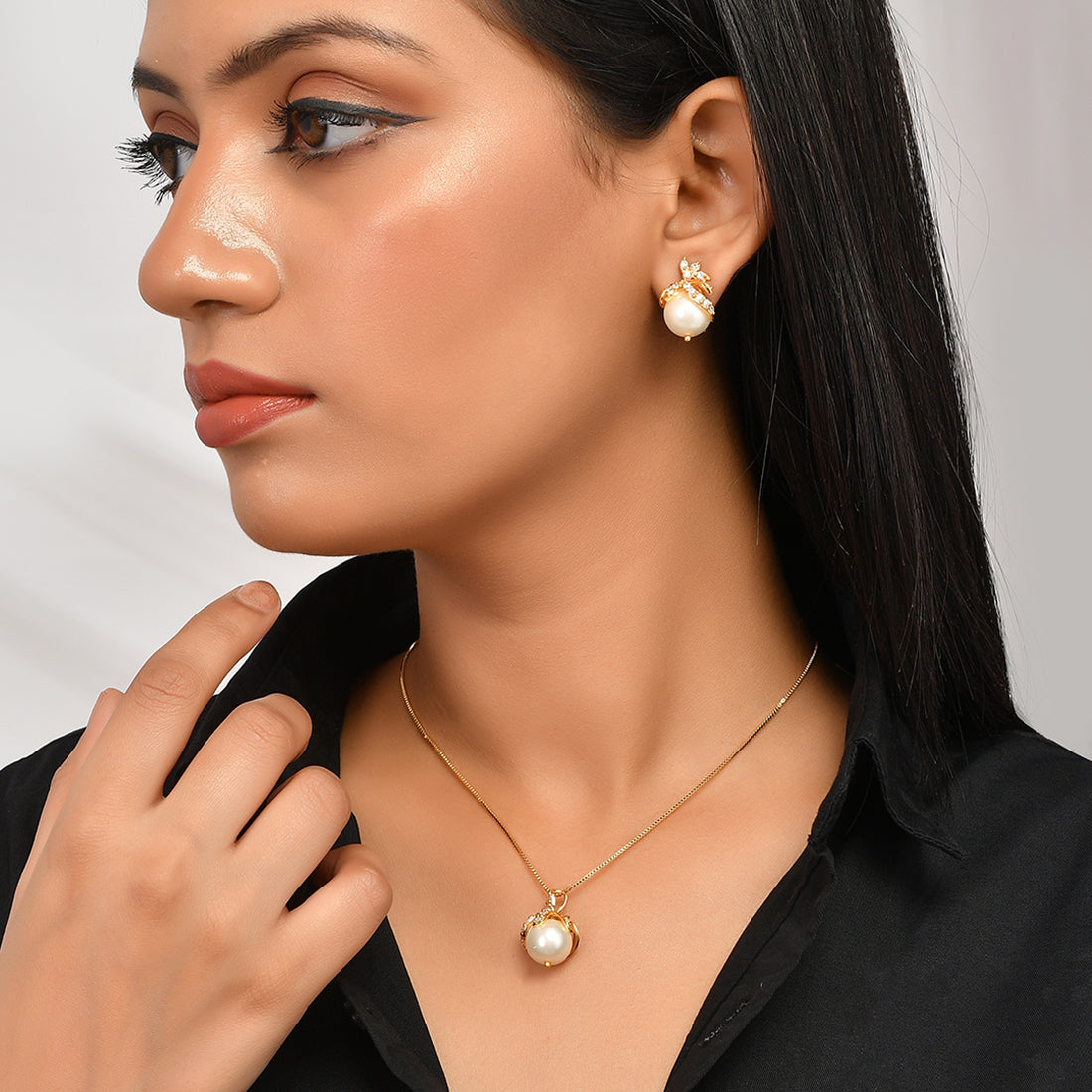 This exquisite pendant set from our Mother's Day Collection is perfect to surprise your mom on her special day. The set features a beautiful half pearl pocket pendant, embellished with sparkling CZ stones that add a touch of elegance to the design. The pendant is accompanied by a pair of matching CZ studded earrings, which perfectly complement the pendant's design. The set is crafted from high-quality brass, plated with yellow gold to ensure a long-lasting, lustrous finish