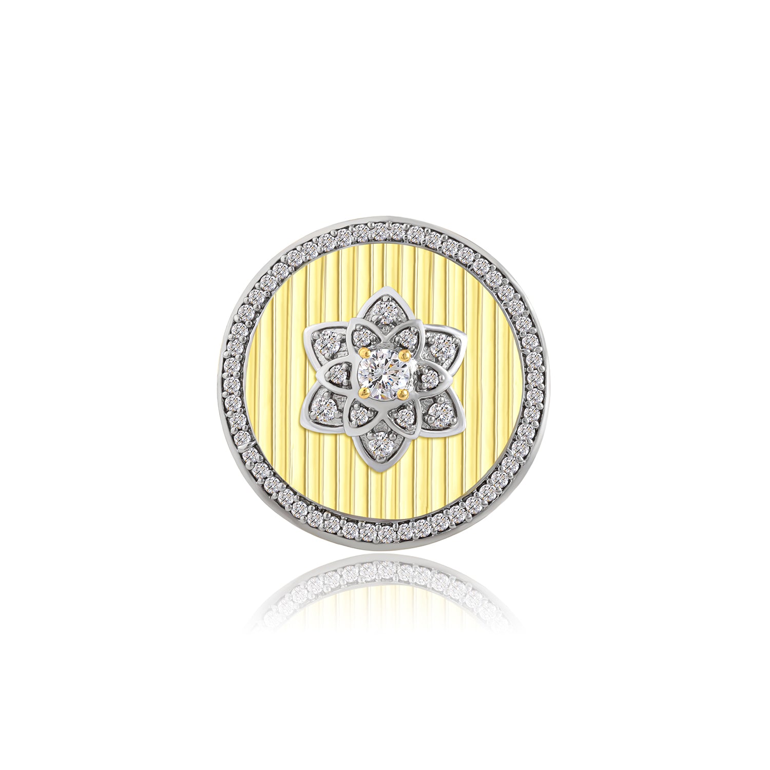 Inspired by the elegance of royal heirloom jewellery, the Rajpushpa Royale Statement Ring from the Threads of Royalty collection beautifully combines regal artistry with modern sophistication. Designed to stand out, this piece reflects timeless craftsmanship while celebrating contemporary style. At the center of the design lies a delicate floral motif adorned with sparkling CZ stones (American Diamonds) that form a radiant bloom. The floral centerpiece symbolizes grace and beauty, while the surrounding circular frame is enhanced with shimmering stones that add brilliance and depth. The textured gold-toned surface beneath the floral element creates a striking contrast, giving the ring a bold and luxurious appearance. Crafted with a brass base and finished in a rich gold tone, the ring offers durability along with a refined aesthetic. The combination of gold finish and sparkling stones creates a timeless look that easily complements both traditional and modern fashion. This statement ring is designed to elevate your jewellery styling effortlessly. Pair it with ethnic outfits like sarees, lehengas, or festive suits to enhance traditional looks, or style it with contemporary dresses and fusion wear to create a bold modern statement. Its versatile design allows it to transition seamlessly from festive celebrations to elegant evening occasions. The Rajpushpa Royale Statement Ring also makes a meaningful jewellery gift. Perfect for anniversaries, birthdays, festive celebrations, or special occasions, it is a beautiful way to express love and appreciation for your wife, mother, partner, or someone special.