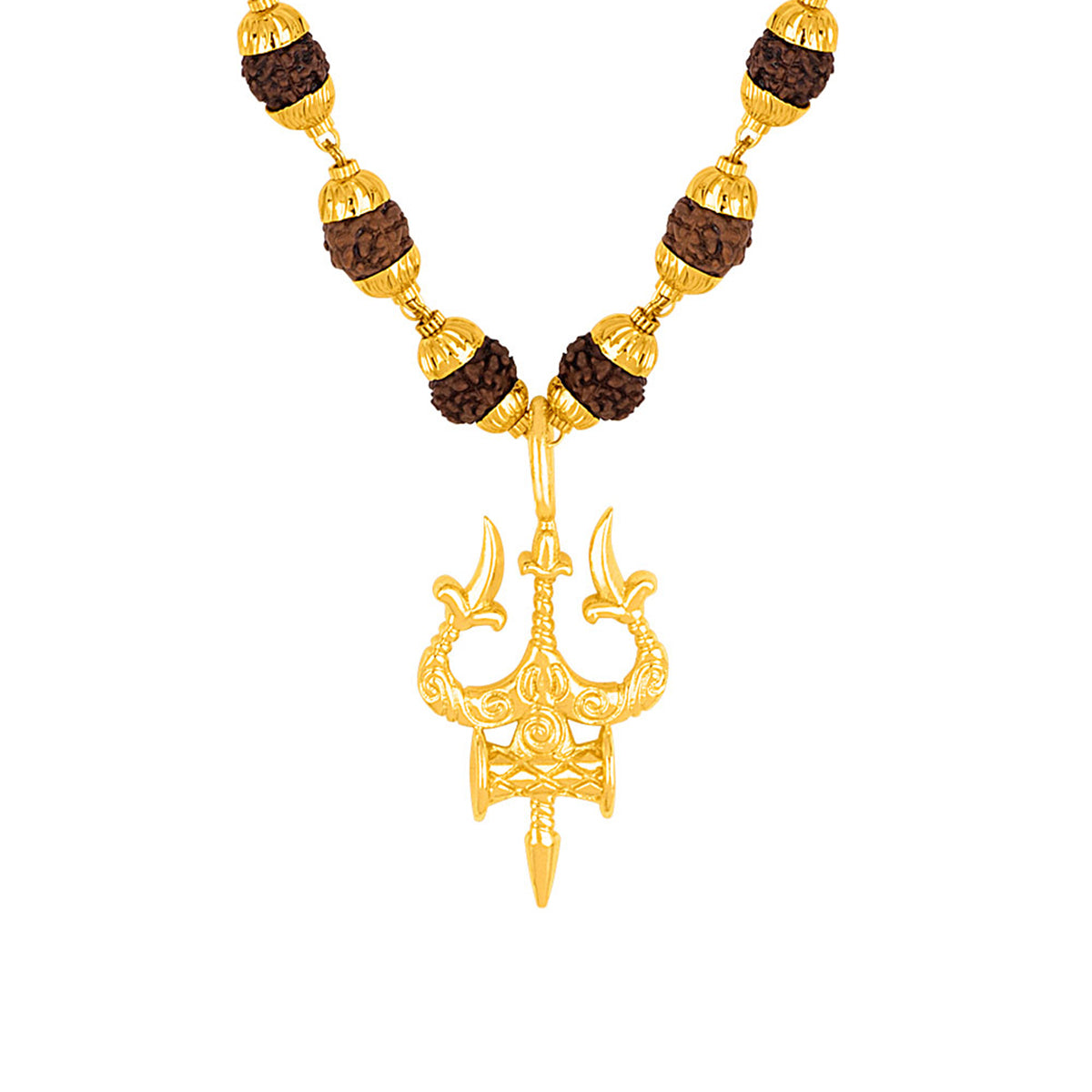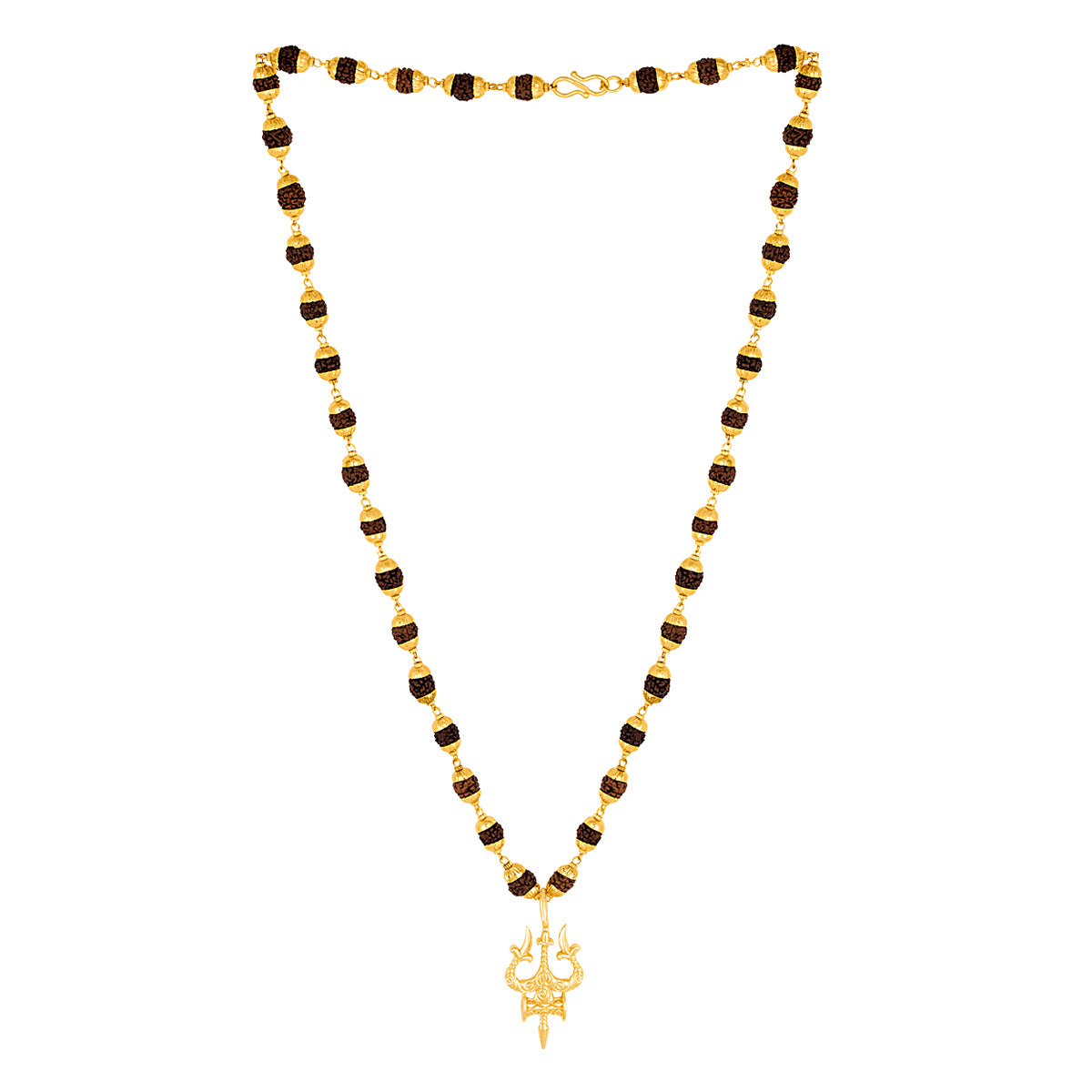 Timeless Gold Plated Mahadev Trishul Rudraksha Beaded Necklace