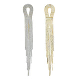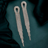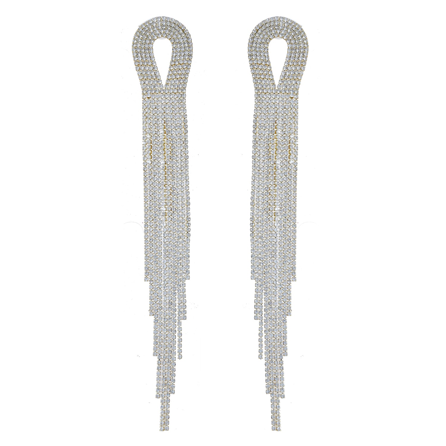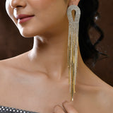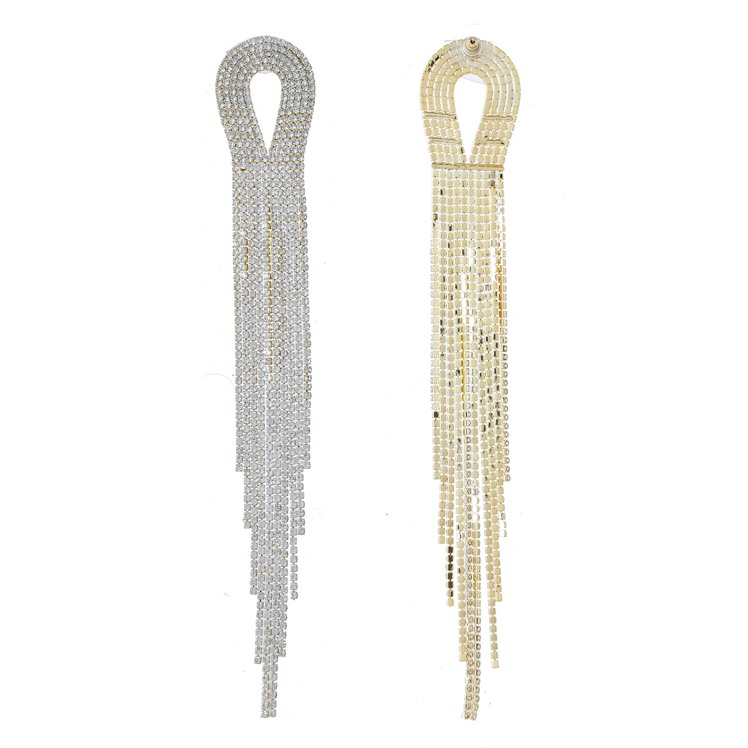 The Crystal Flow Infinity Gold Rhinestone Danglers Earrings are a stunning addition to the Timeless Sparkle collection, crafted with meticulous attention to detail. These long dangler earrings feature an elegant infinity loop design adorned with shimmering rhinestones, exuding a luxurious and sophisticated charm. Made from high-quality brass with a gold plating, these statement earrings are perfect for adding a touch of glamour to any outfit. Whether you're dressing up for a festive occasion, a wedding, or a cocktail party, these versatile earrings will elevate your look effortlessly. The sparkling rhinestones catch the light beautifully, making them an ideal choice for evening wear. These earrings also make a thoughtful gift for women on special occasions such as Valentine's Day, Diwali, Rakshabandhan, Christmas, or New Year. Surprise your loved ones, be it your sister, girlfriend, wife, or mother, with these trendy and stylish earrings that are sure to impress.
