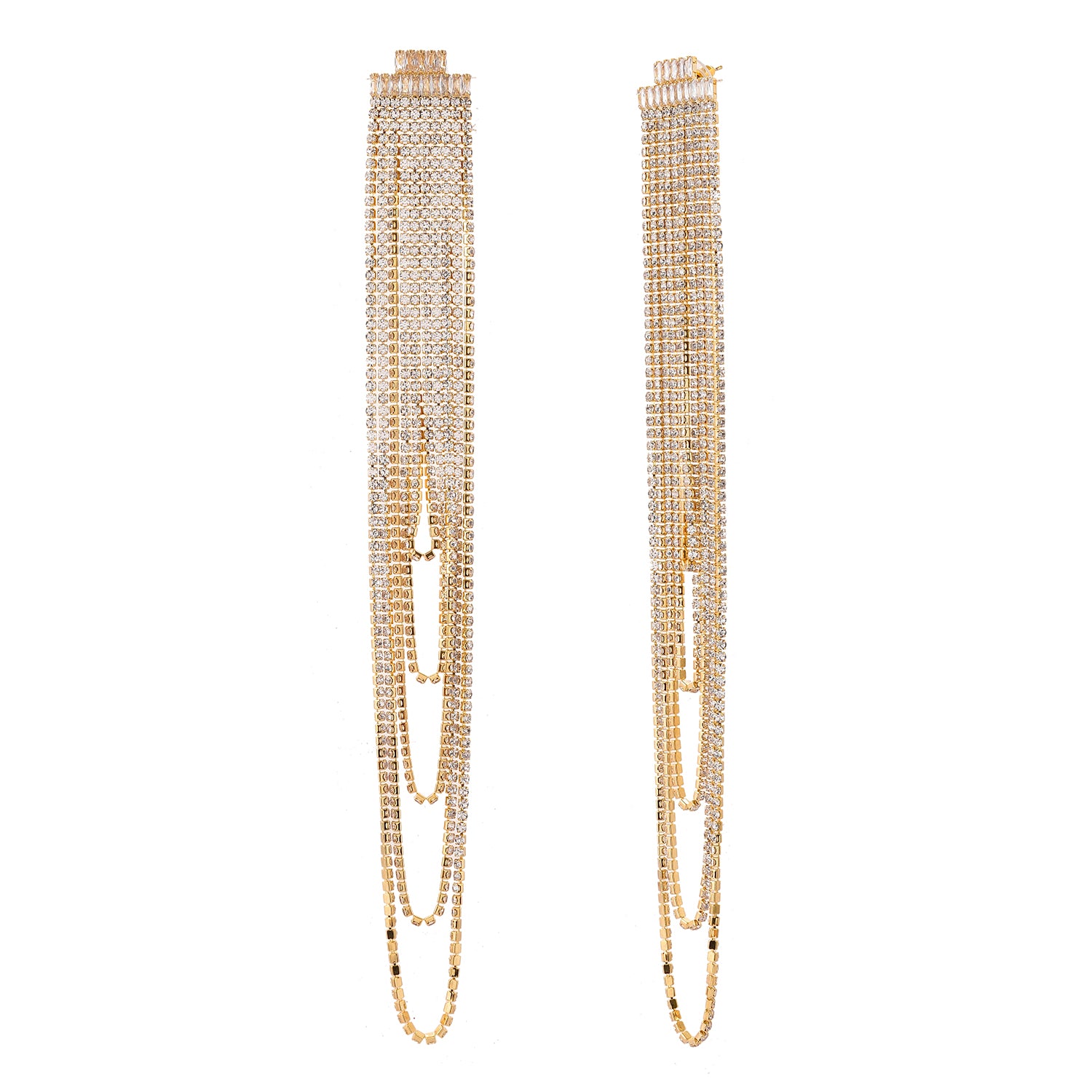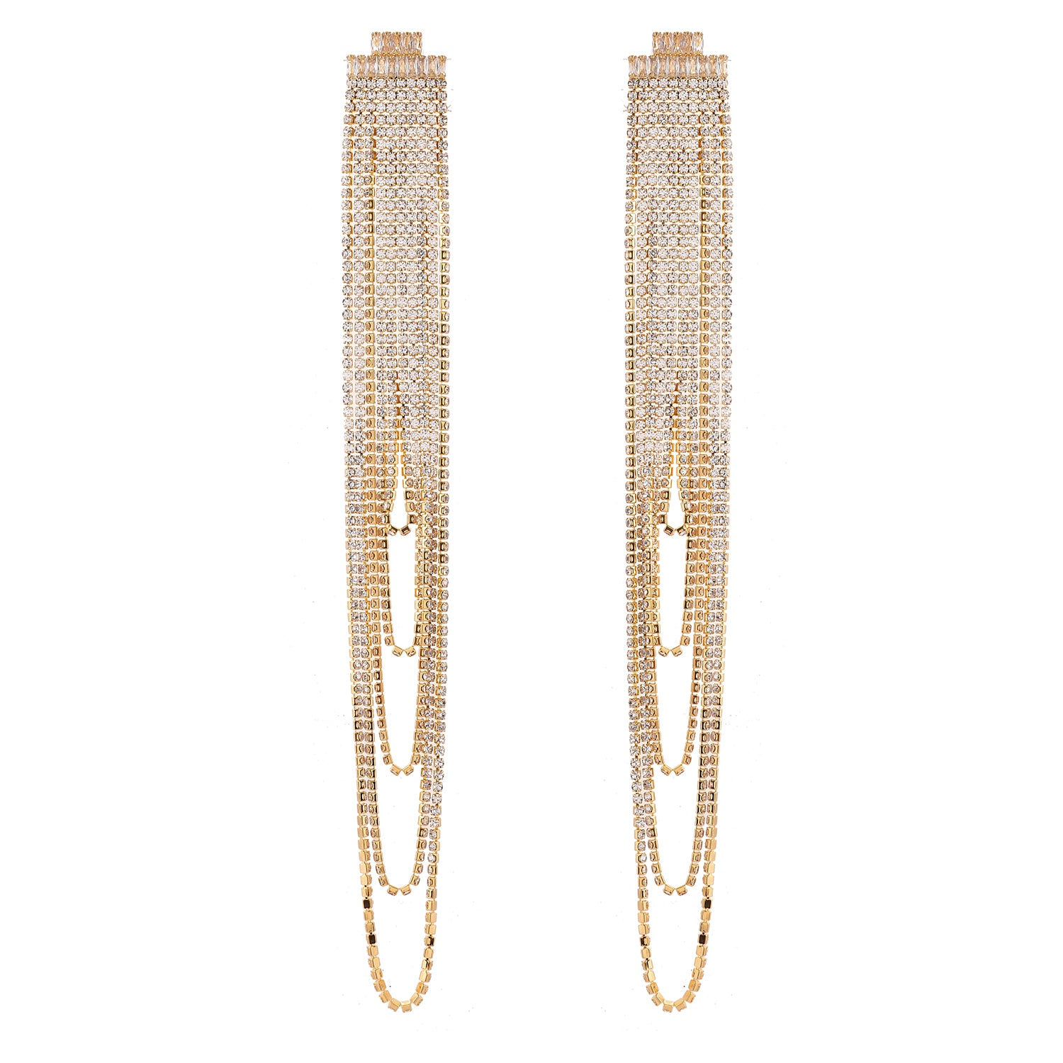 Timeless Sparkle Crystal Rain Multi-Layer Gold Rhinestone Earrings