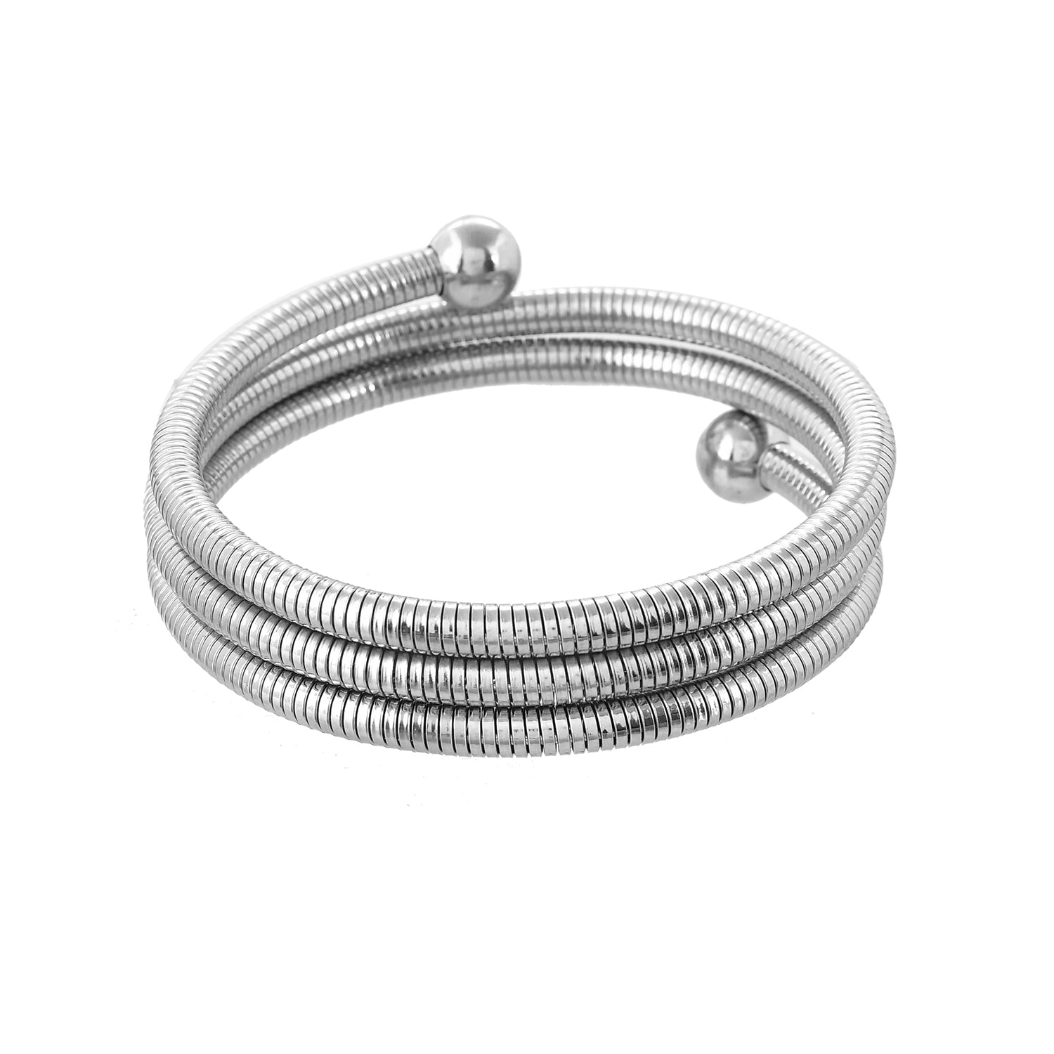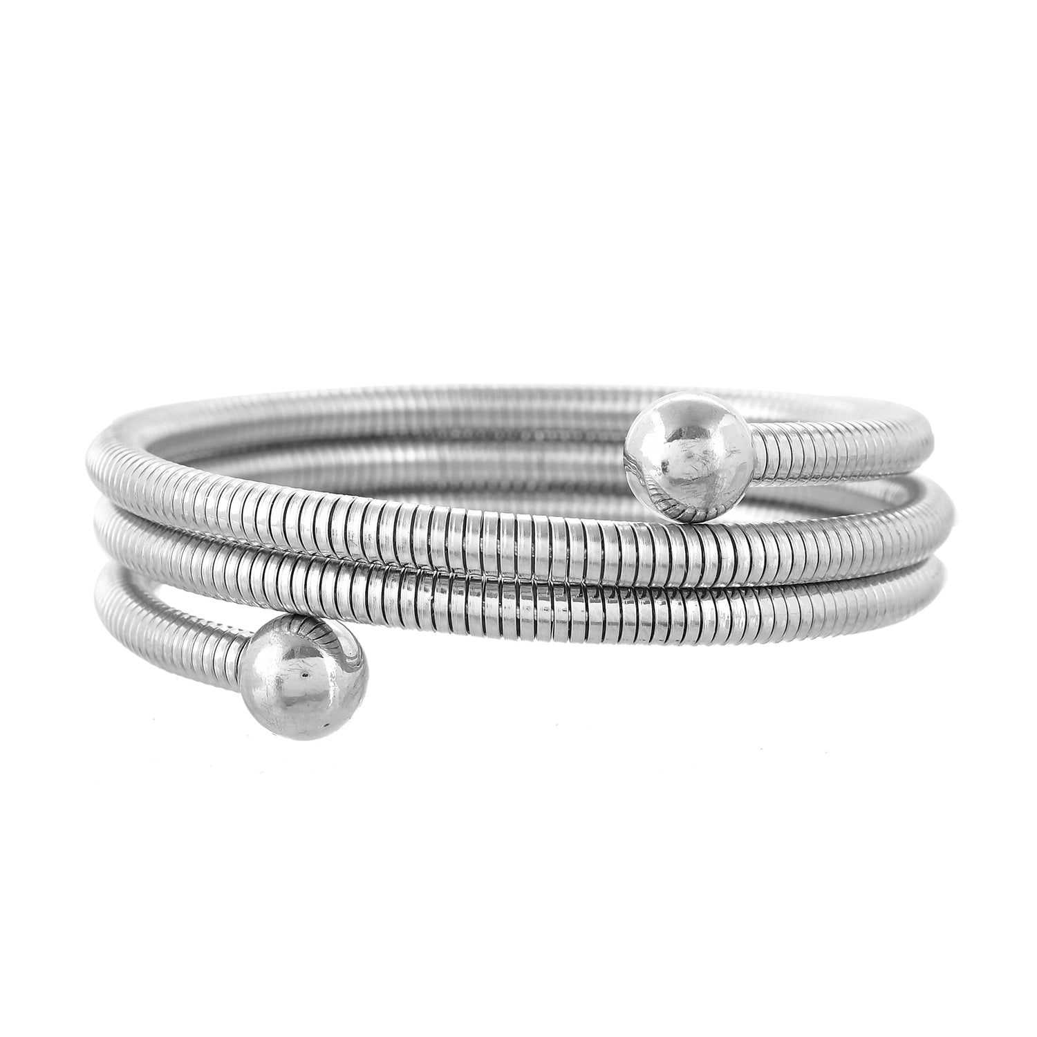 The Mystic Moonlight Bracelet is a stunning piece from the Timeless Sparkle collection, crafted with meticulous attention to detail. Made from high-quality brass and plated with white rhodium, this designer bracelet exudes elegance and sophistication. Its unique coiled design, adorned with polished spherical accents, makes it a statement piece perfect for any occasion. The sleek silver color adds a touch of modernity, making it versatile for both daily wear and special events such as weddings, parties, and festive celebrations. This trendy bracelet is an ideal gift for women, whether for Valentine's Day, Diwali, Rakshabandhan, Christmas, or New Year. It is a thoughtful present for a girlfriend, wife, mother, or sister, ensuring they feel cherished and stylish. Pair it with a western necklace for a complete look, or wear it solo to let its beauty shine. The Mystic Moonlight Bracelet is not just an accessory; it's a timeless piece that adds sparkle to any outfit.