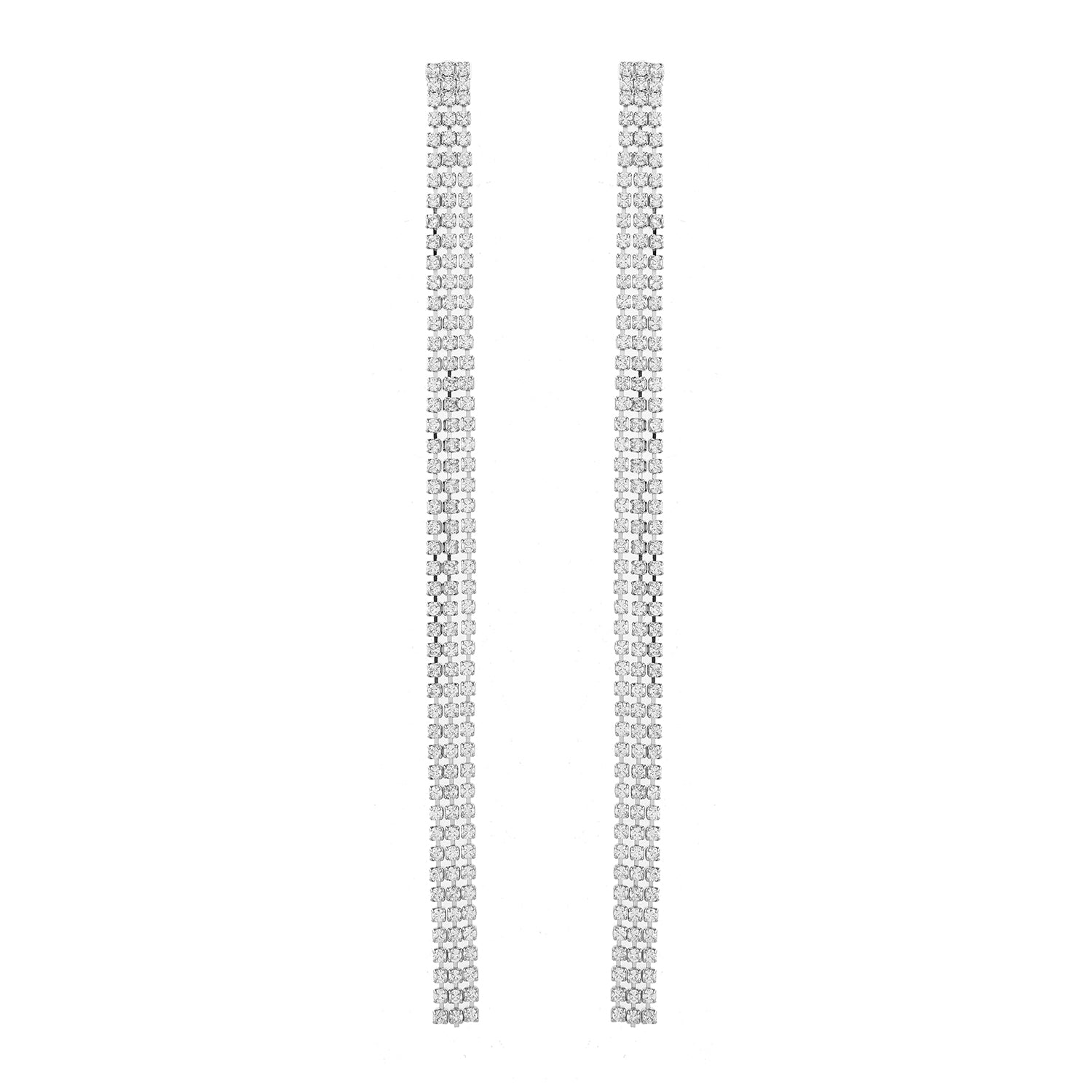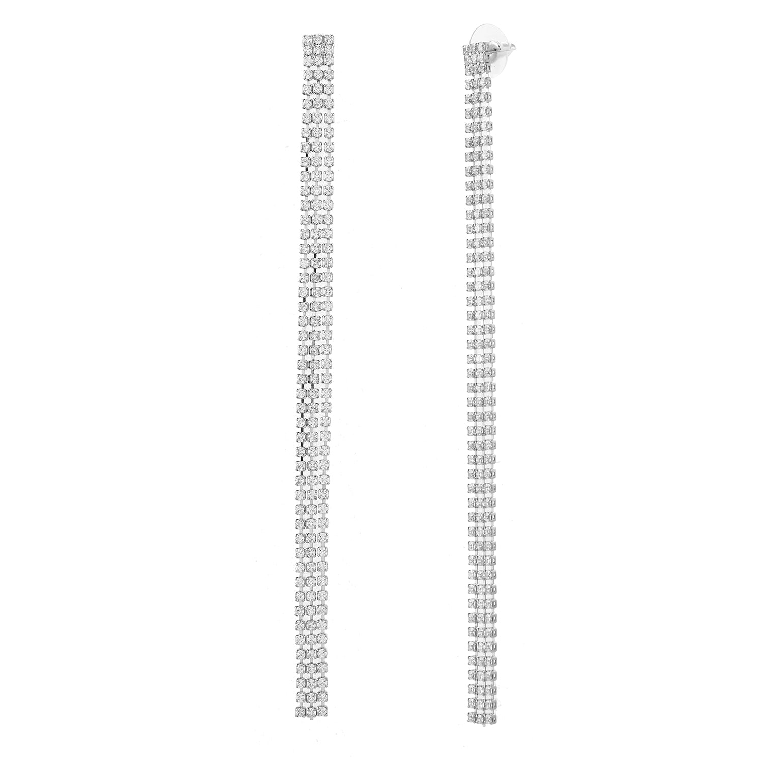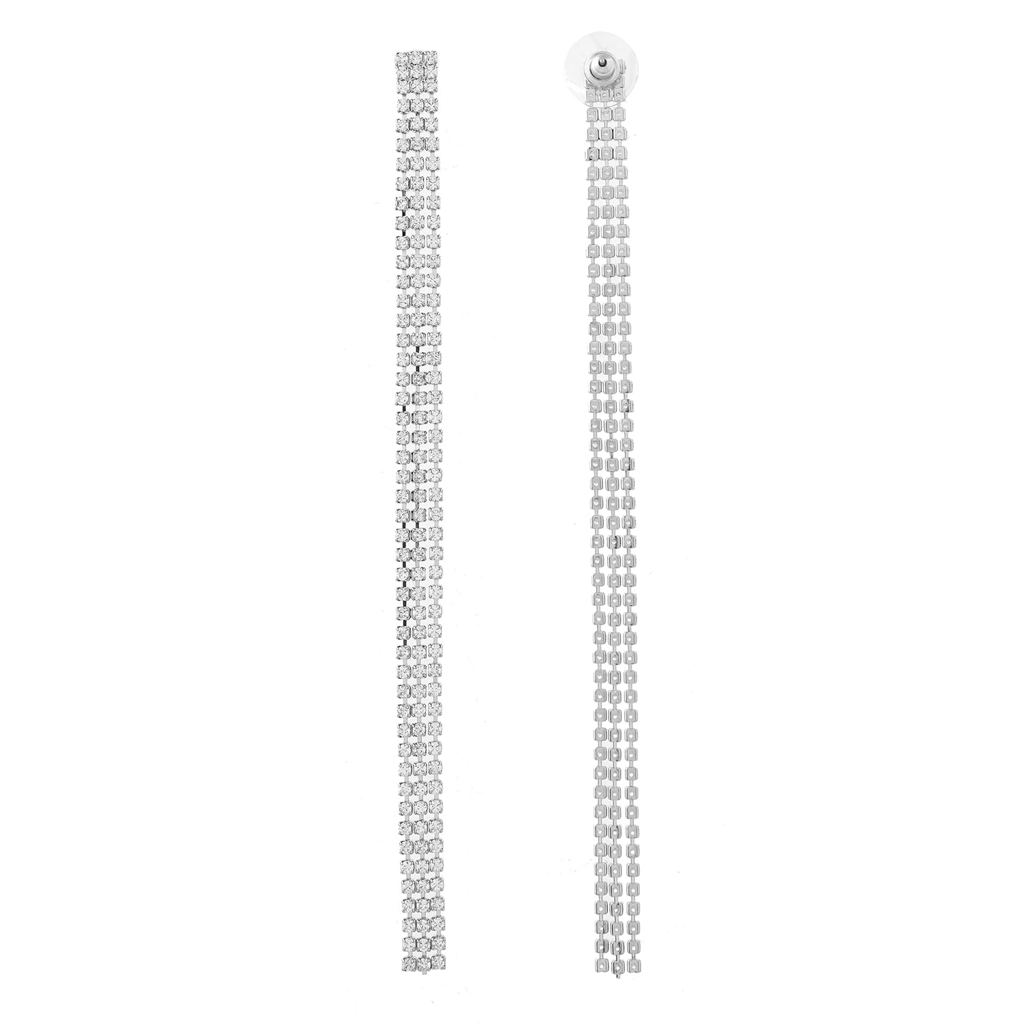 Timeless Sparkle Twinkling Cascade Long Rhinestone Silver Dangler Earrings