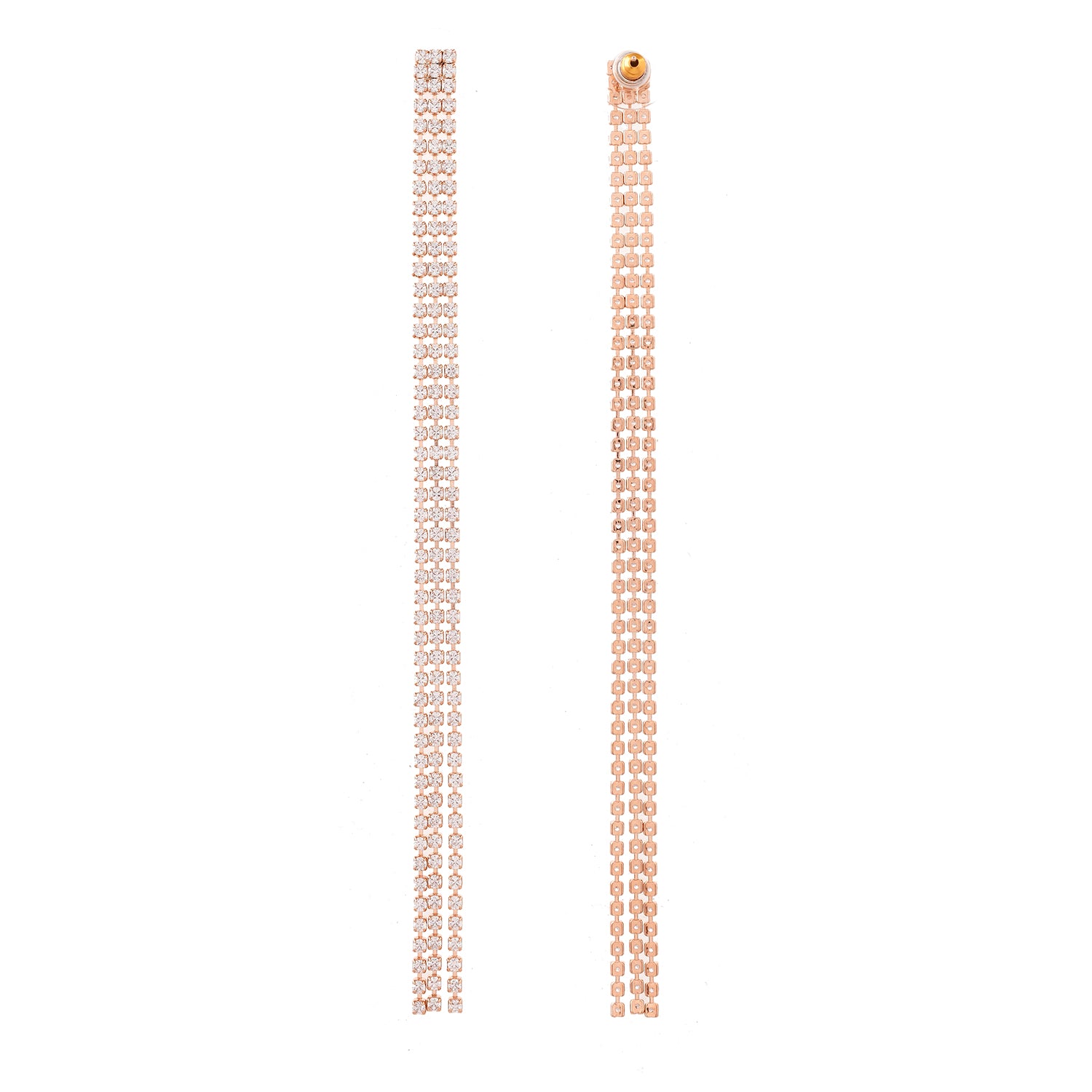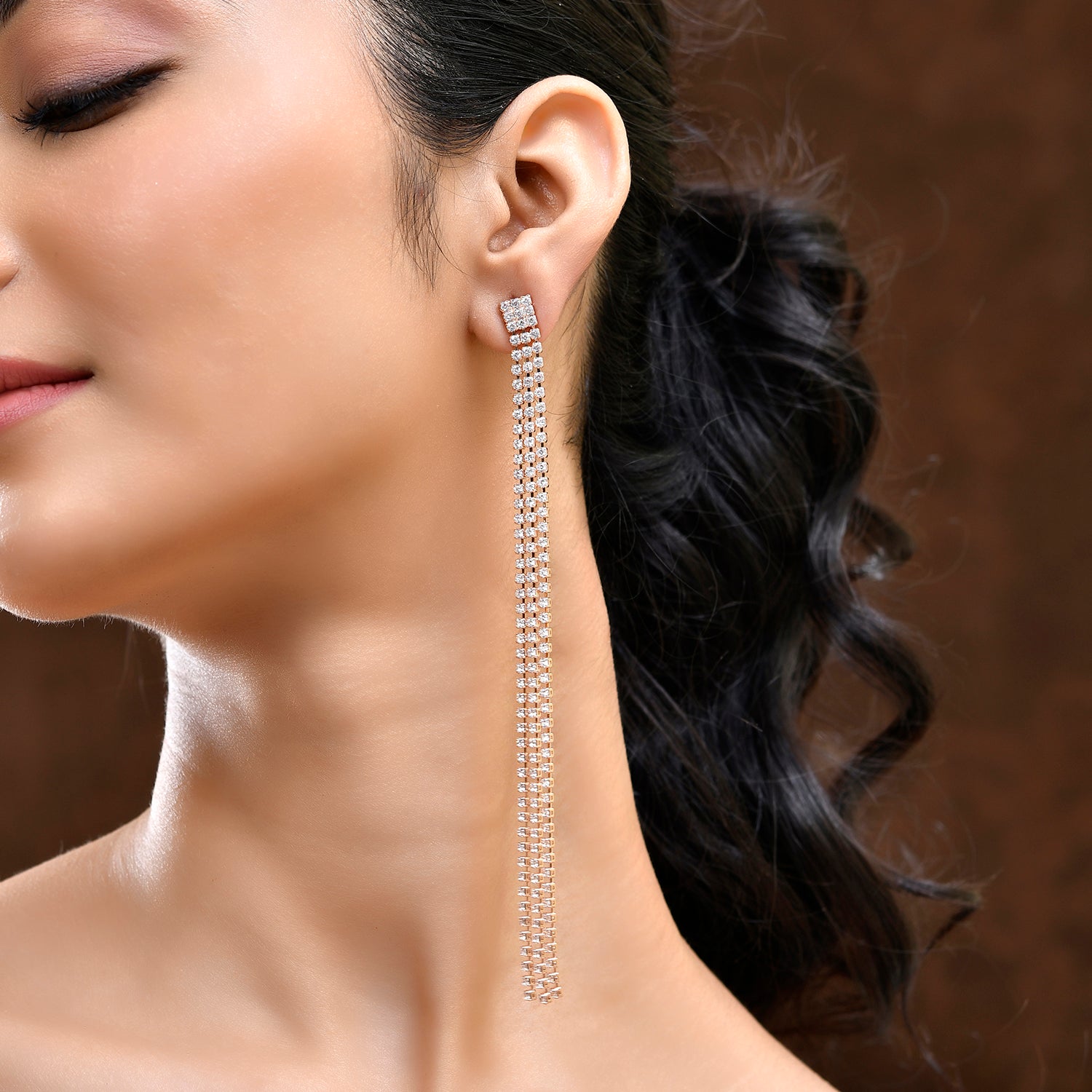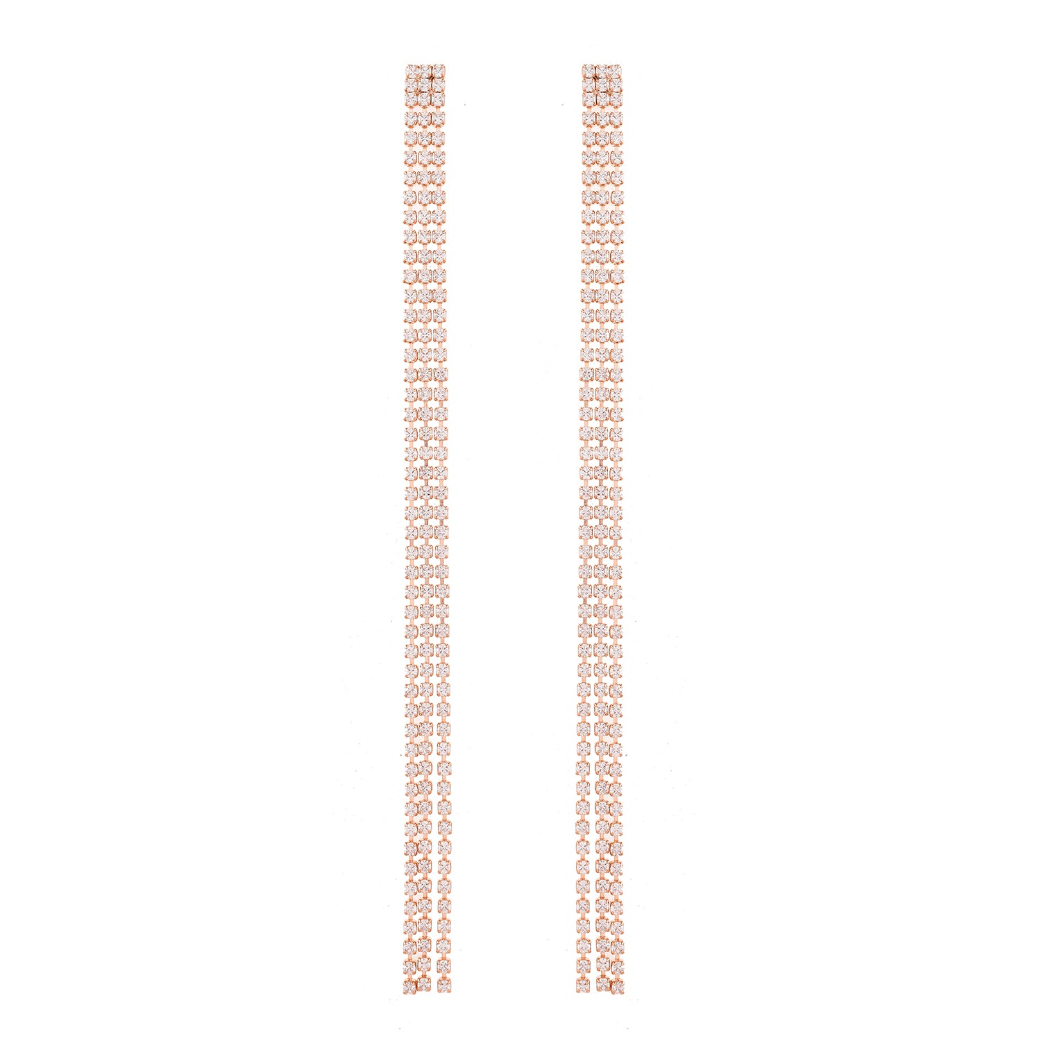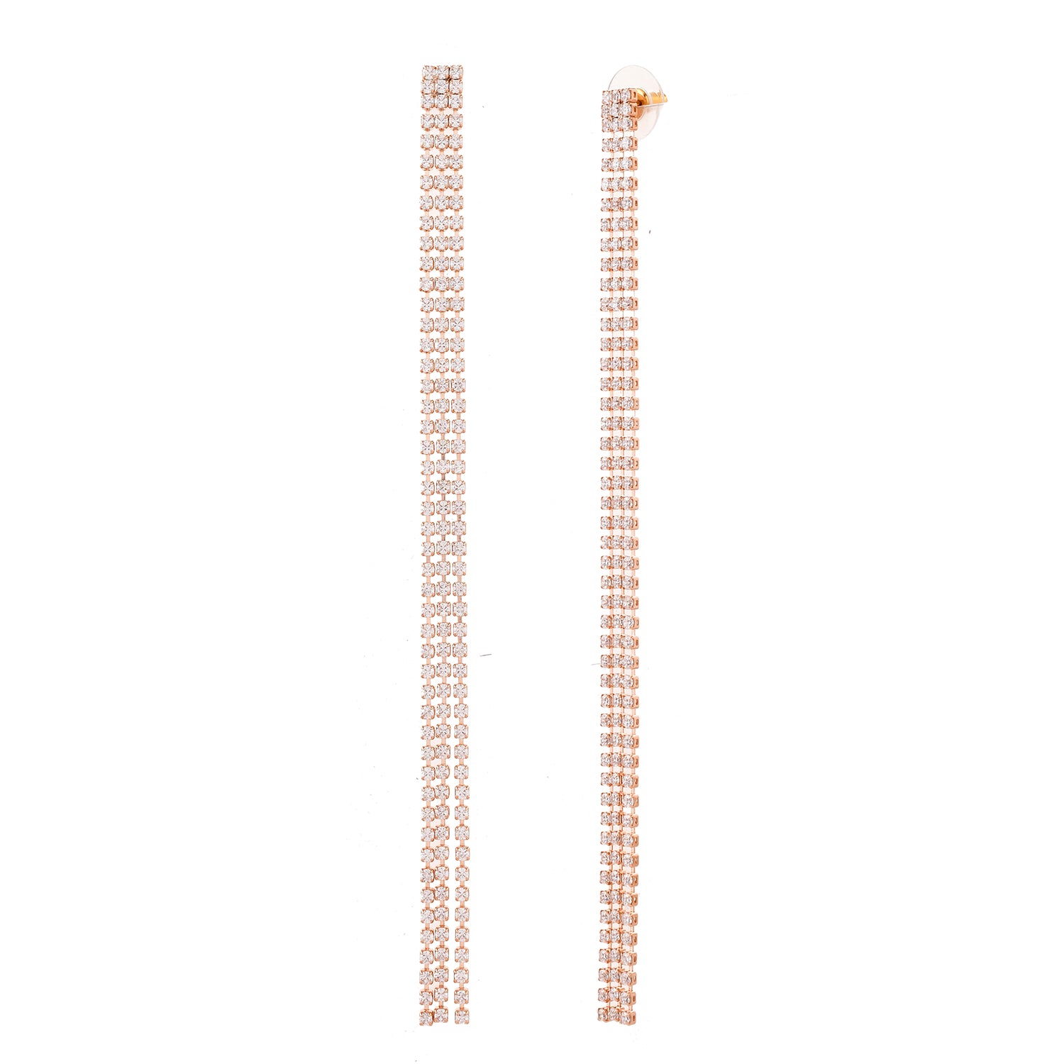 Timeless Sparkle Twinkling Cascade Rose Gold Long Rhinestone Dangler Earrings