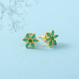 Tiny Floral Green CZ Adorned Stud Earrings