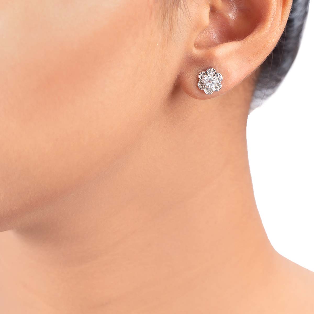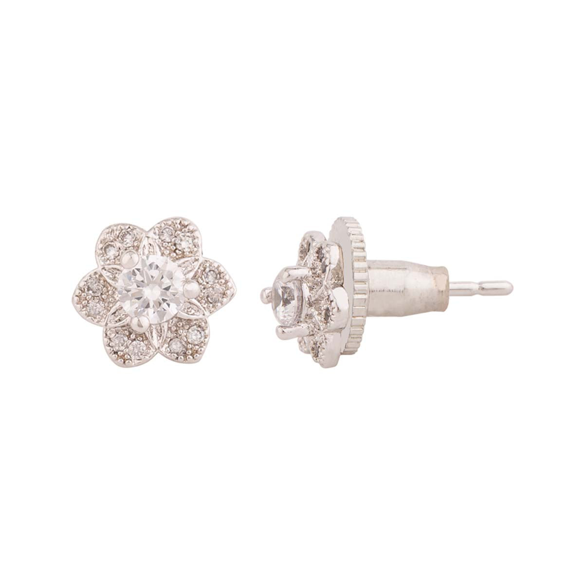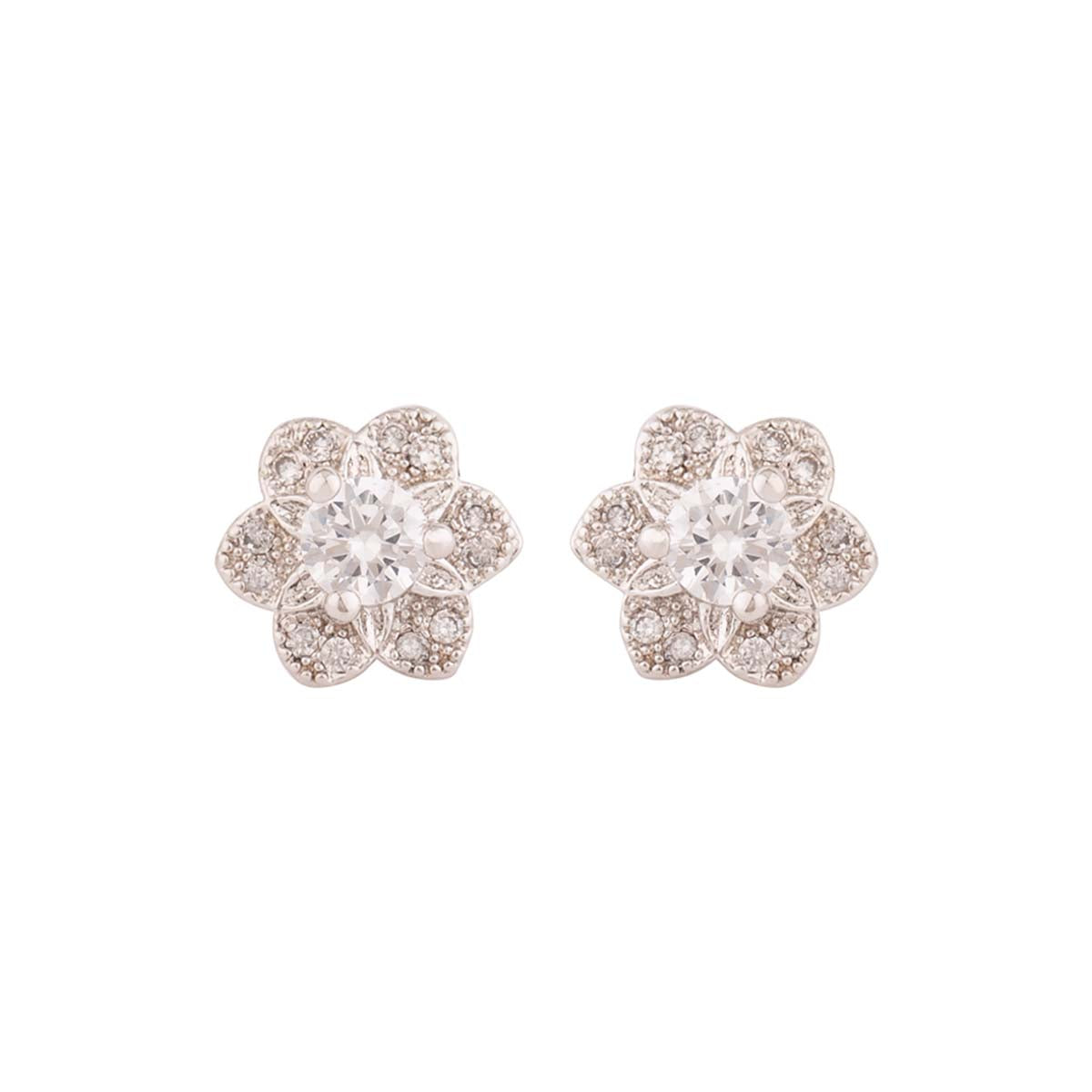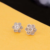 Tiny floral stud style earrings made from brass. Gems embellished and silver plated. Good for casual wear.