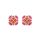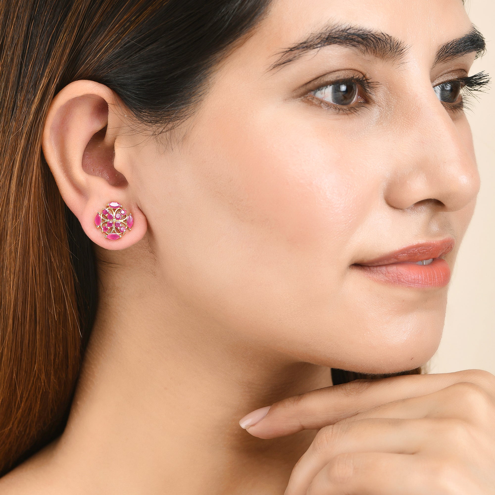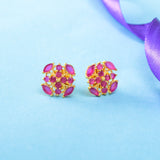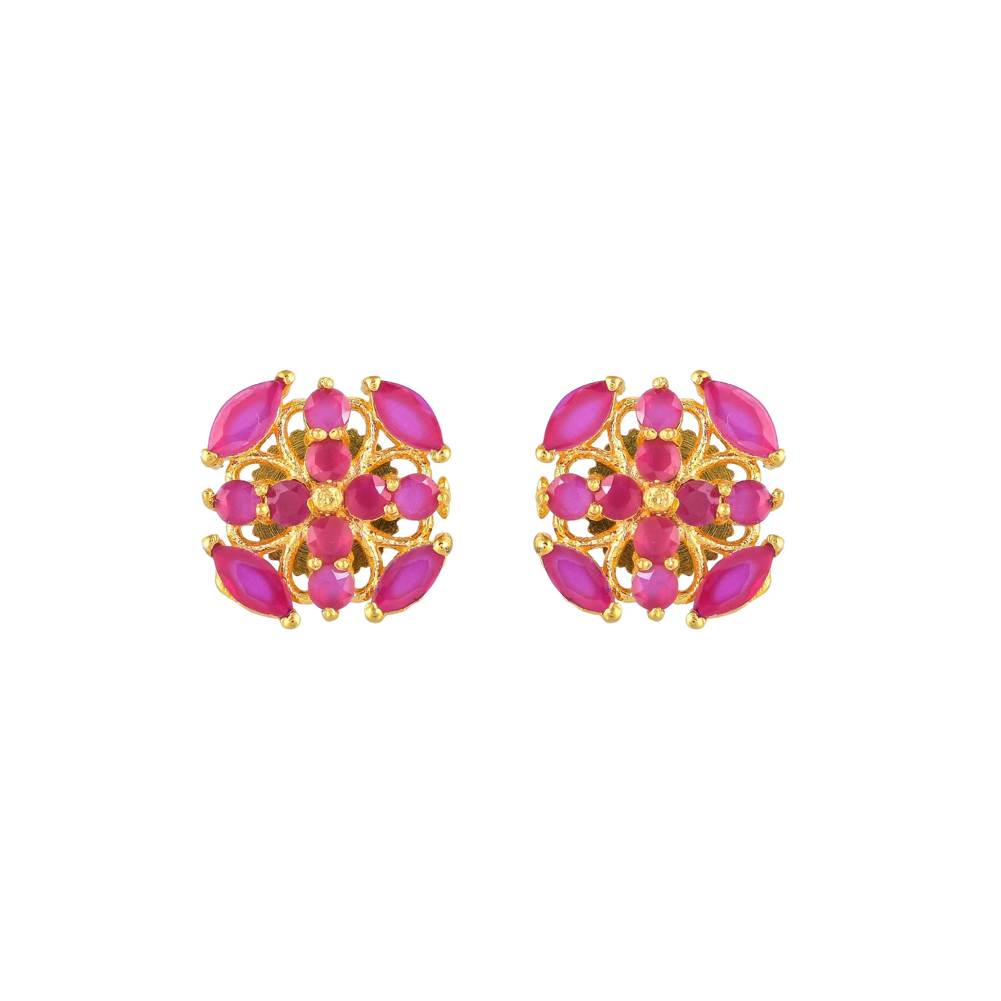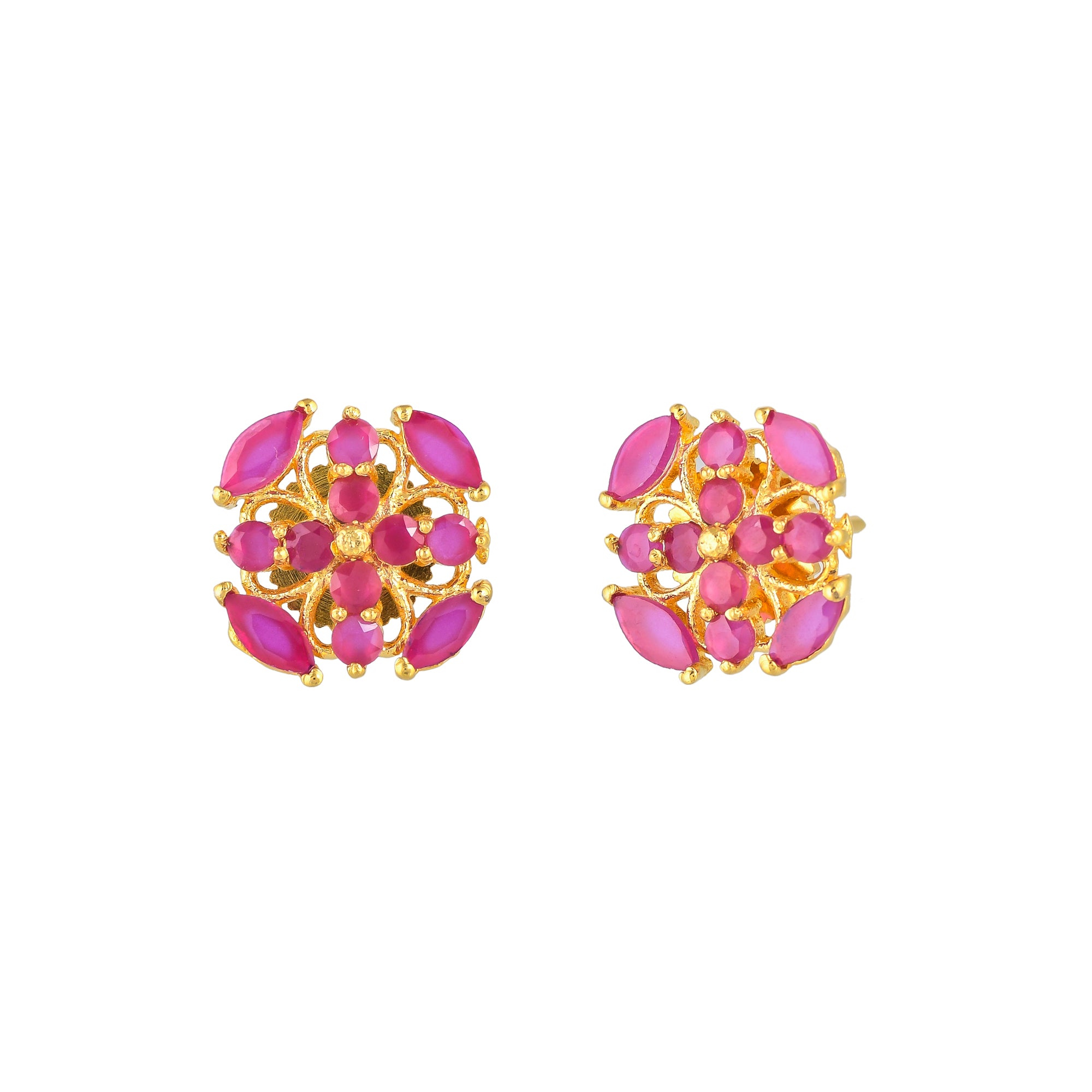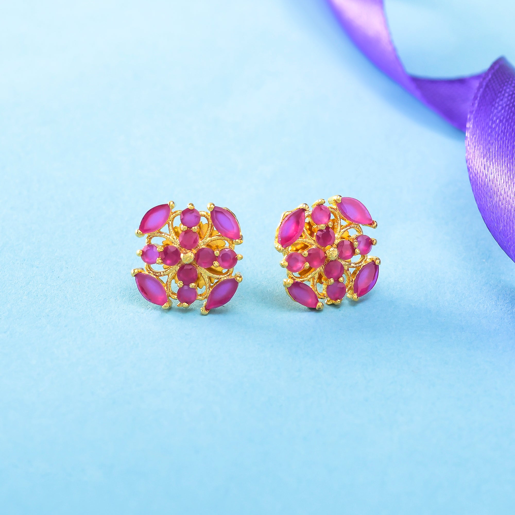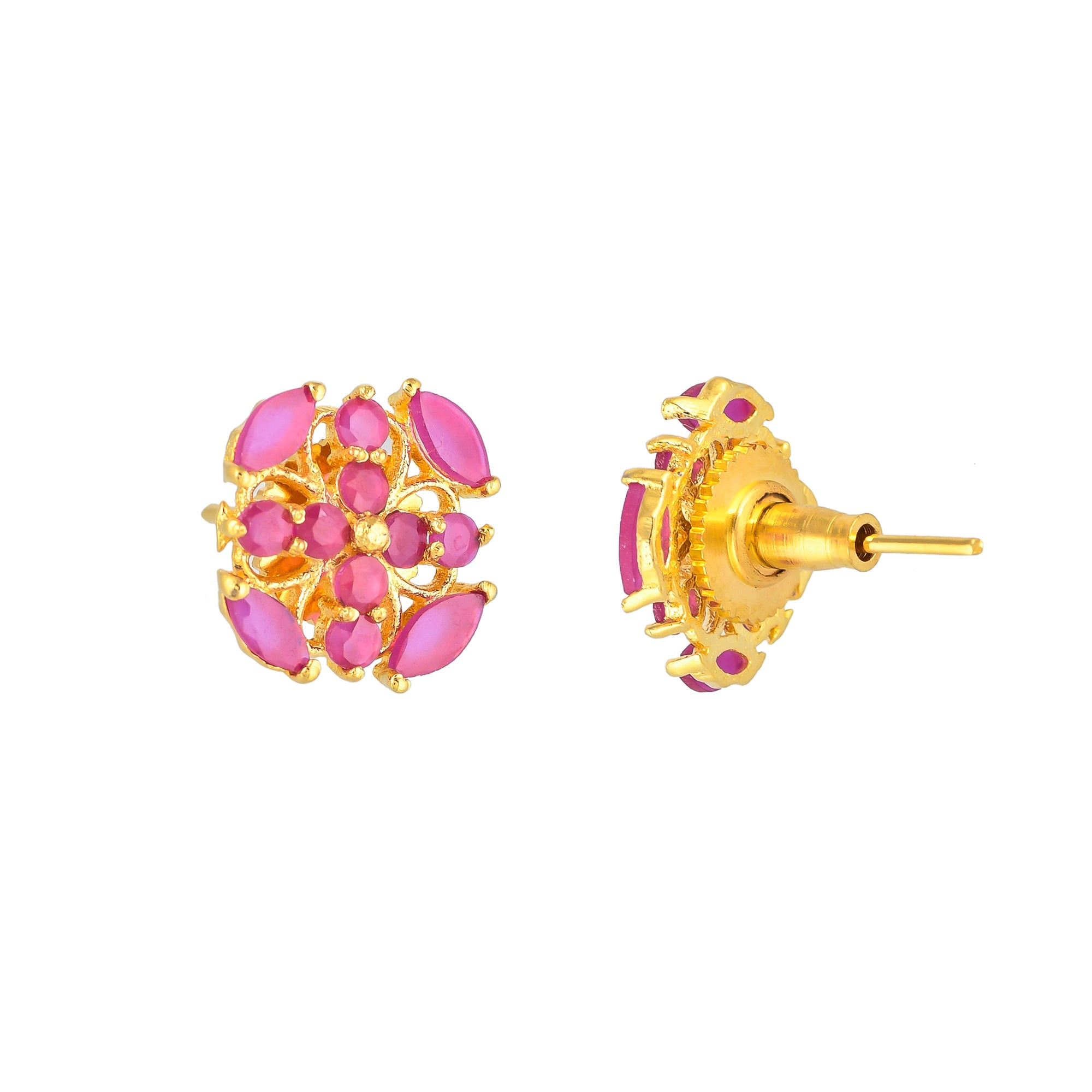 Tiny stud earrings with pink cubic zircon gemstones. Made from brass and gold plated. Pair with casual looks.