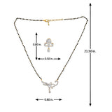 This mangalsutra set is designed to keep Indian married women in mind who want variety in black beads for their everyday fashion. Crafted with high-quality CZ stones and plating to a fine finish. Style it on your work outfit or tunics to keep it simple and elegant.