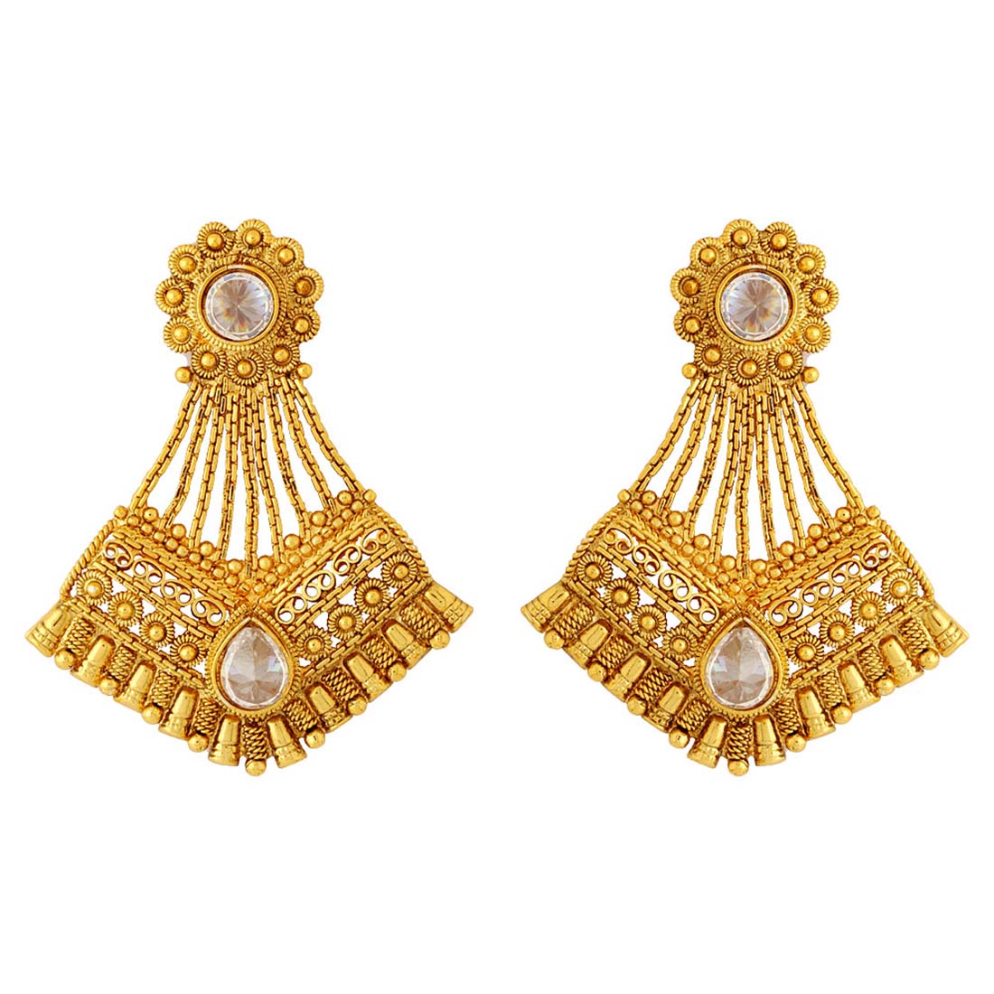 Add a touch of antique charm to your jewelry collection with these alluring traditional earrings. Set in a beautiful design, this pair boasts intricate details with shiny stones embellishment and flawless craftsmanship. These will compliment all your ethnic looks.