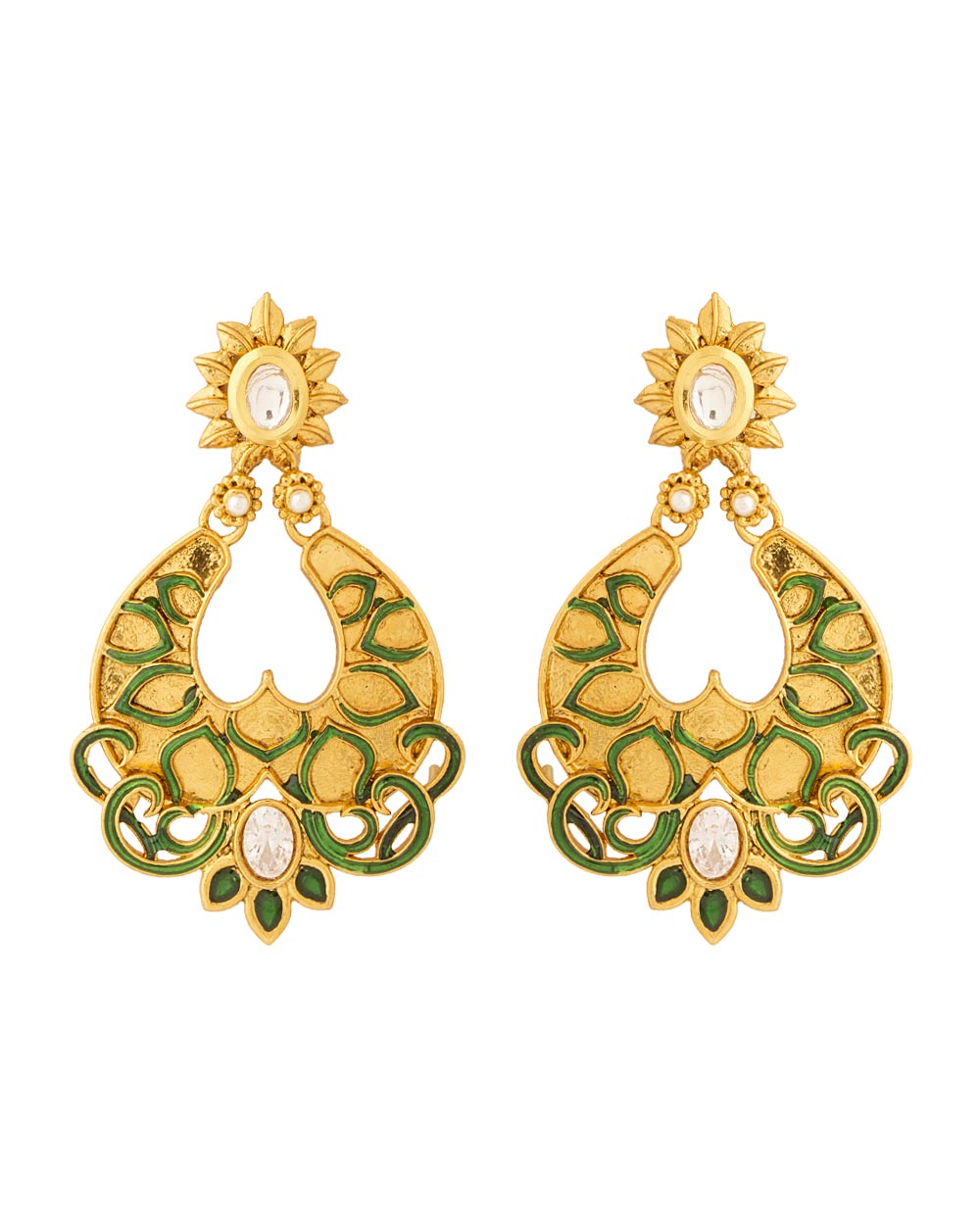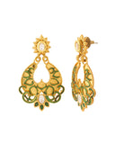 Here we present the designer dangler earrings from Voylla collection which exhibits unmatched green enamel craftsmanship and excellent finish in gold plated material. It will surely compliment your traditional wear.