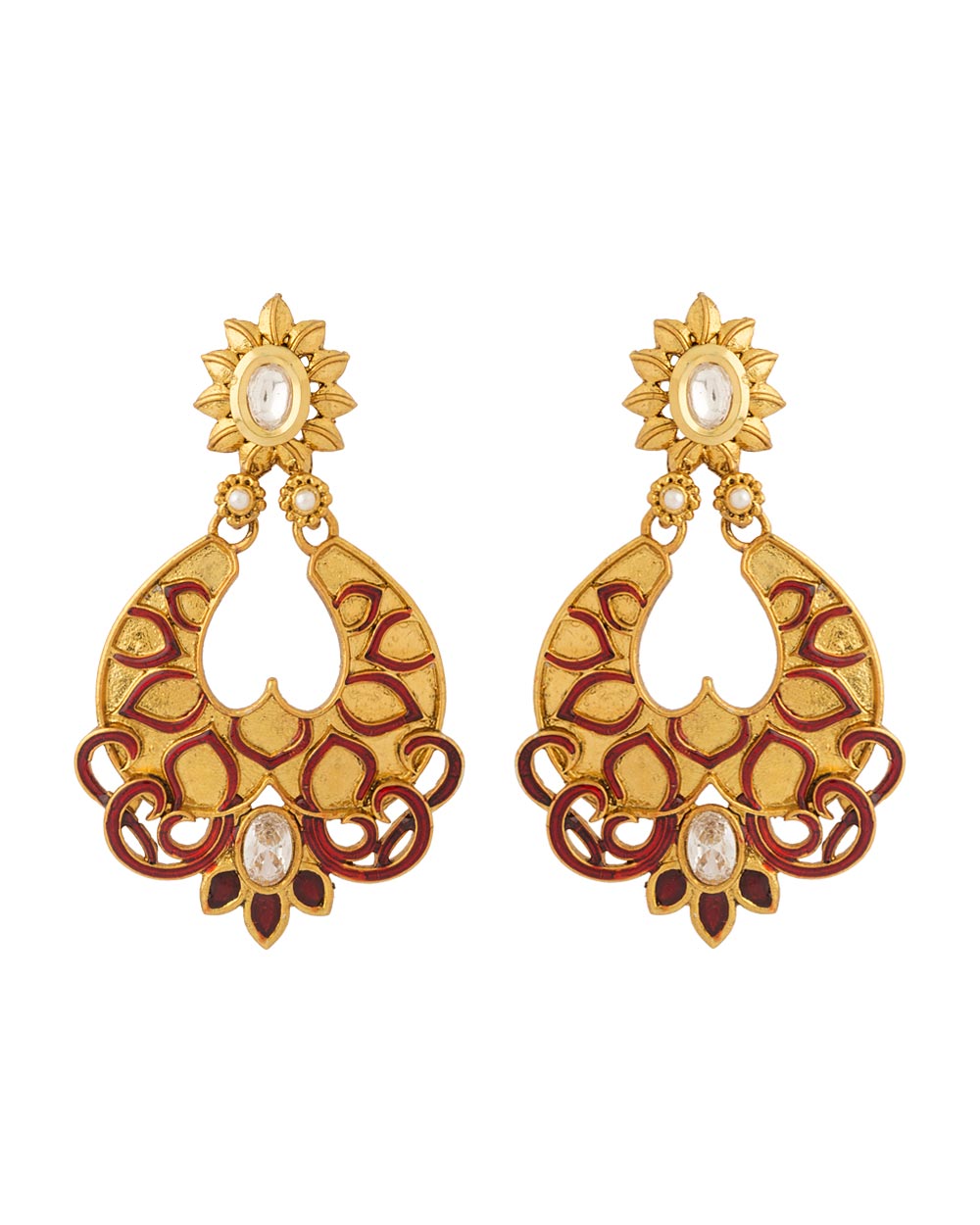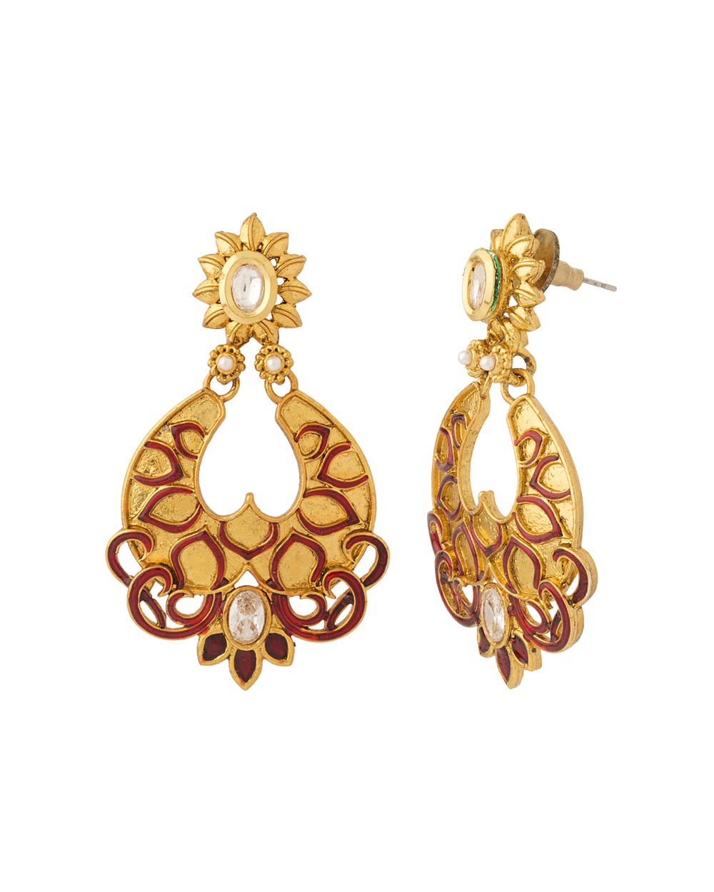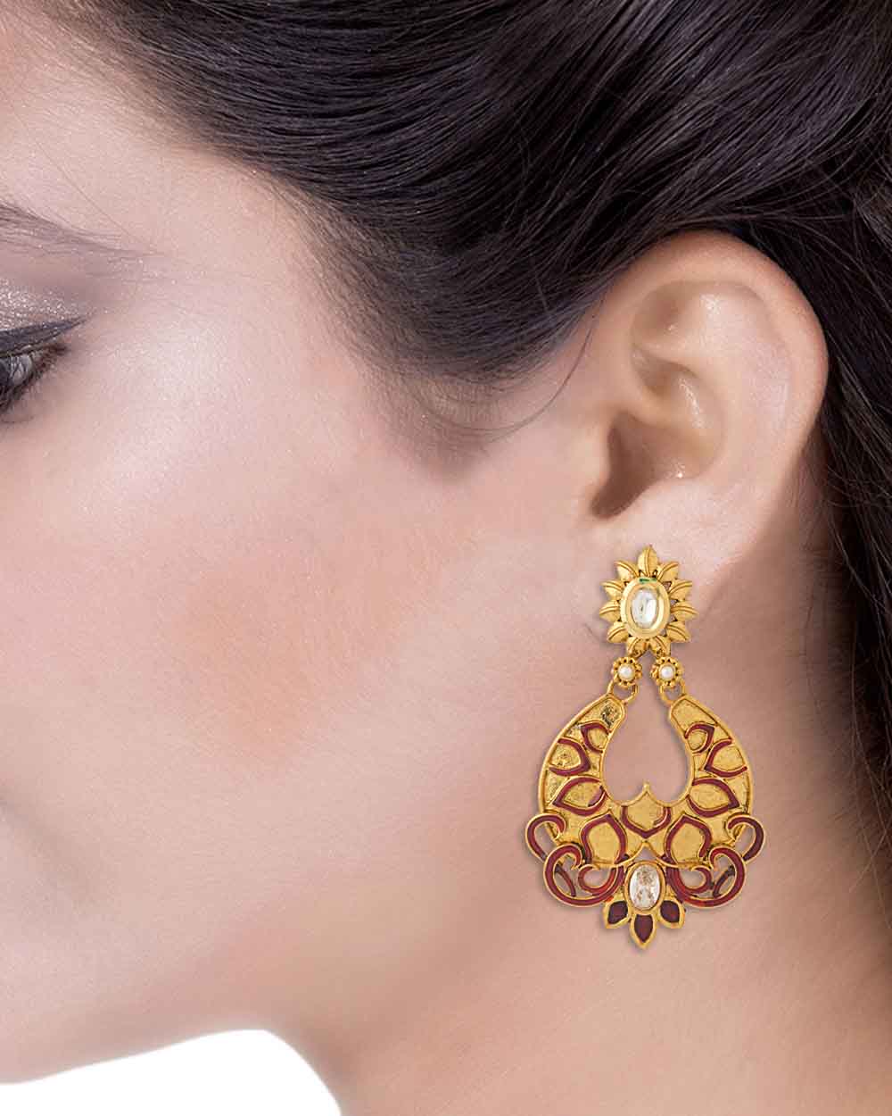Showcase your earlobes in designer dangled pair of earrings in enamel design from Voylla. Club this pair with your ethnic or Indo-western attire. Buy this pair of earrings from Voylla now.