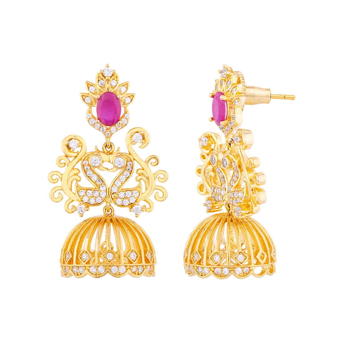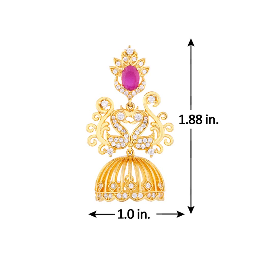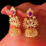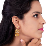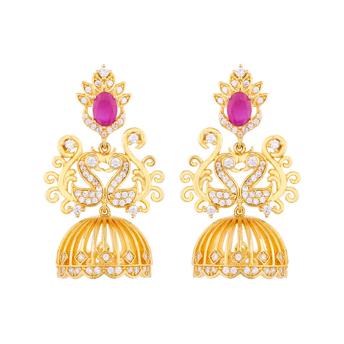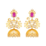 Brass jhumka drop earrings. Yellow gold plated and lightly embellished. Wear with casual Indian attire. This piece of jewelry comes with the Voylla assurance of quality and durability.