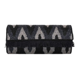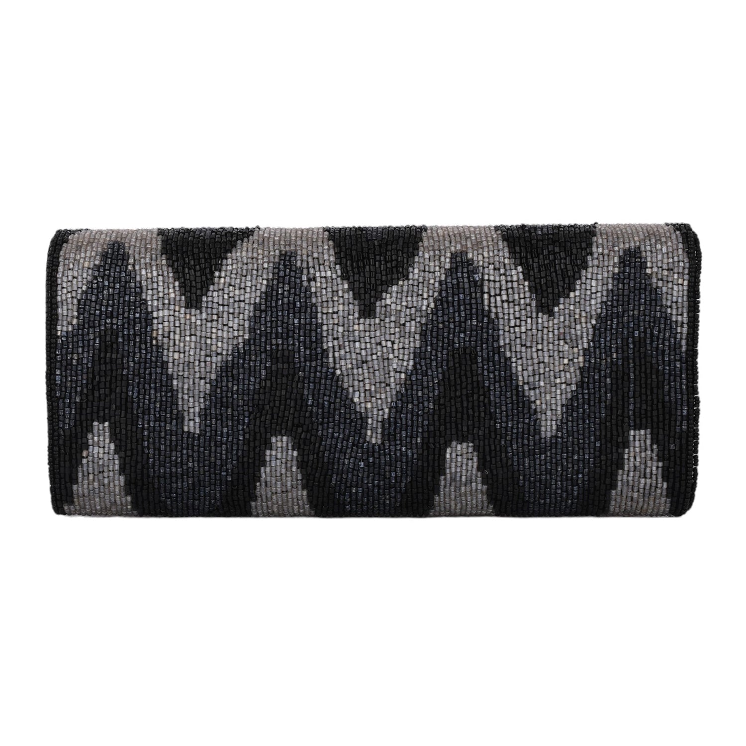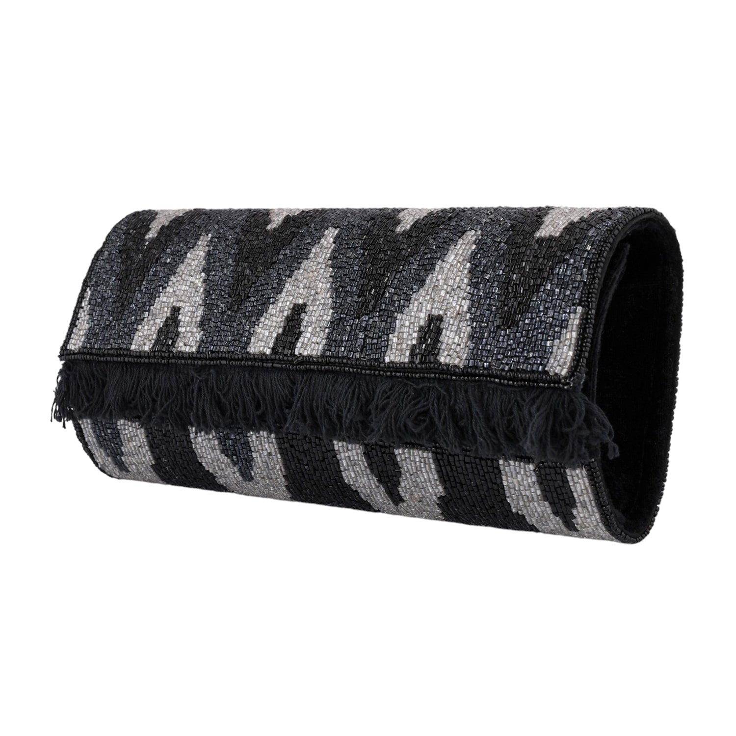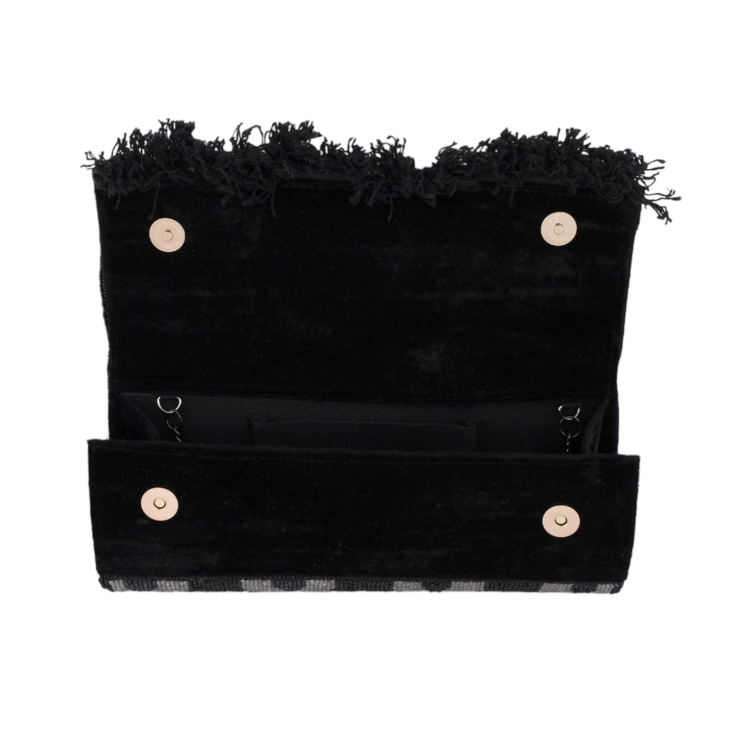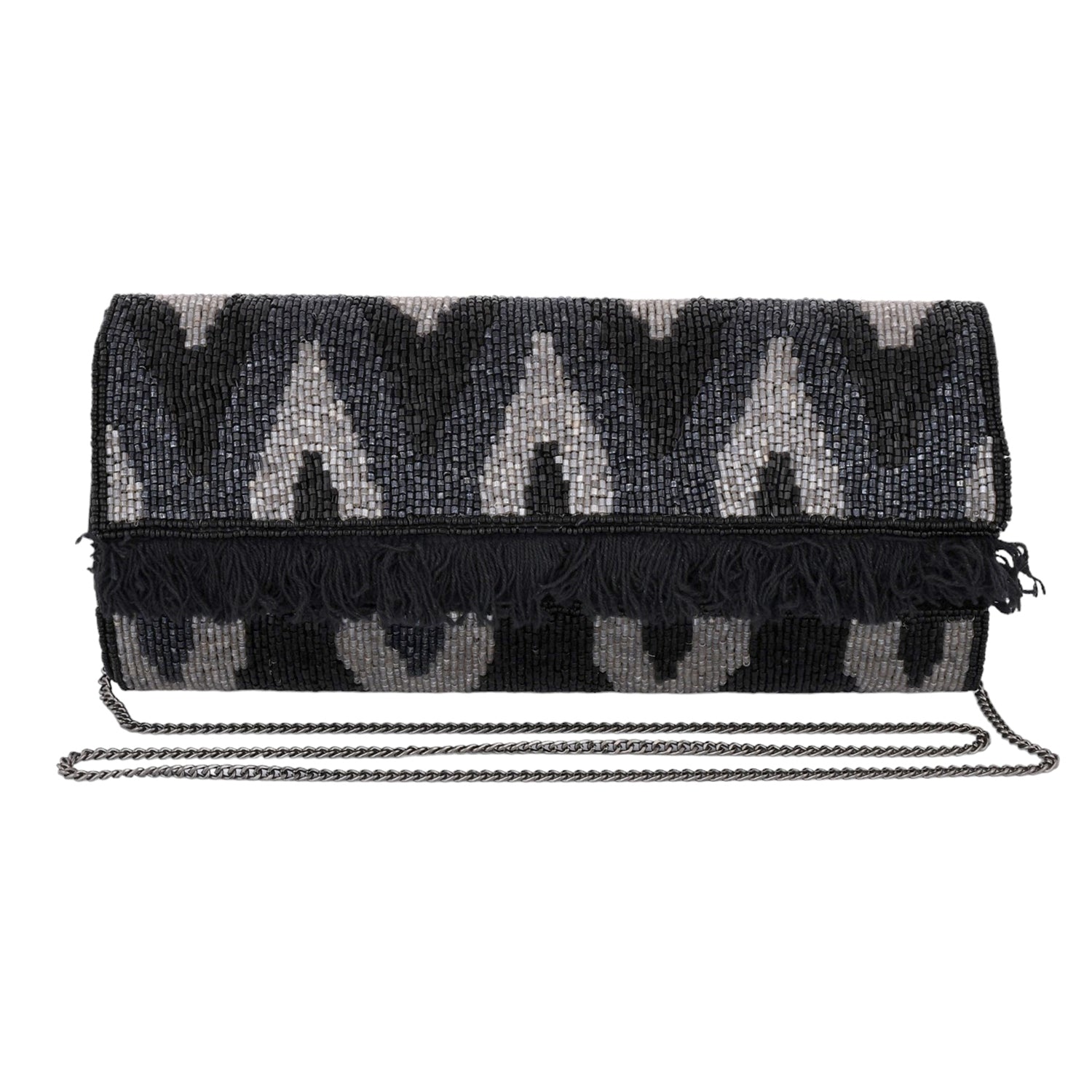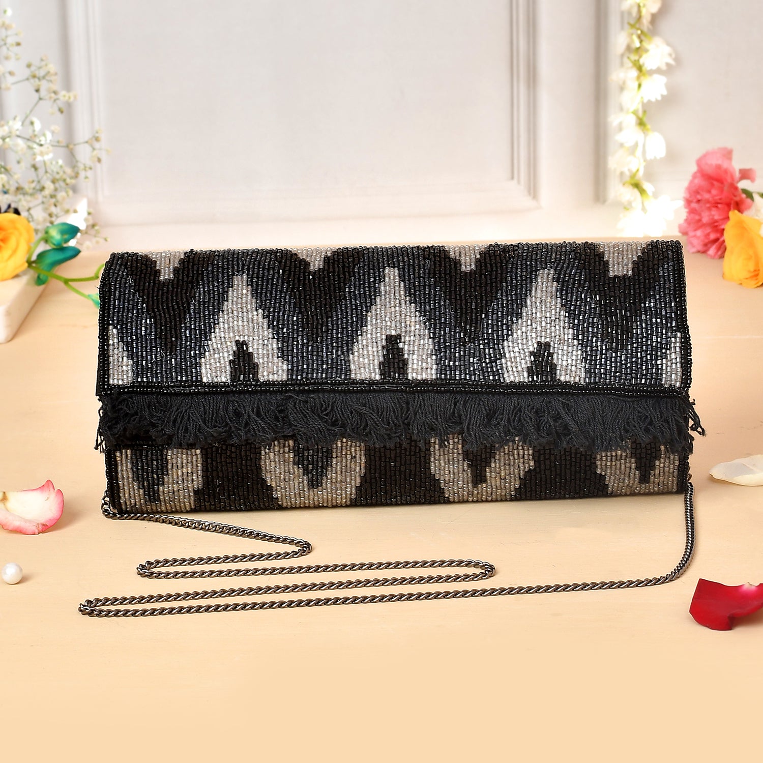 This clutch is adorned with intricate black beads that add a touch of sophistication to your look. The sleek design and timeless appeal make it a perfect accessory for any festive occasion. The detachable sling offers versatility, allowing you to carry it as a clutch or sling it over your shoulder with ease.