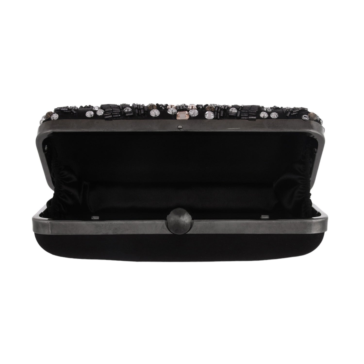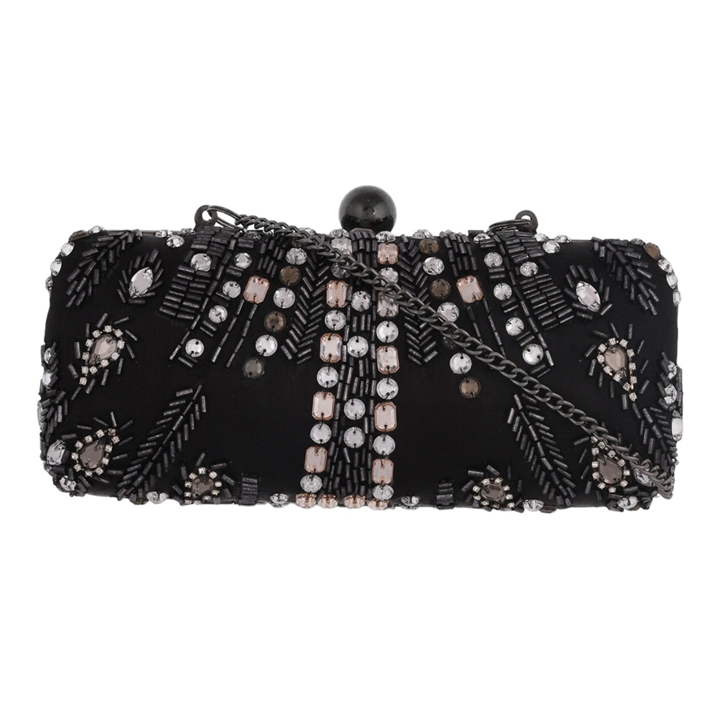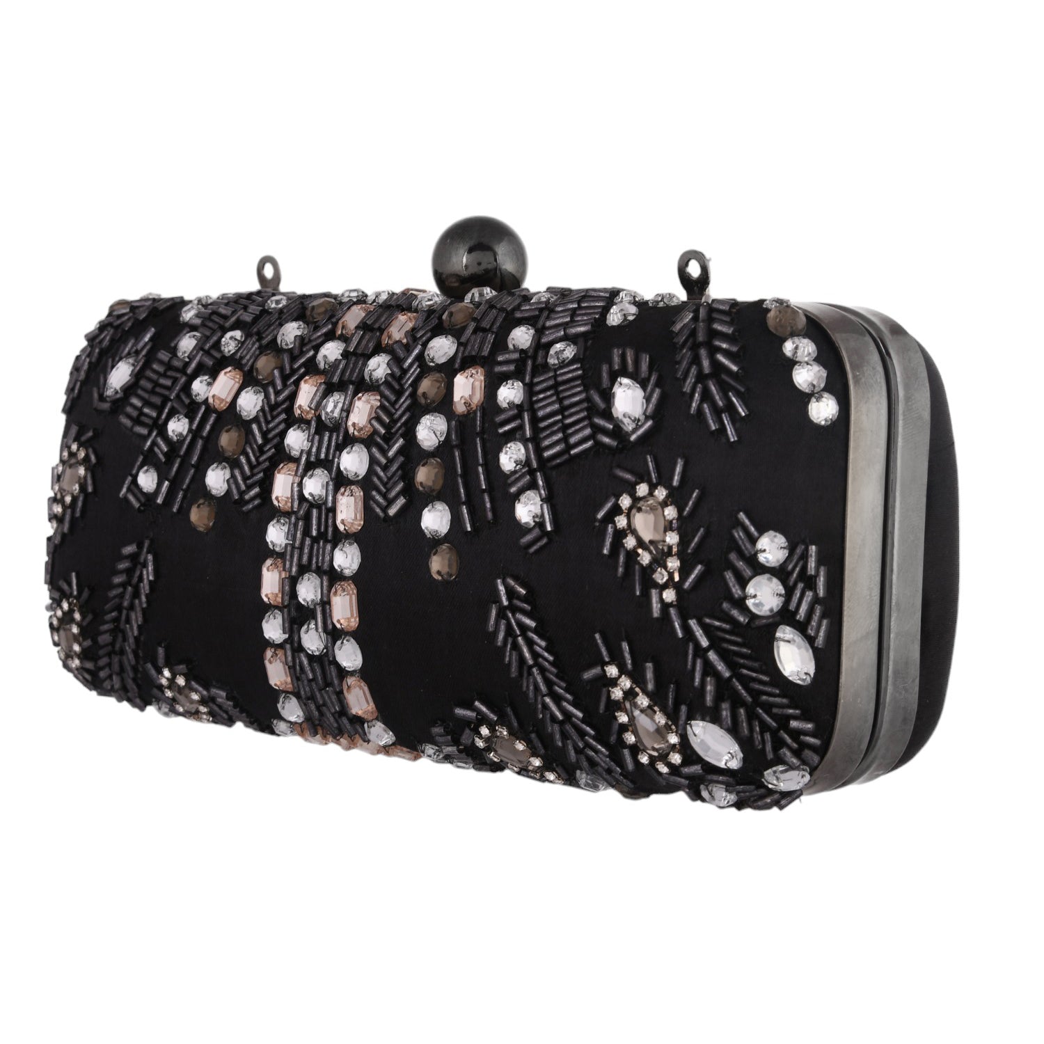 Stones and sequins adorned clutch in a lovely black colour. Made from durable and high quality fabric, the clutch is versatile and spacious.