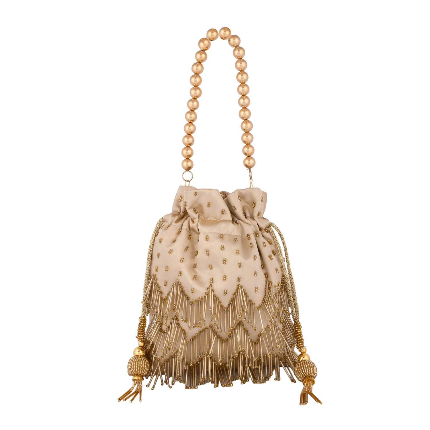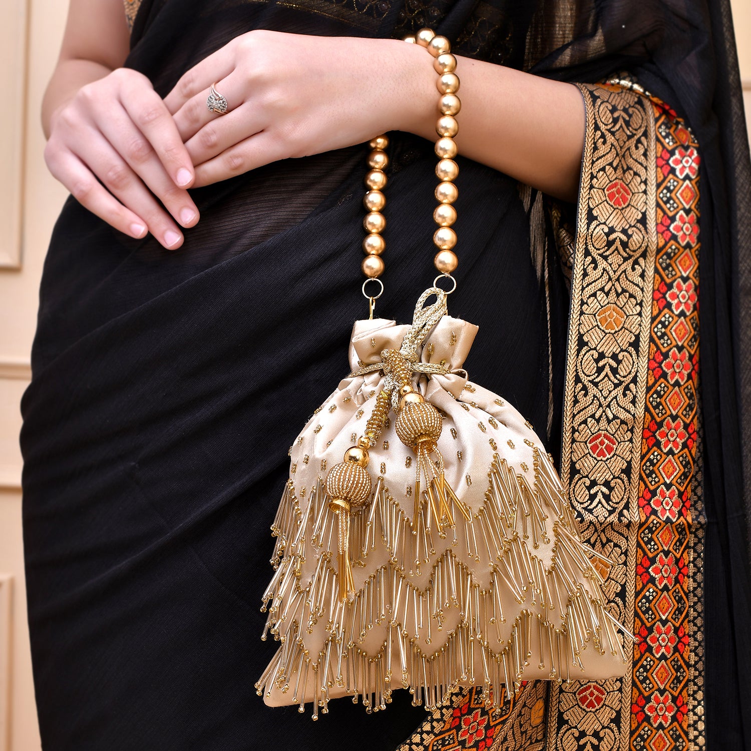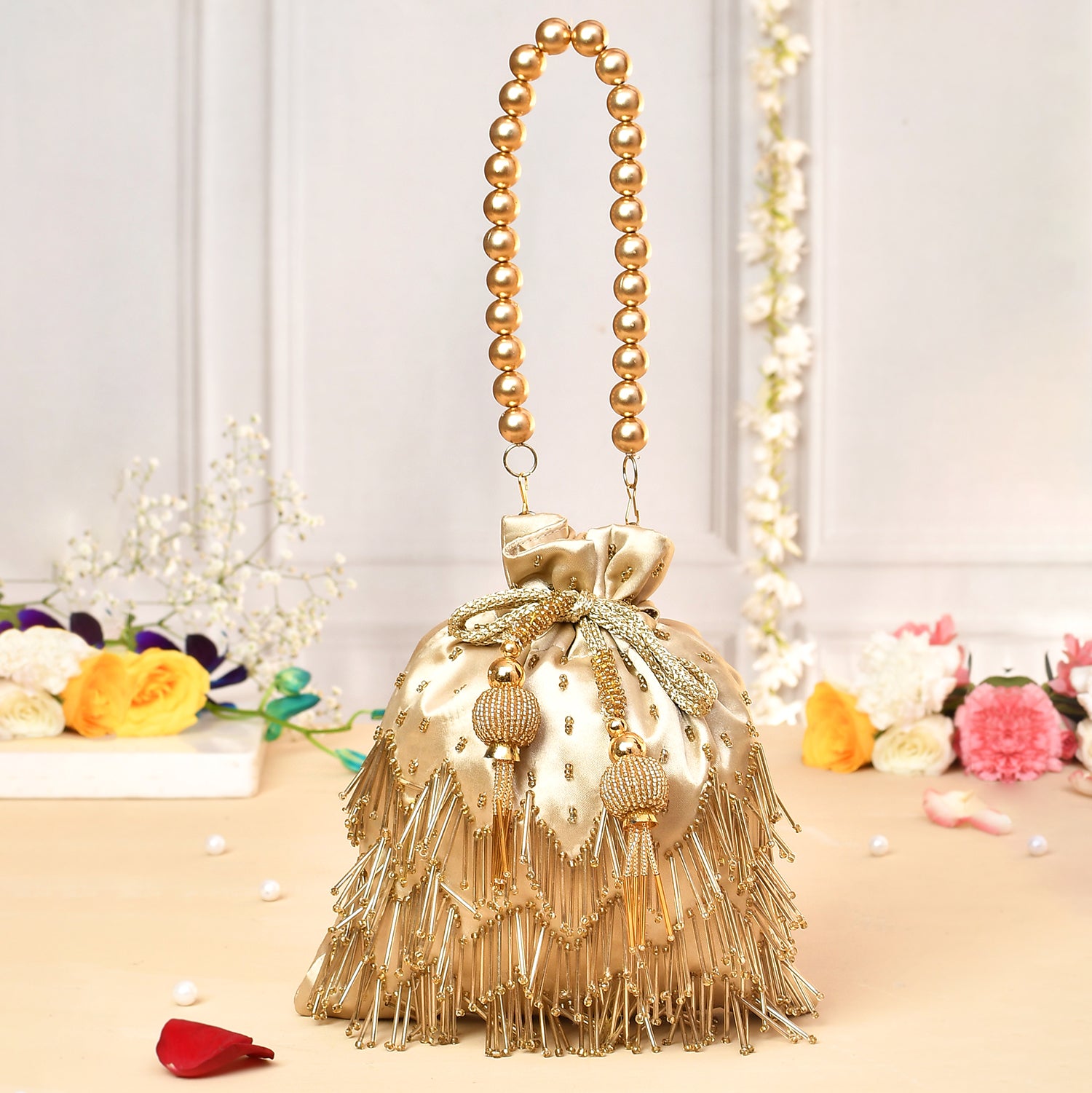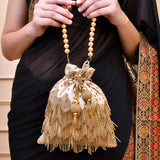 Trendy Bags Golden Beads Embellished Tasseled Potli