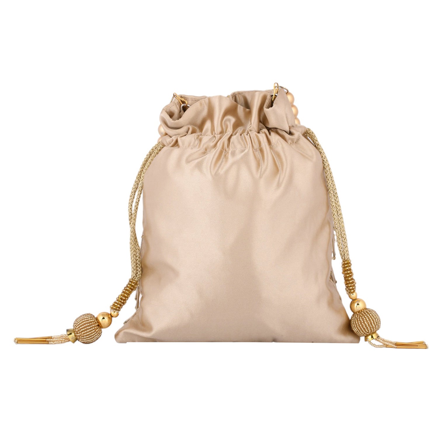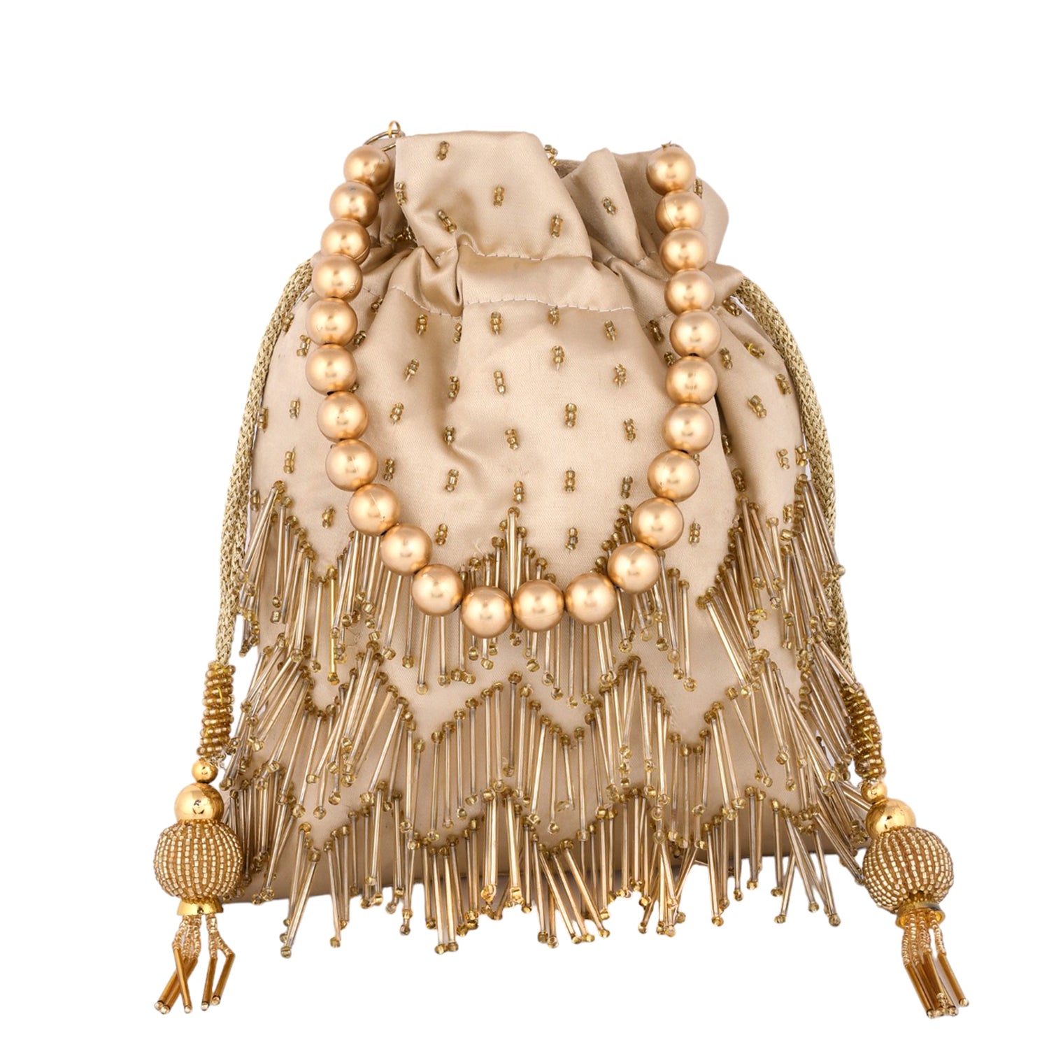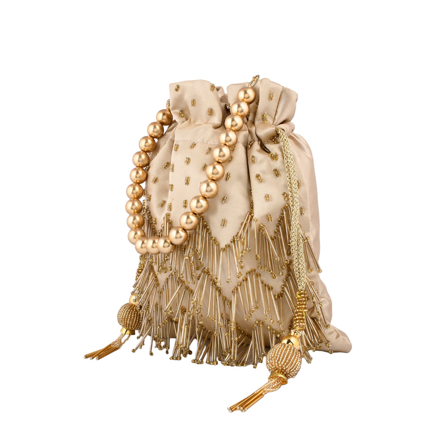 Trendy Bags Golden Beads Embellished Tasseled Potli