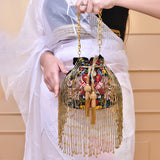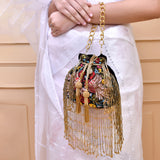 Adorned with eye-catching multicolored sequins and chic tassels, this potli is a perfect blend of modern style and traditional charm. The linked short sling adds a touch of convenience and elegance, making it easy to carry your essentials while maintaining a fashionable look.
