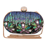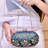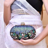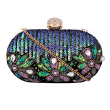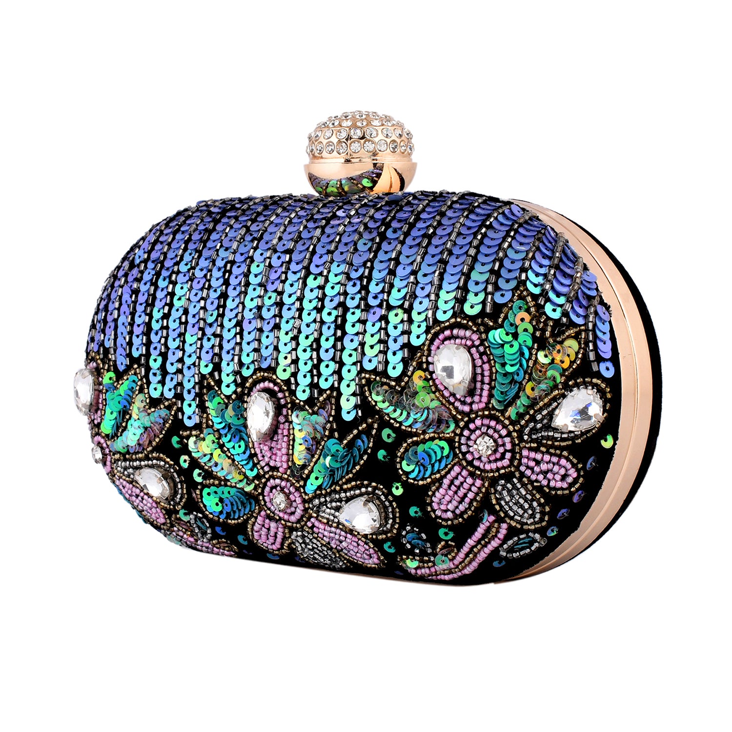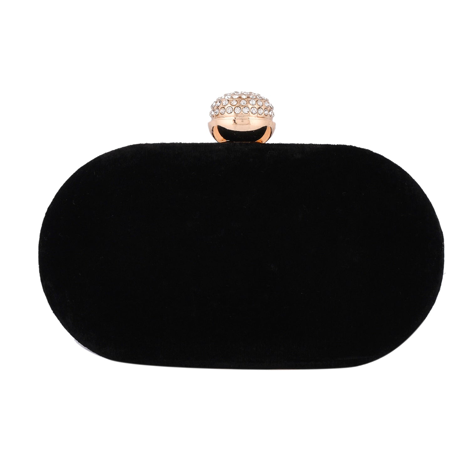 Trendy Bags Multicolored Stones Embellished Black Clutch