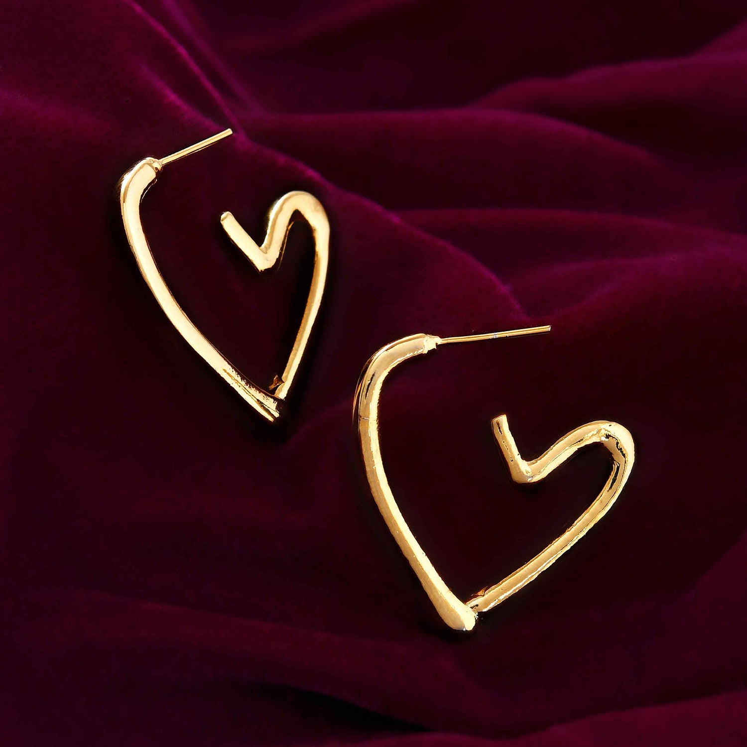 Introducing the Trendy Darling Hearts Hoop Earrings, a stunning addition to any jewelry collection. Crafted from high-quality brass and plated with luxurious gold, these earrings feature a unique heart-shaped design that exudes elegance and charm. Perfect for any occasion, from daily wear to festive celebrations, these versatile earrings can be styled effortlessly with both western and traditional outfits. The rich gold color adds a touch of sophistication, making them an ideal gift for women on special occasions such as Valentine's Day, Diwali, Rakshabandhan, Christmas, and New Year. Whether you're looking for a thoughtful gift for your girlfriend, wife, mother, or sister, these earrings are sure to impress. Elevate your accessory game with these trendy earrings that are perfect for parties, weddings, vacations, and more.