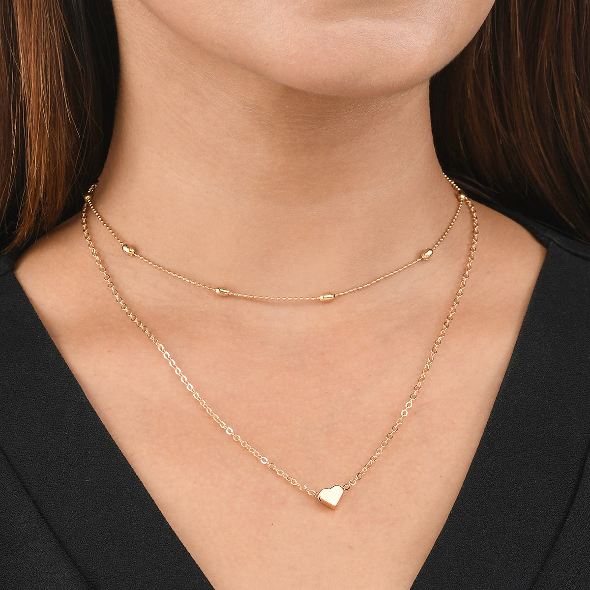 Trendy Essentials Tiny Heart Lightly Embellished Brass Gold Plated Necklace