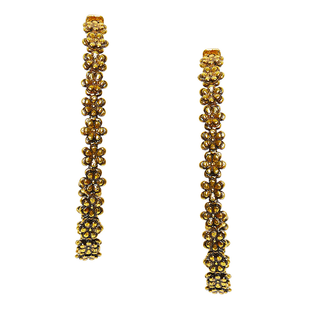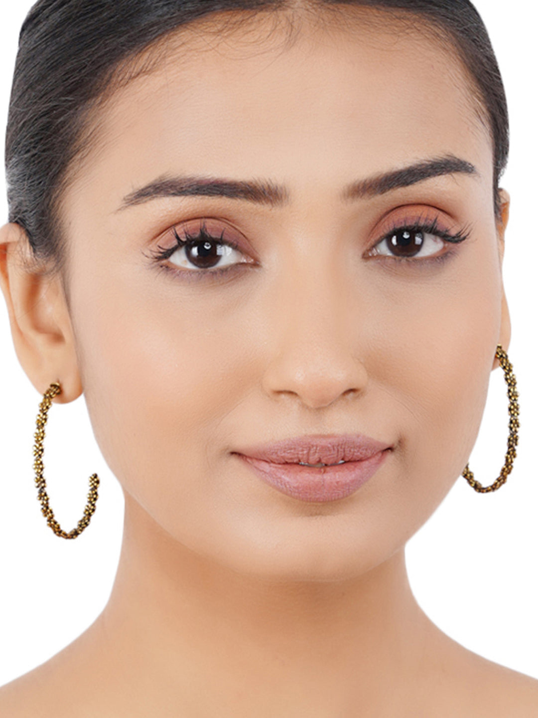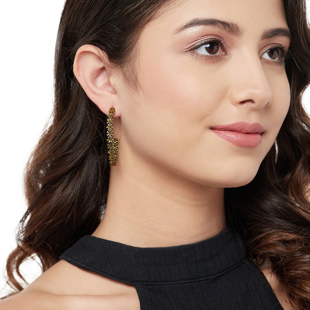 Designed in net style, the brass earrings have been given a yellow gold plating with different colour combination. Pair with casual looks.A unique design made for beautiful ladies who manage everything from office to home Grab it for it is a must for every occasion and can be teamed up with office dress,enhances its overall beauty for both western and Indian outfit.