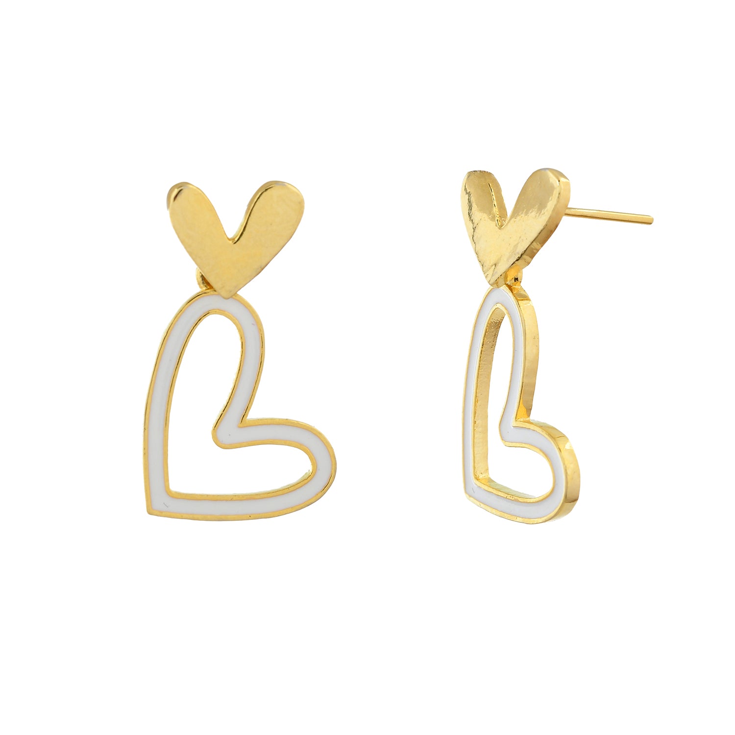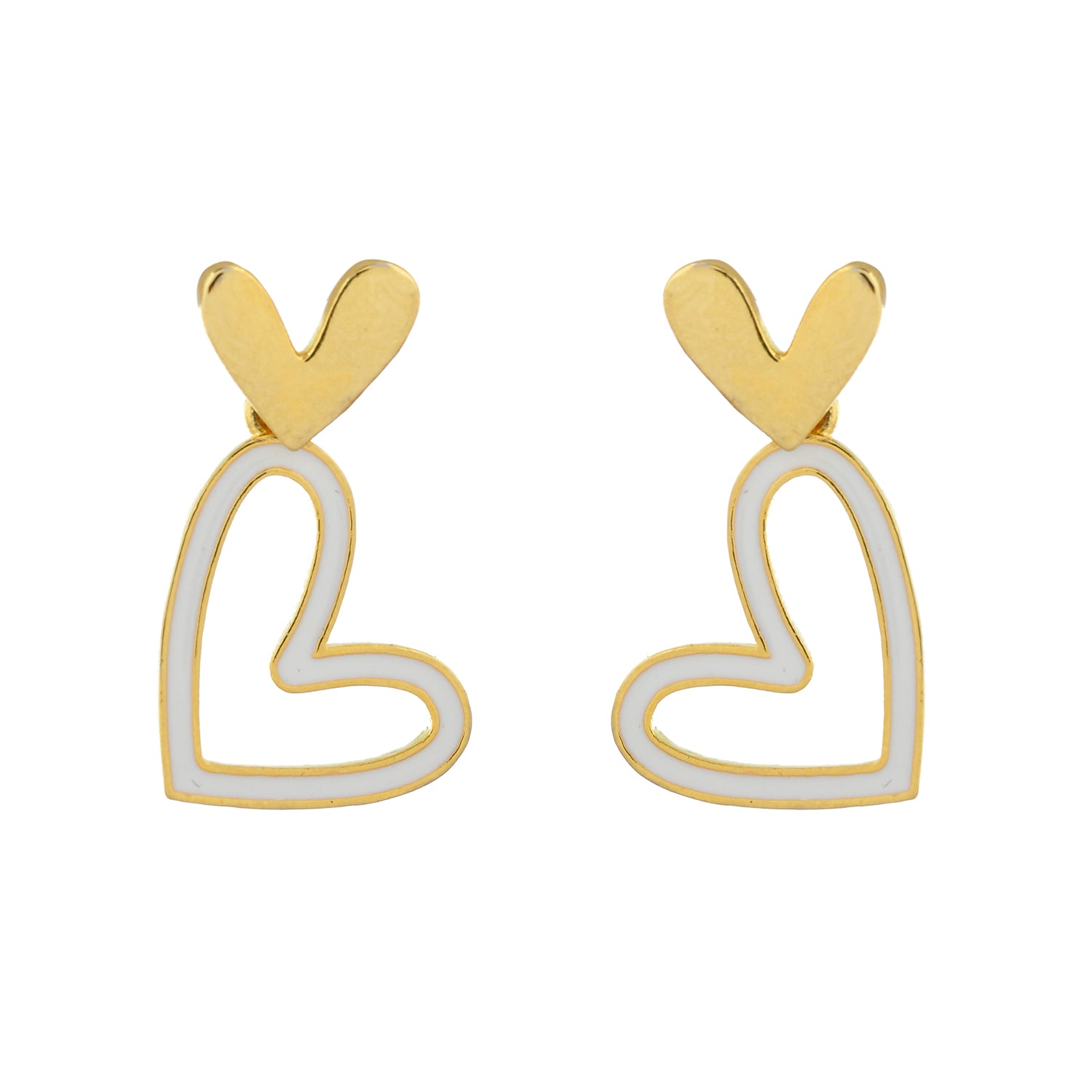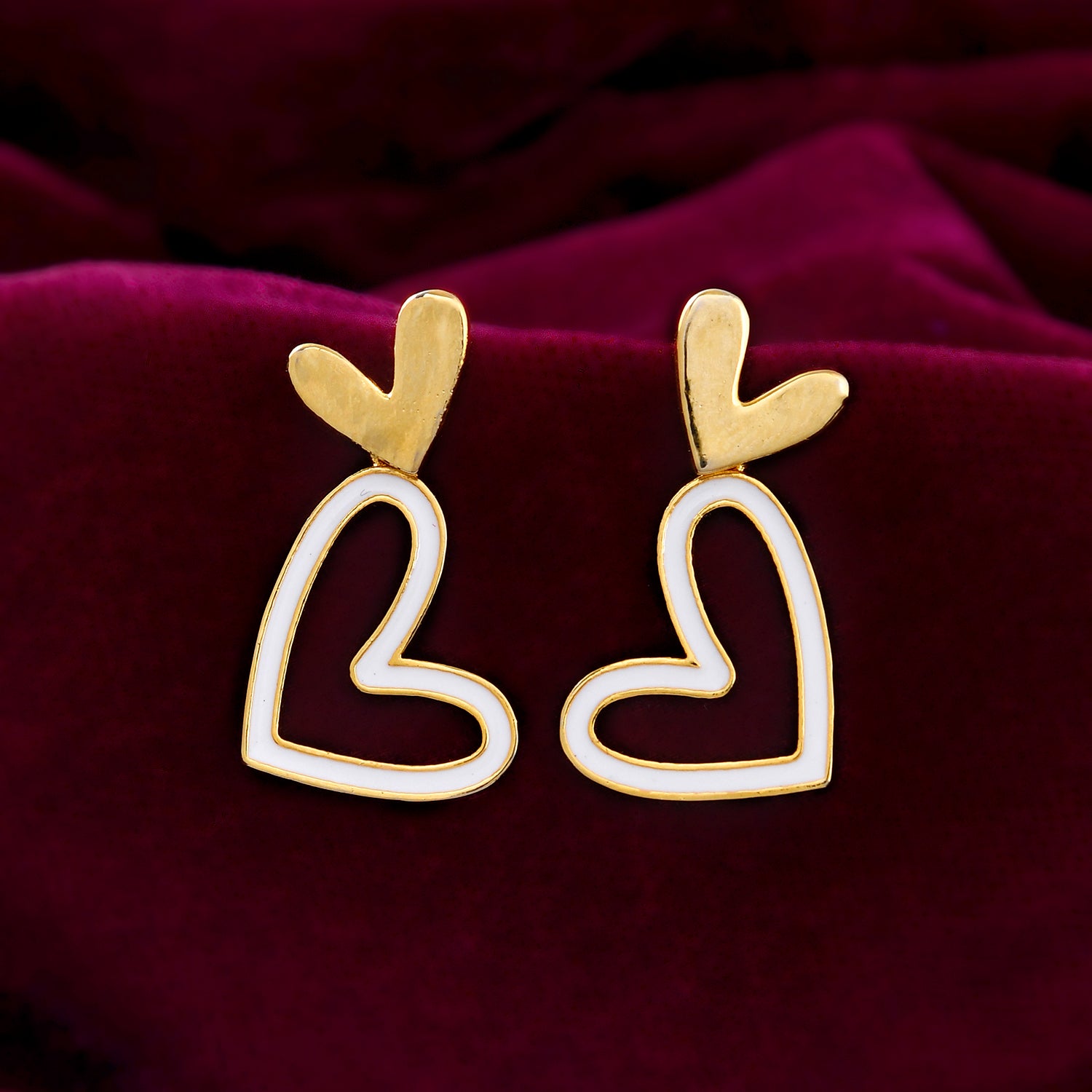 Introducing the Trendy Love Drops Heart Earrings, a standout piece for any jewelry collection. Crafted from high-quality brass and plated in luxurious gold, these earrings feature an open heart design that balances elegance and playfulness. Perfect for various occasions, from daily wear to festive celebrations, the rich gold color adds sophistication while the lightweight construction ensures all-day comfort. Ideal as a gift for women, these earrings make a thoughtful present for Valentine's Day, Diwali, Rakshabandhan, Christmas, and more. They are an excellent choice for a girlfriend, wife, mother, or sister. Pair them with a cocktail dress for a night out, or add a touch of glamour to your everyday look. The Trendy Love Drops Heart Earrings are a versatile accessory that will elevate any outfit.