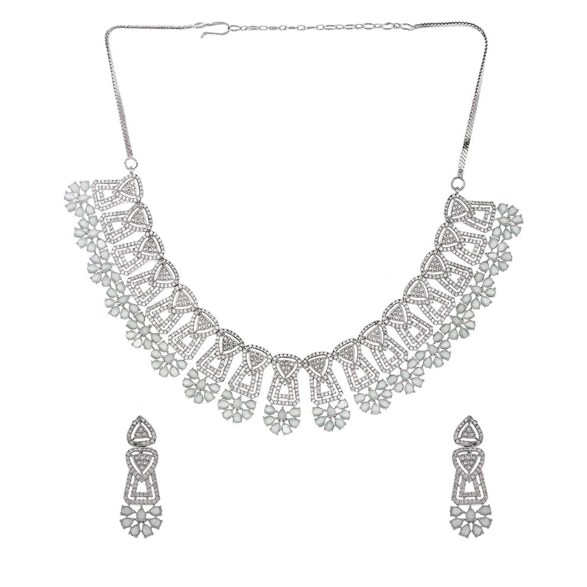 Triangle Cut CZ Adorned Silver Plated Brass Jewellery Set