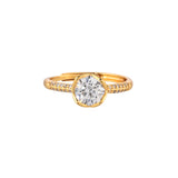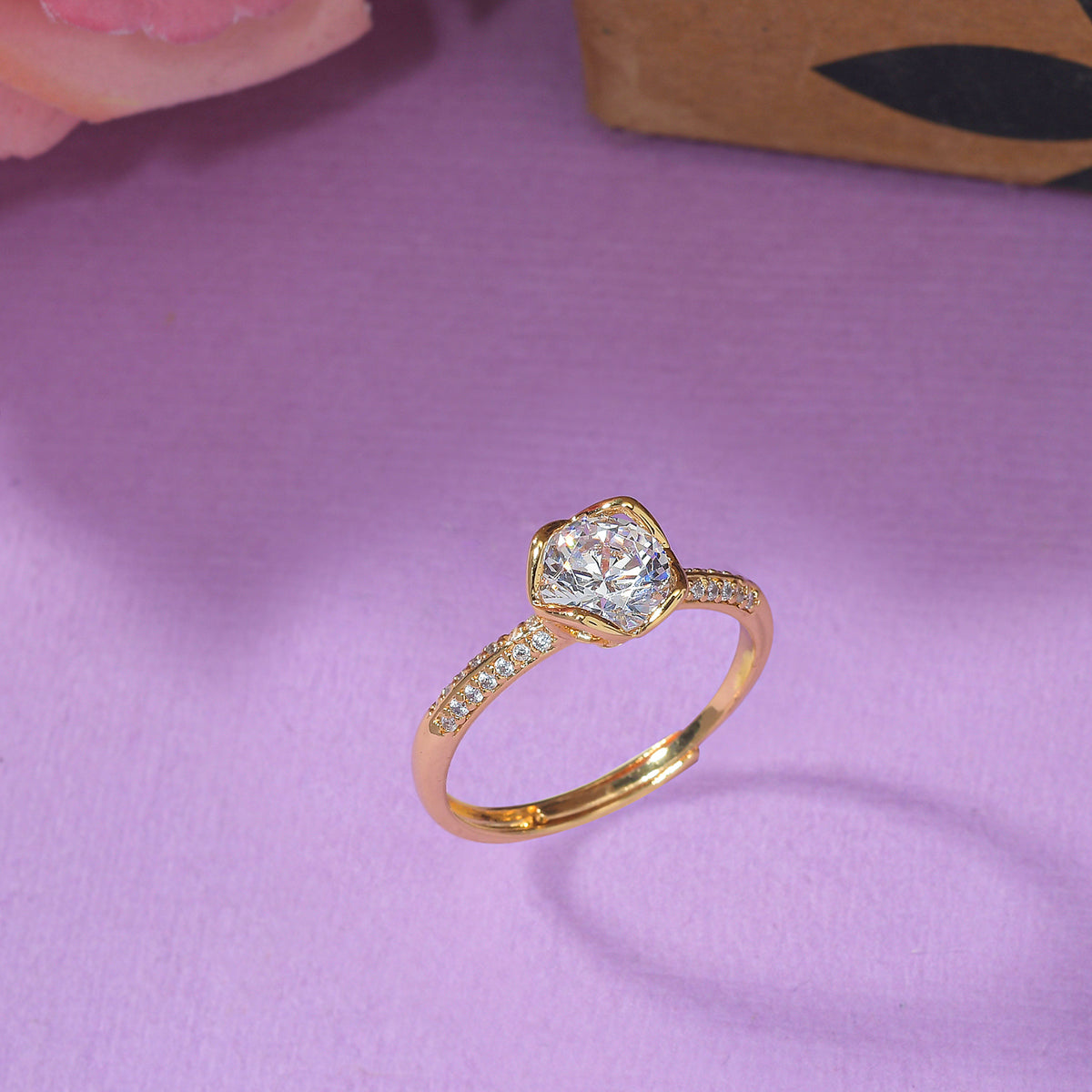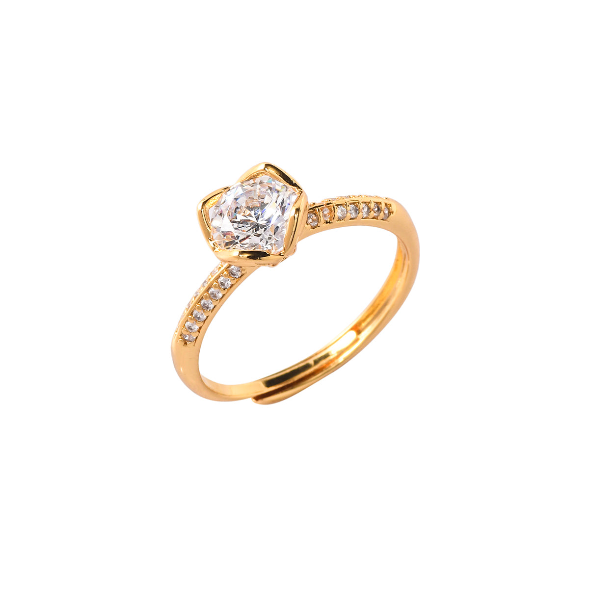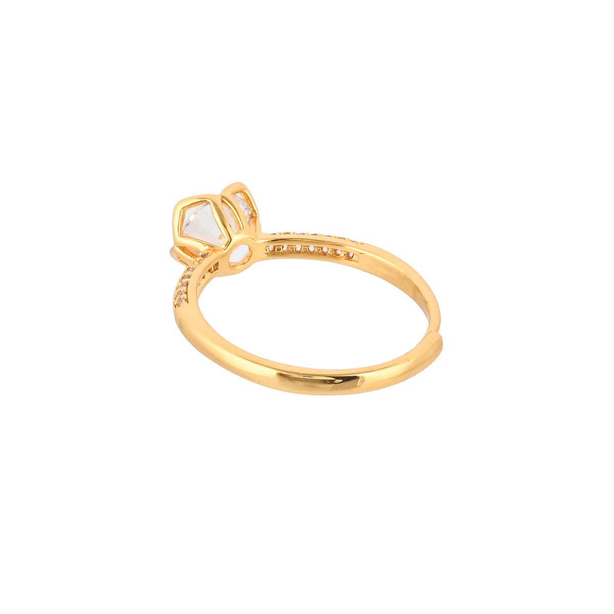 Triangle Motif Round Cut Zircon Gold Plated Brass Ring