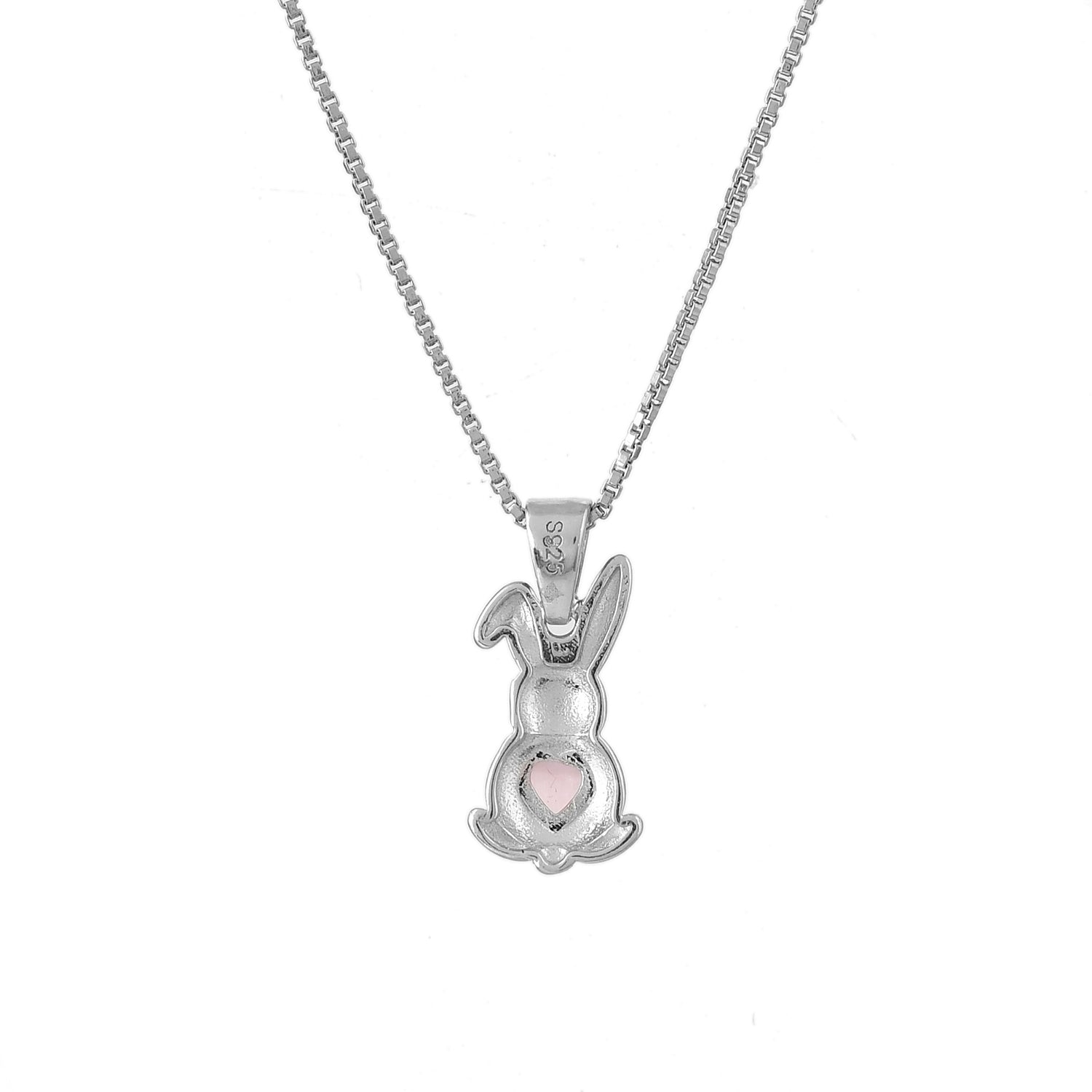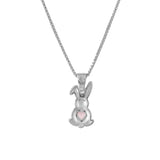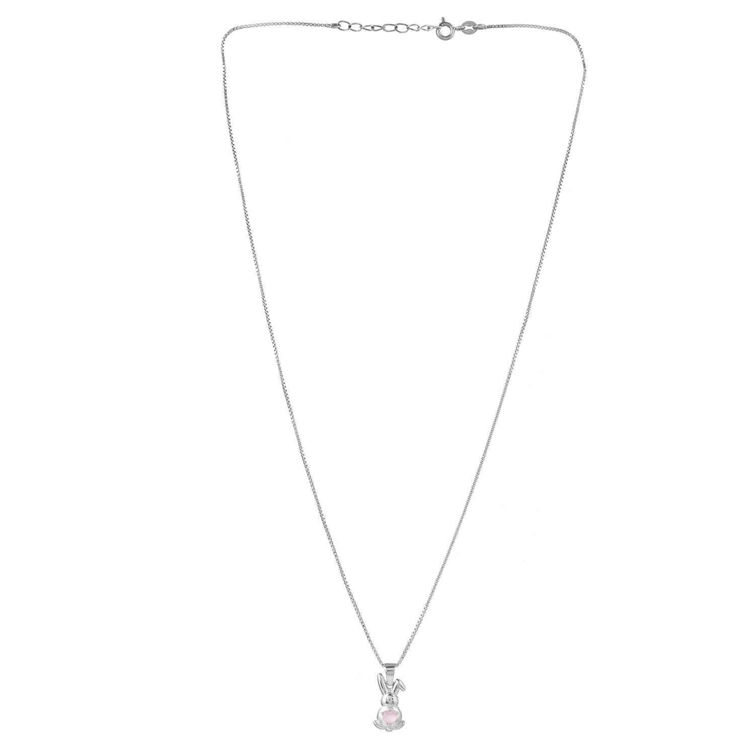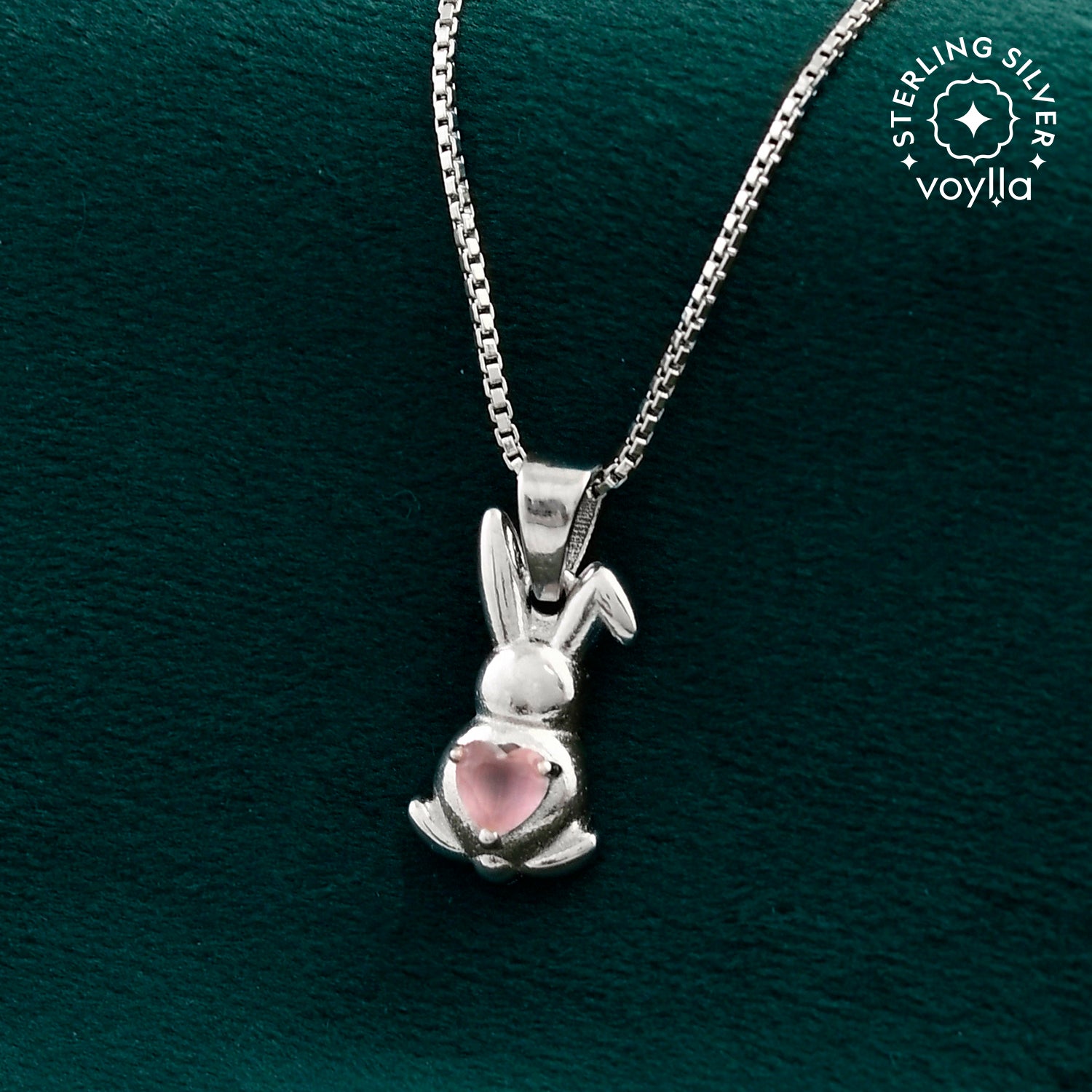 Embrace the playful elegance of the Tropical Wildlife Bunny Hug Pendant, a delightful piece crafted from premium 925 sterling silver and plated with white rhodium for a stunning finish. Featuring an adorable bunny holding a heart-shaped pink gemstone, this pendant beautifully symbolizes love, affection, and connection. A centerpiece from the Tropical Wildlife Collection, inspired by nature's beauty and spiritual energy, the pendant is designed to bring a whimsical yet sophisticated charm to your style. Whether paired with sterling silver earrings for a polished look or styled with office jewelry for chic everyday wear, this pendant complements any outfit effortlessly. The vibrant pink gemstone adds a pop of color, perfect for vacation wear, festive occasions like Holi, Diwali, and Rakshabandhan, or heartfelt gifting to sisters, mothers, friends, lovers, or wives. Its meaningful design makes it a thoughtful and cherished gift, embodying love and nature's energy in one radiant creation.