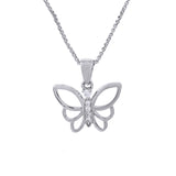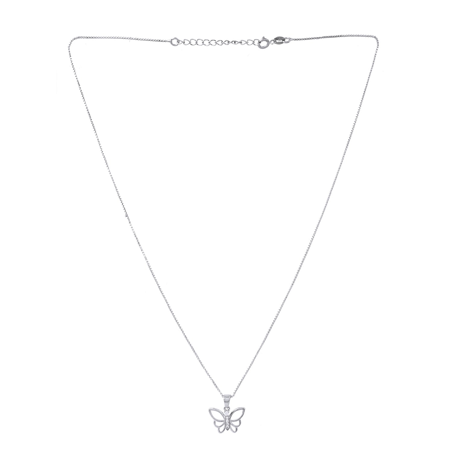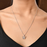 The Tropical Wildlife Butterfly Pendant is a mesmerizing piece of artistry that beautifully captures the elegance of nature. Crafted from 925 sterling silver and plated with a radiant white rhodium finish, this pendant exudes a premium charm. The intricate butterfly design, adorned with shimmering cubic zirconia, symbolizes transformation and grace, making it a timeless accessory. Part of the Tropical Wildlife Collection, inspired by tropical wildlife, this piece blends nature’s beauty with chic sophistication. Its versatile silver hue complements a variety of styles, whether you're dressing for an elegant office look, a dreamy vacation outfit, or a festive celebration like Diwali or Holi. Perfect for everyday wear or as a thoughtful gift, this pendant embodies love, spiritual meaning, and unmatched elegance. Ideal for gifting on special occasions like Rakshabandhan or as a heartfelt present for your sister, lover, wife, mother, or best friend, it’s a piece that celebrates relationships and memories.