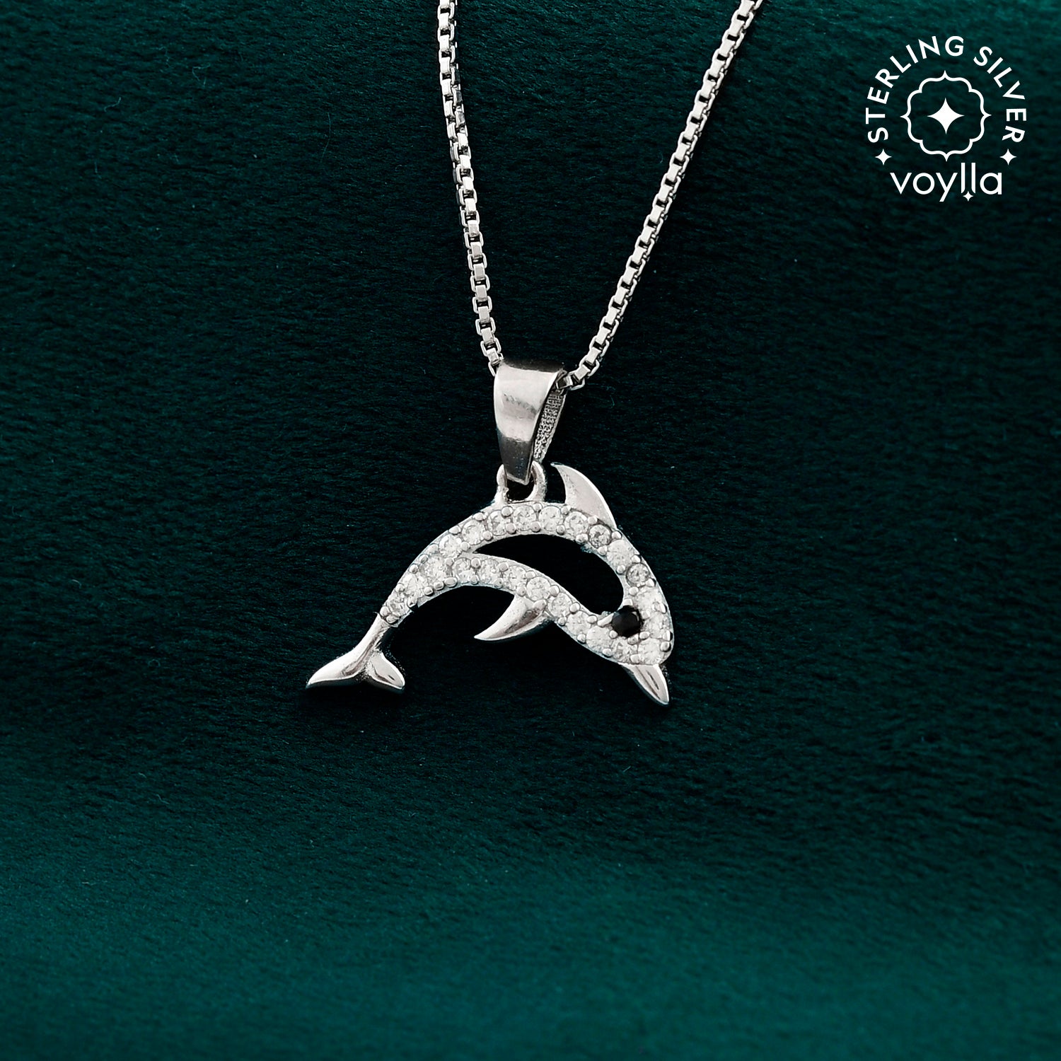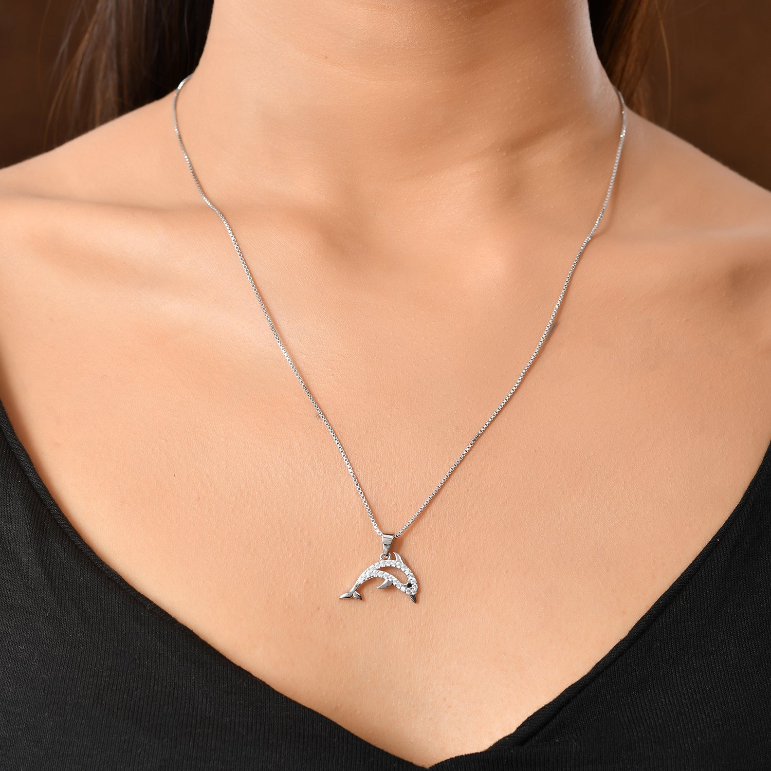 The Tropical Wildlife Shimmer Dolphin Pendant is an exquisite piece from the Tropical Wildlife Discover Silver Animals Jewelry Collection, designed to reflect nature's beauty and spiritual symbolism. Crafted from high-quality 925 sterling silver with a luxurious white rhodium plating, this pendant showcases a detailed dolphin gracefully adorned with dazzling cubic zirconia (CZ) stones. Perfect for women who love premium jewelry, the pendant combines elegance and versatility, making it ideal for everyday wear, vacation outfits, office ensembles, or chic travel looks. With its radiant shimmer and intricate design, this pendant becomes a meaningful gift for occasions like Diwali, Rakshabandhan, Holi, or as a heartfelt present for loved ones such as a sister, wife, mother, or friend. Pair it with sterling silver earrings to elevate its charm and complete the look effortlessly.