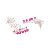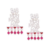 Enameled and mirror work embellished 'Sab Moh Maya Hai' lettering earrings, deigned as a tribute to Indian truck drivers and their artistic vehicles. Fashioned out of brass and silver plated. Good for ethnic looks.