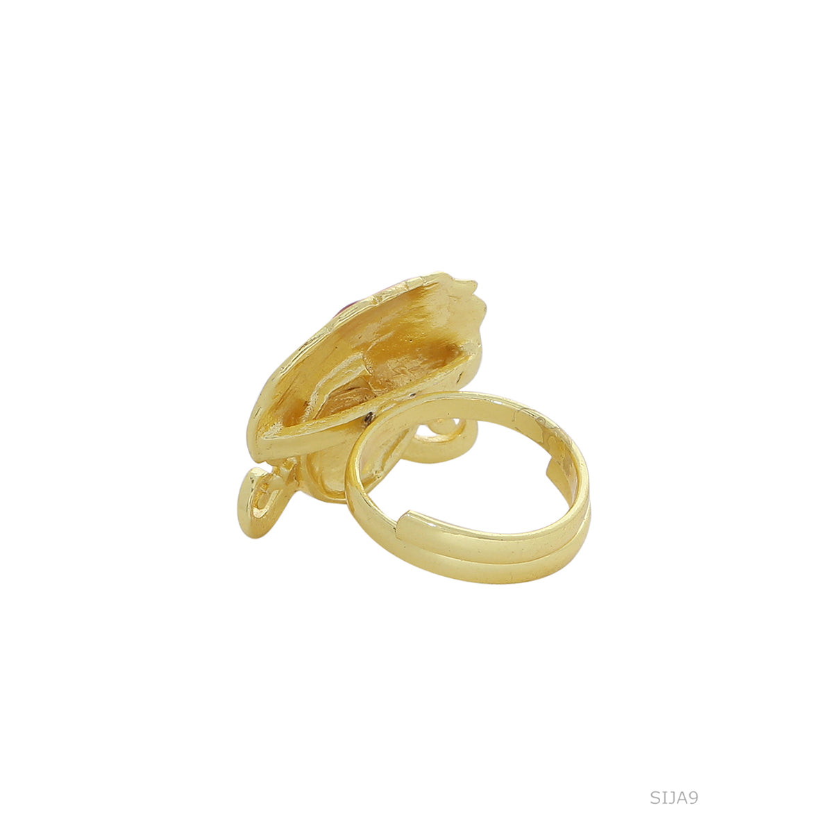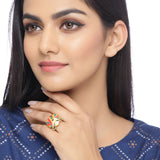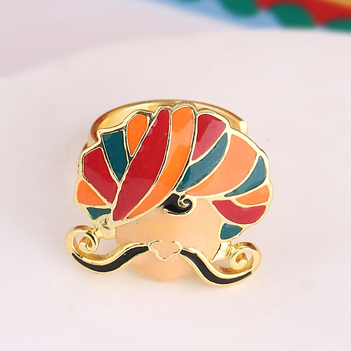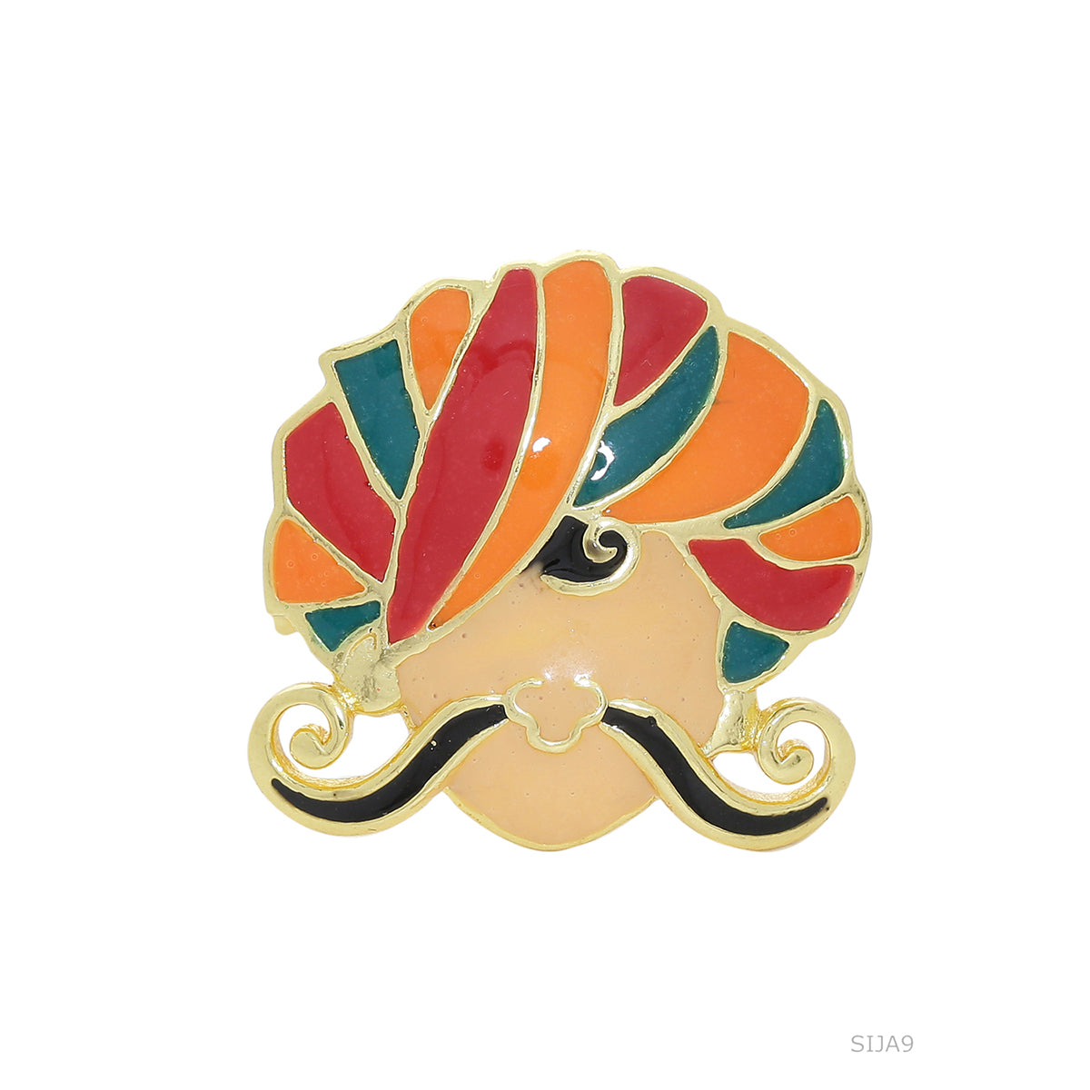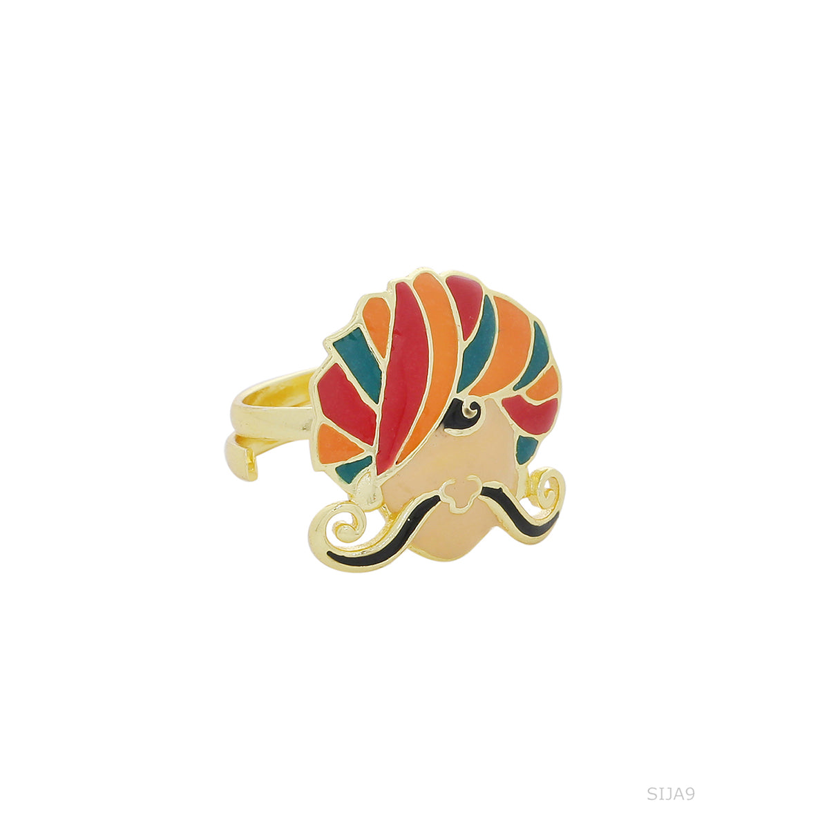 Motifs and designs found on surface of Indian trucks has inspired this turbaned man enameled statement ring, which has been fashioned out of brass. Yellow gold plated and adjustable, the ring can be paired with ethnic and Indo-Western attire.