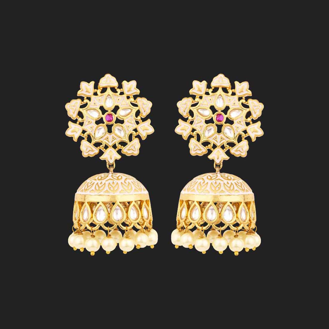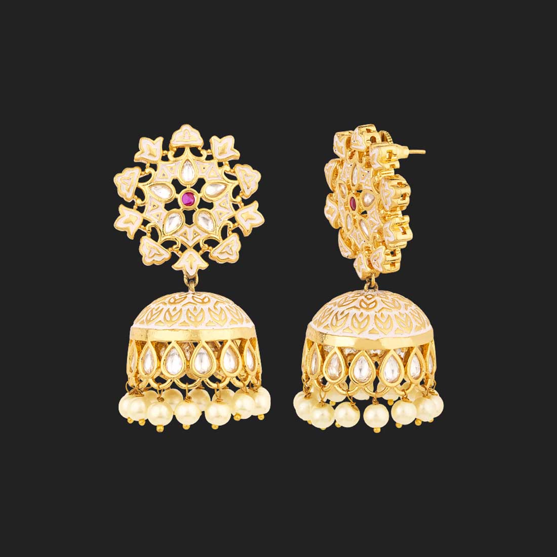 Udaipur Ethnic Kundan Gemstones Jhumka Earrings